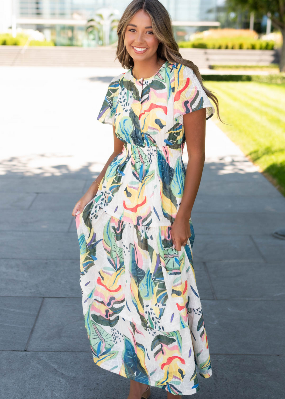Alana Green Tropical Print Dress