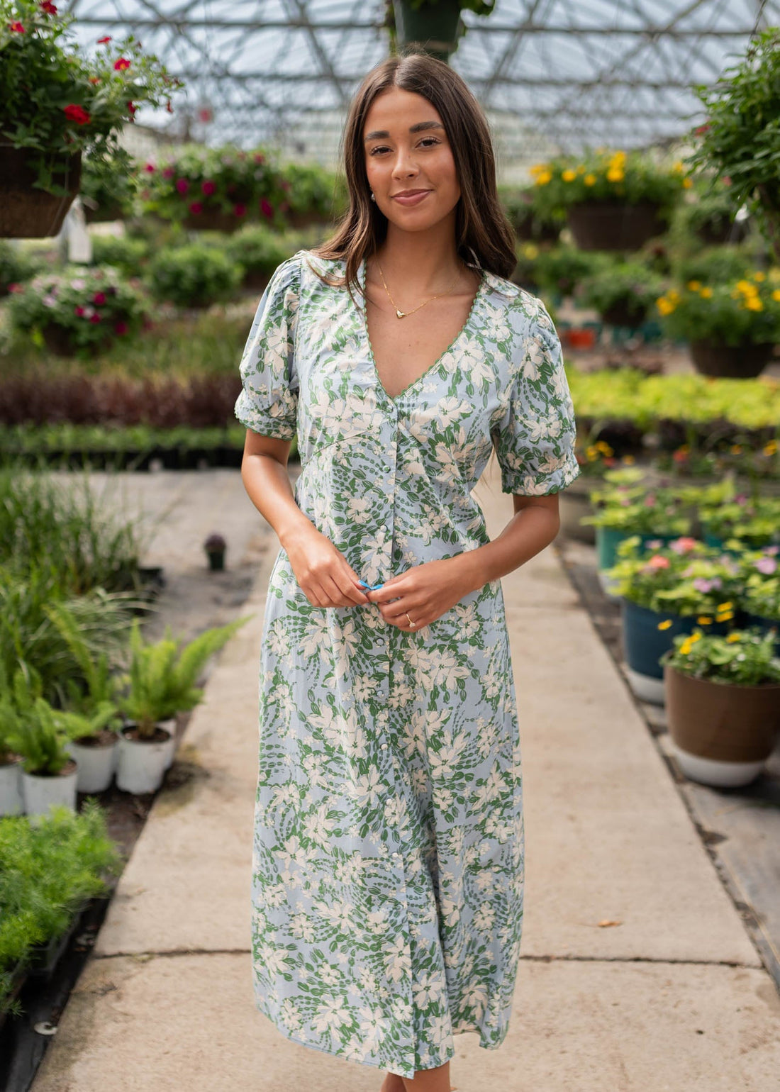 Alani Blue Floral Button Down Dress