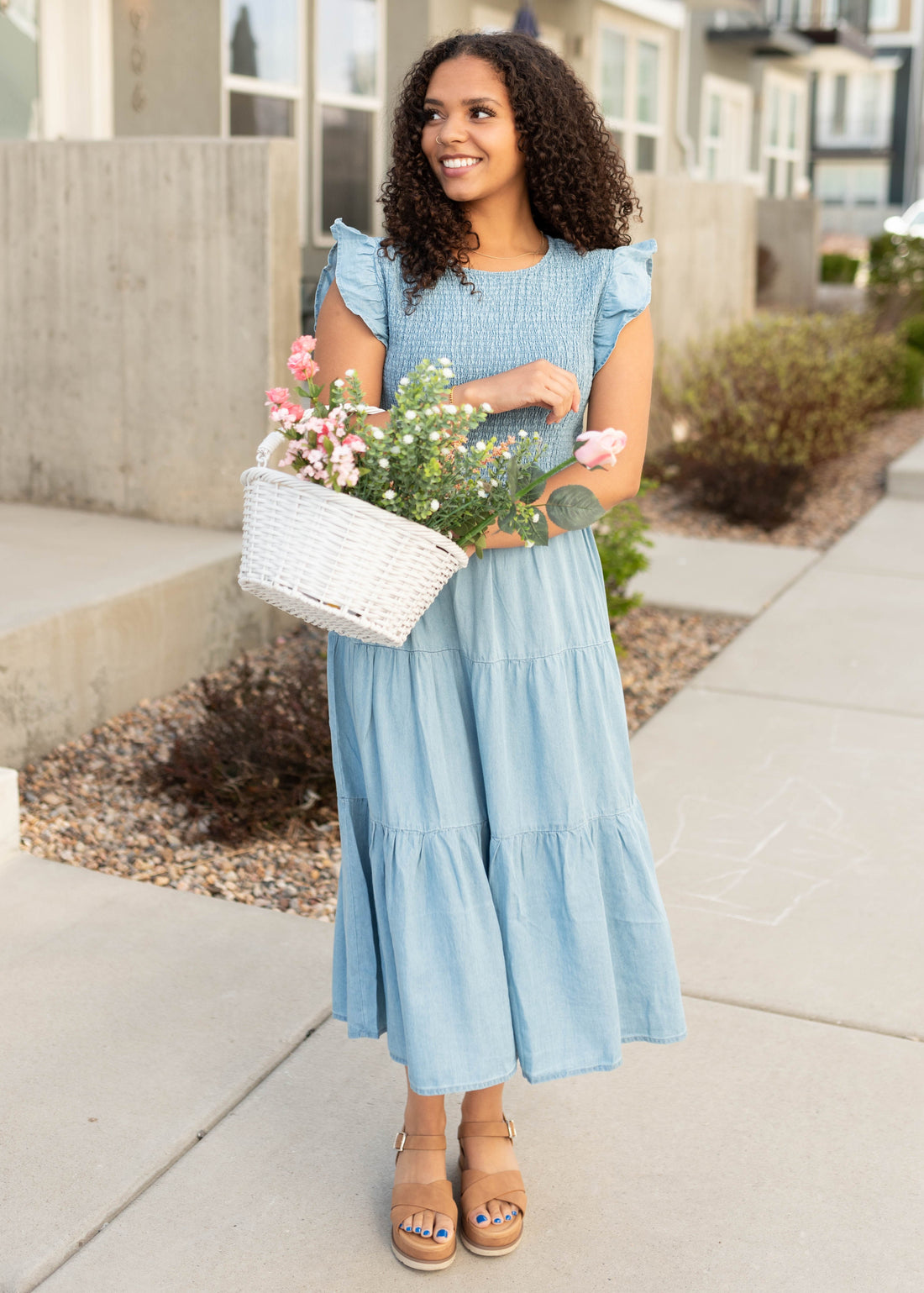 Alease Chambray Tiered Dress