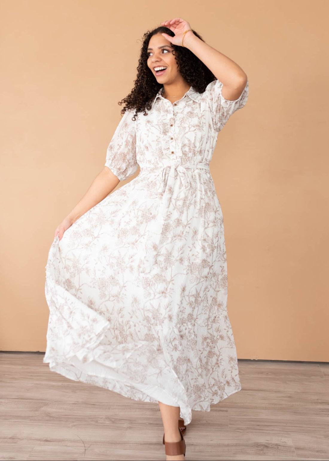Alissa Cream Floral Button Dress