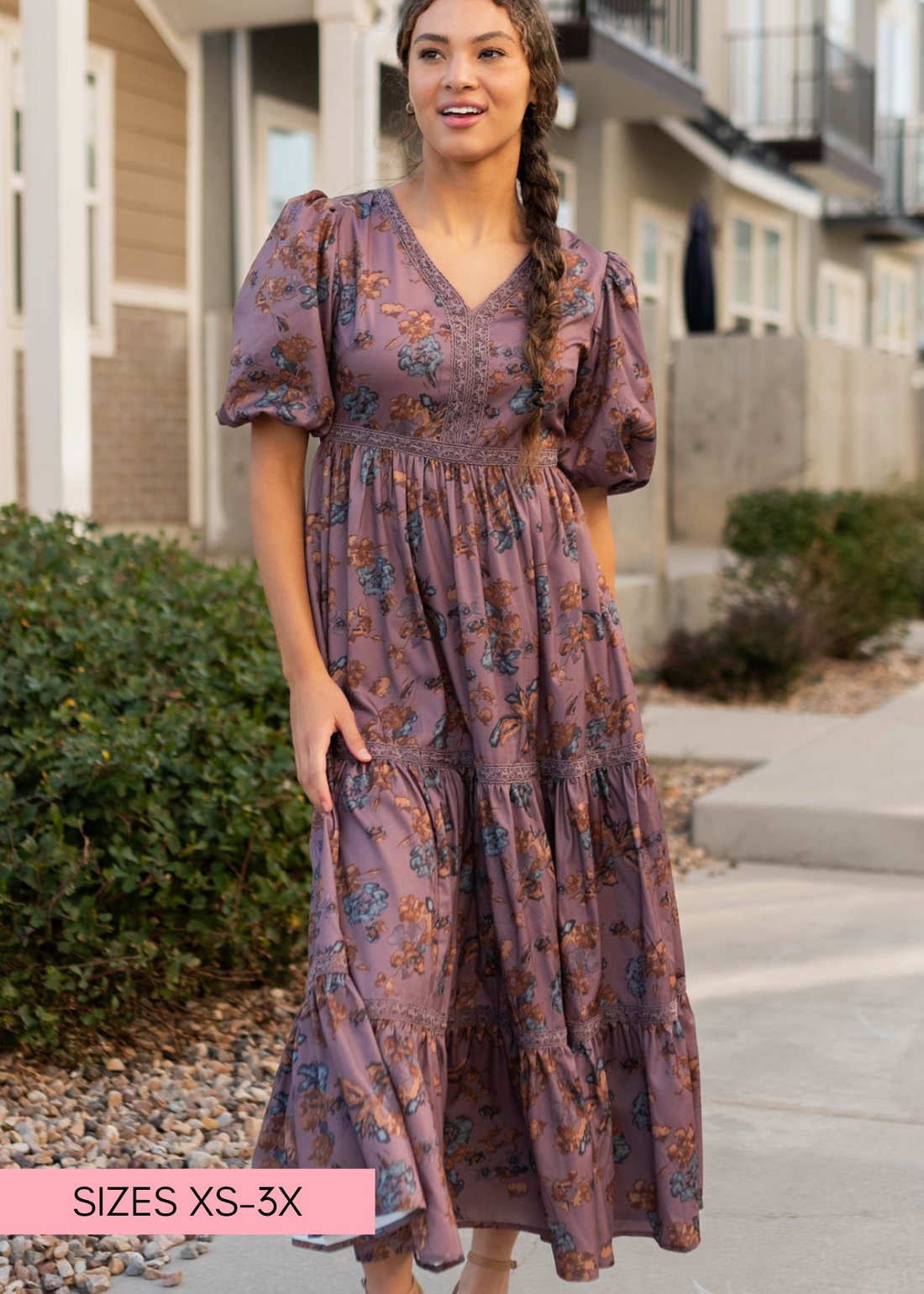 Avalon Plum Floral Tiered Dress