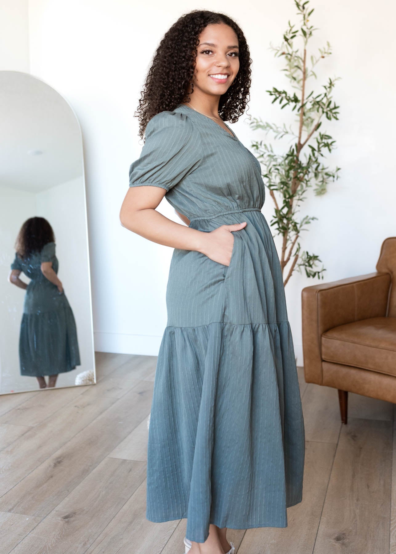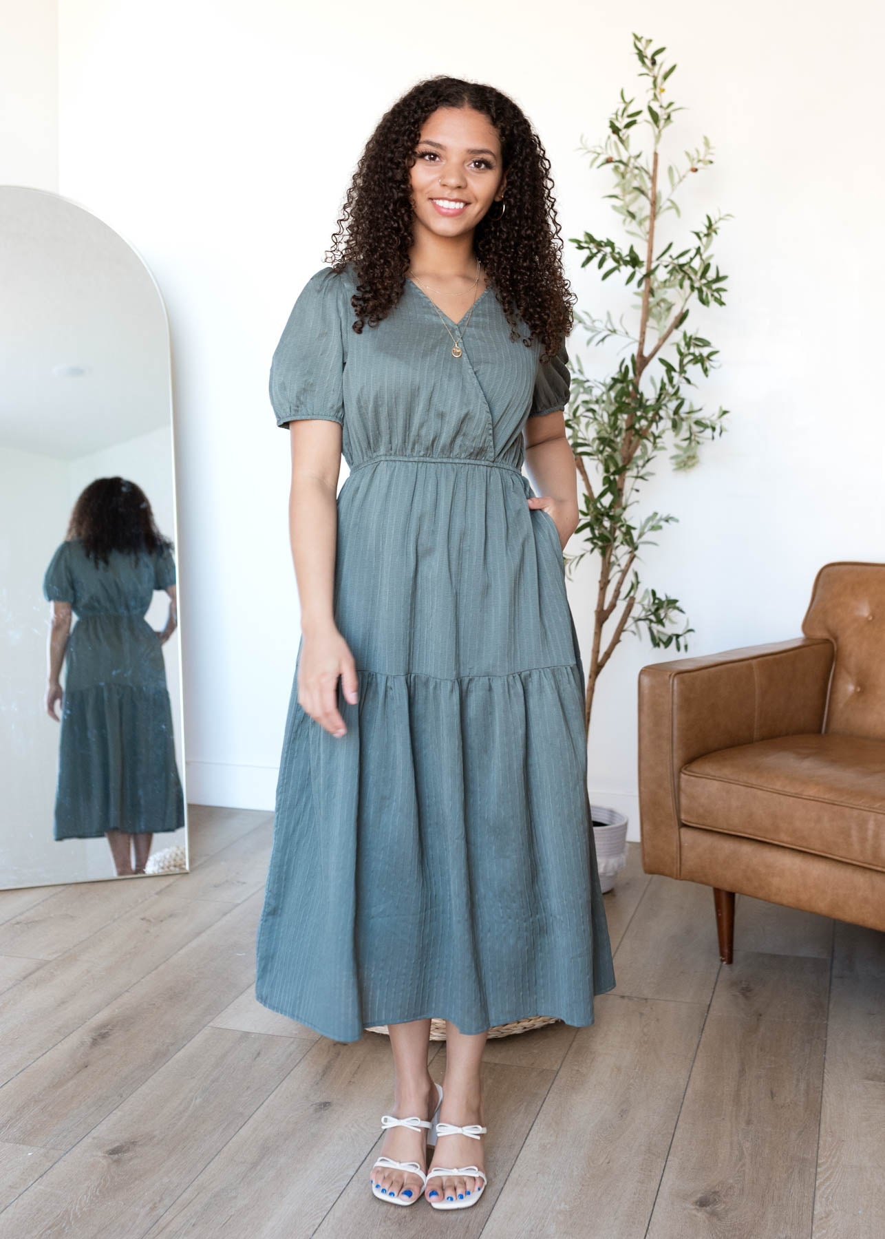Addee Olive Tiered Dress