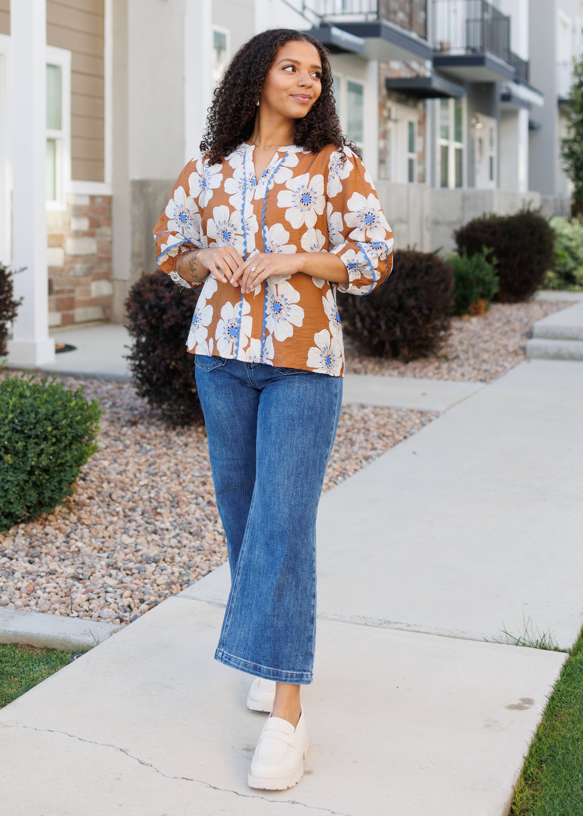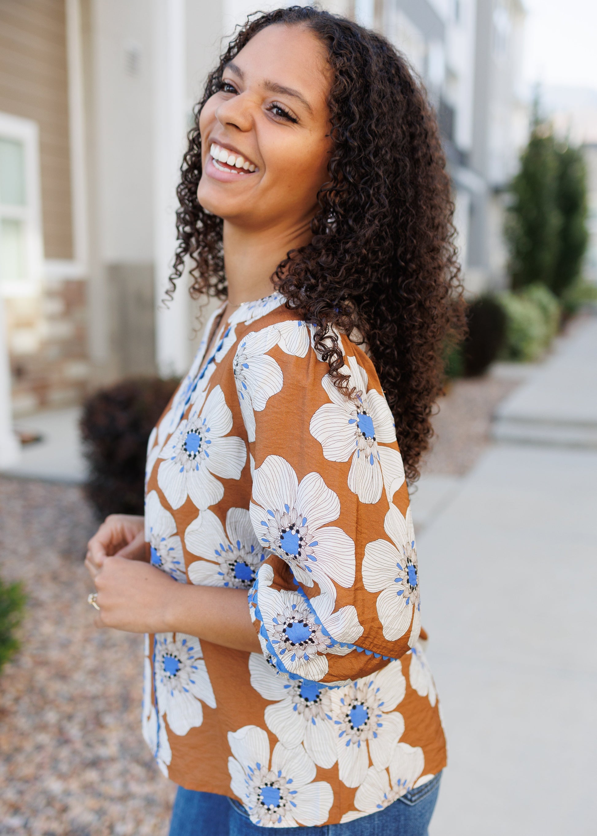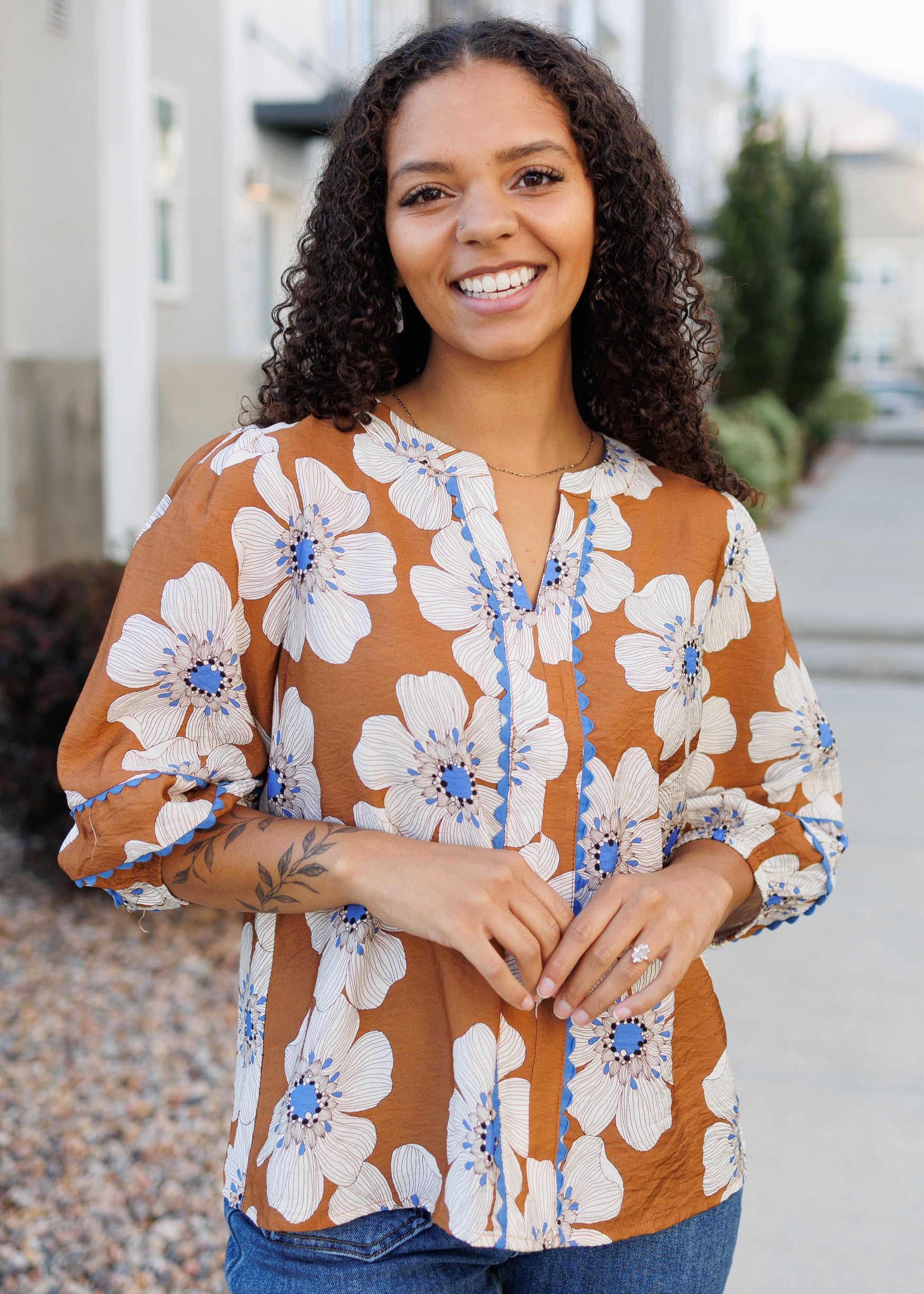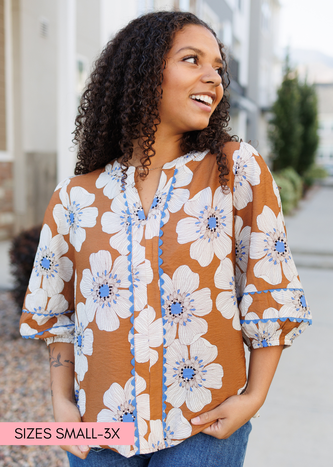 Say hello to effortless beauty¡ªthe Agnes Top is flowy, flattering, and oh-so-pretty. With its dreamy mix of brown, white, and blue florals, this blouse brings just the right amount of charm. The scalloped trim adds a sweet finishing touch, while the breezy fit keeps it comfortable all day long.