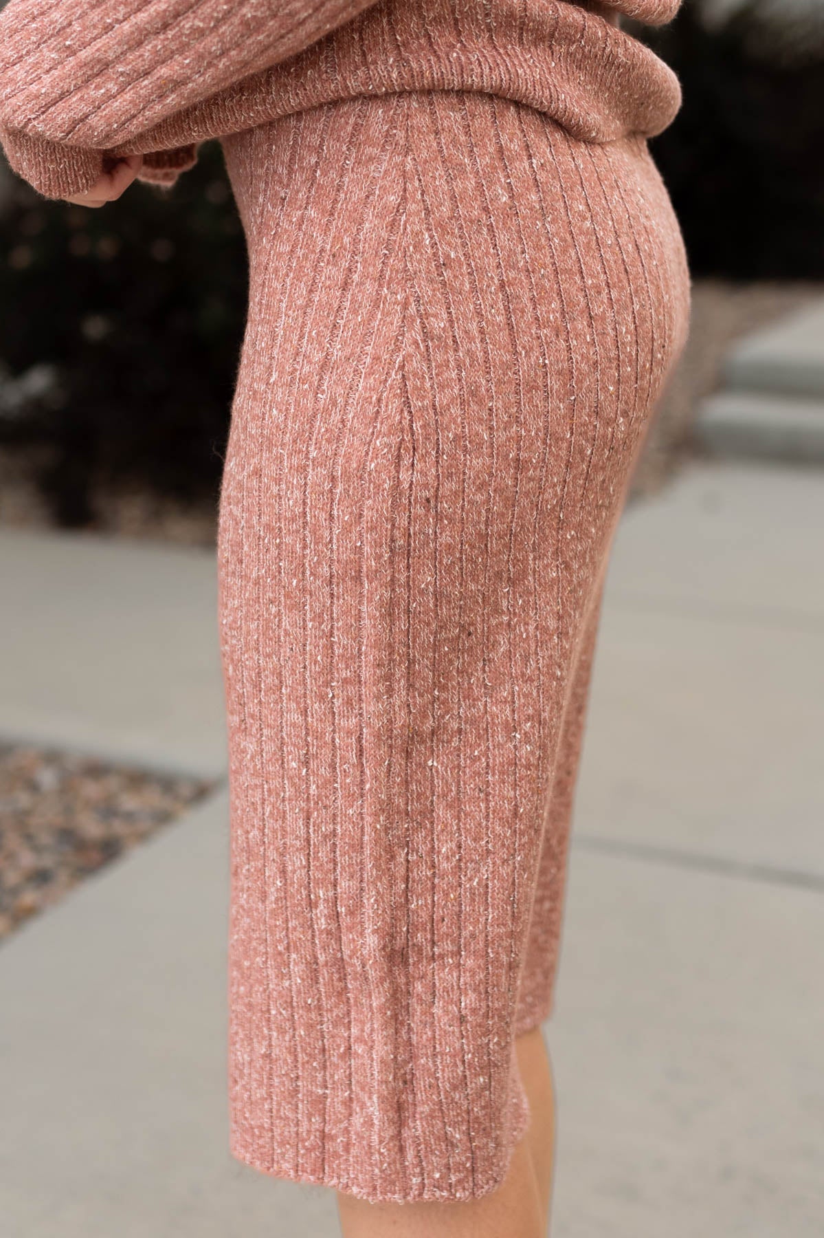 -?Pretty blush ribbed fabric + marled yarn knit texture