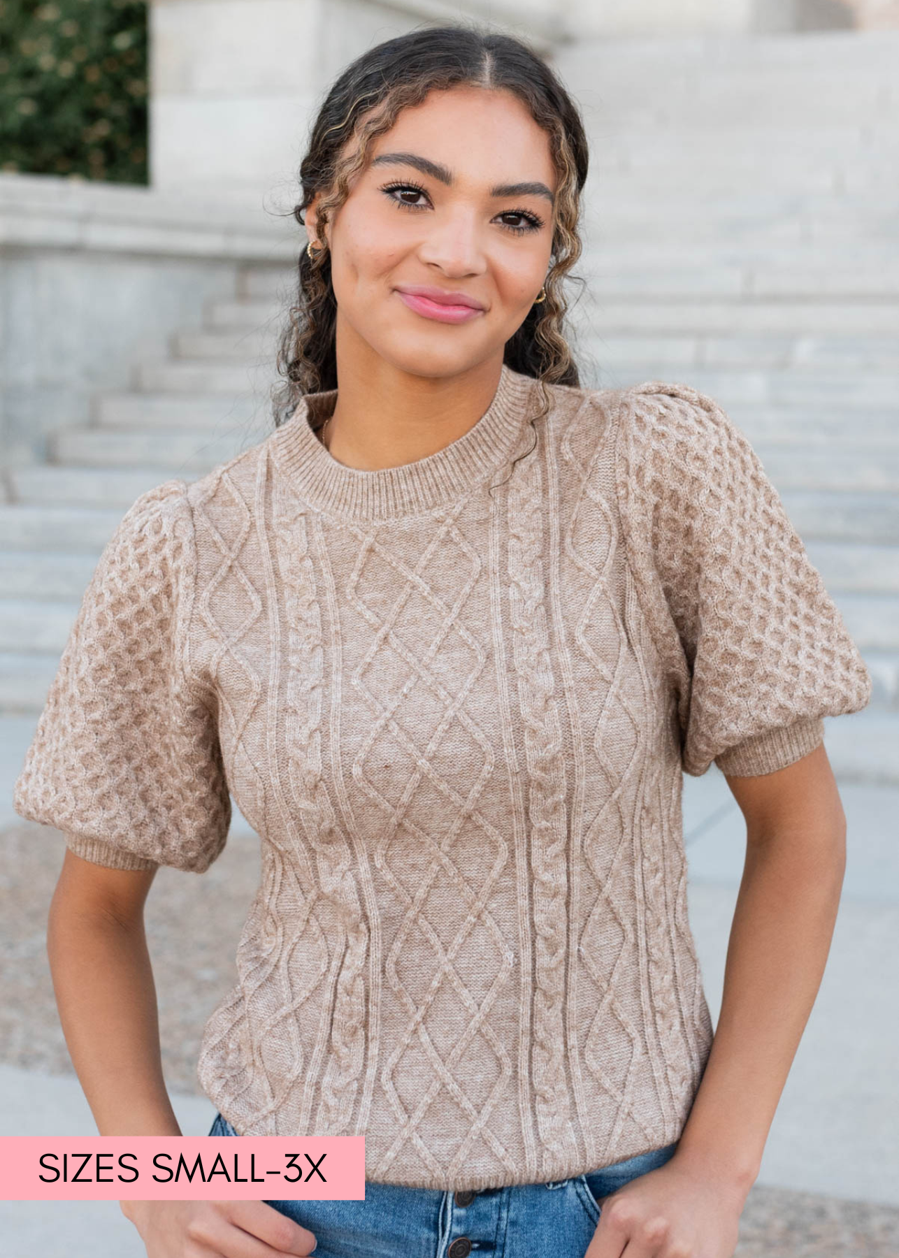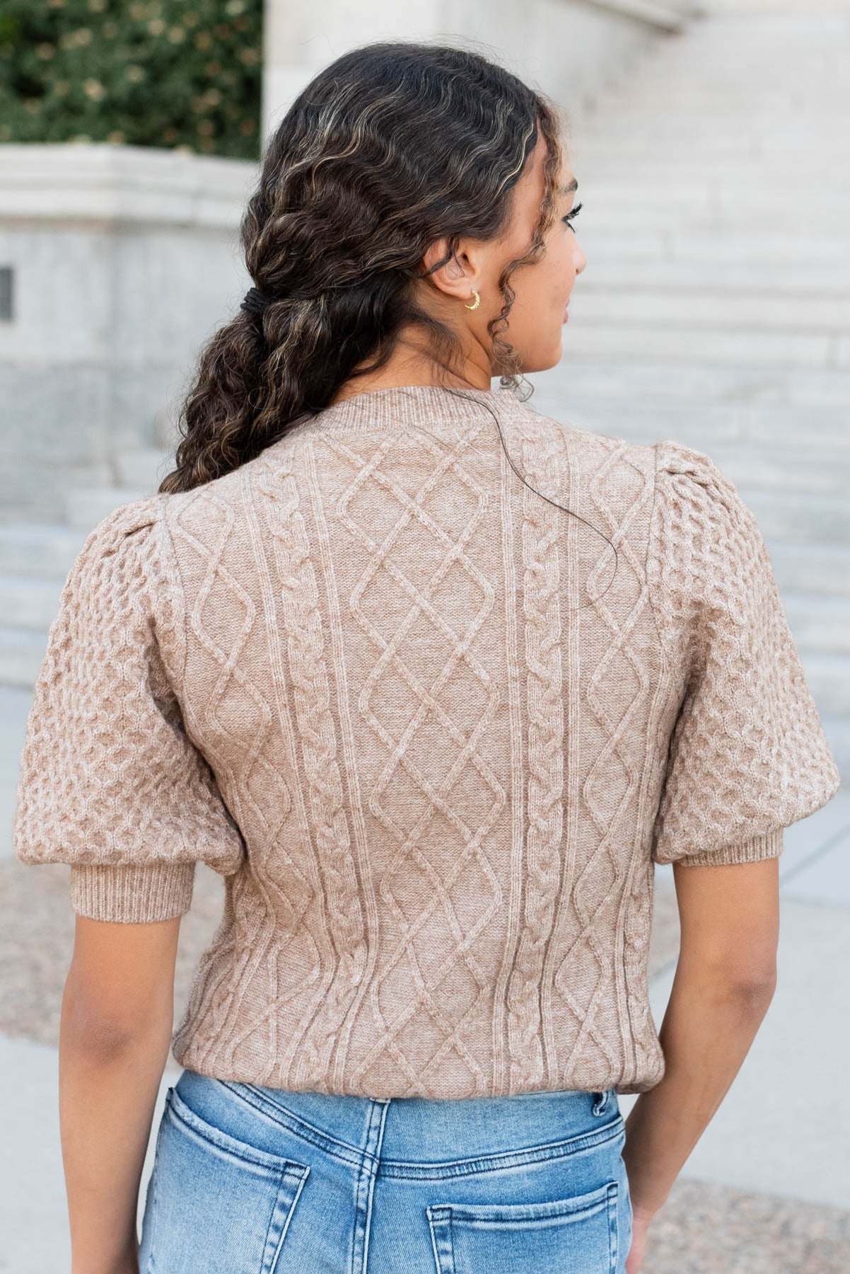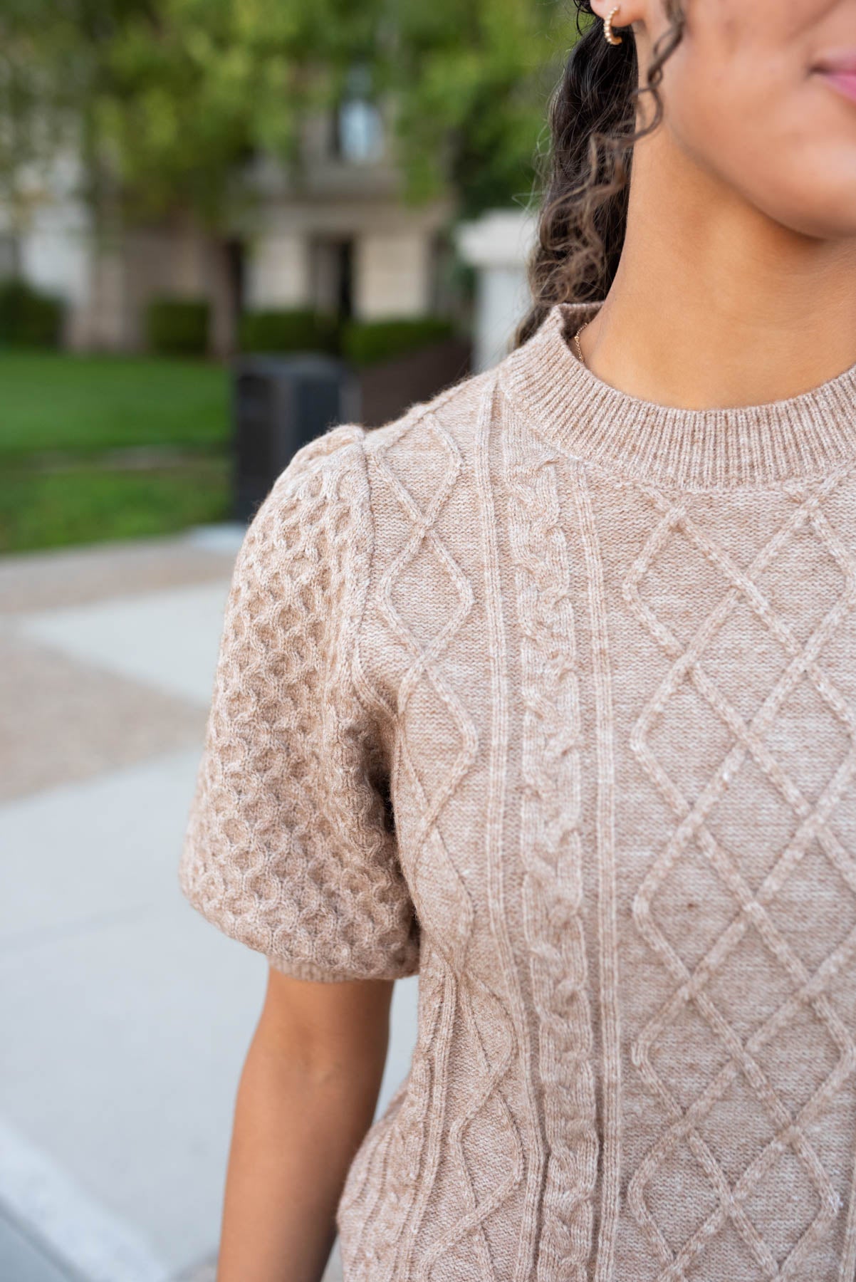 Alaina Taupe Short Sleeve Sweater