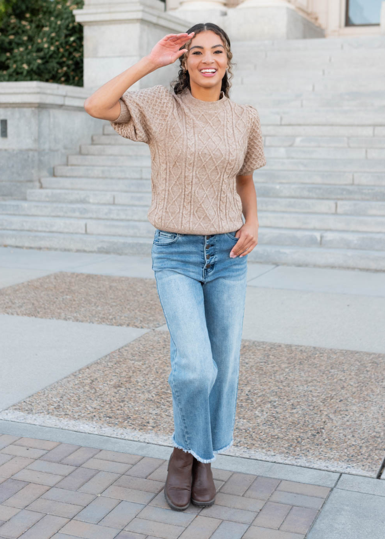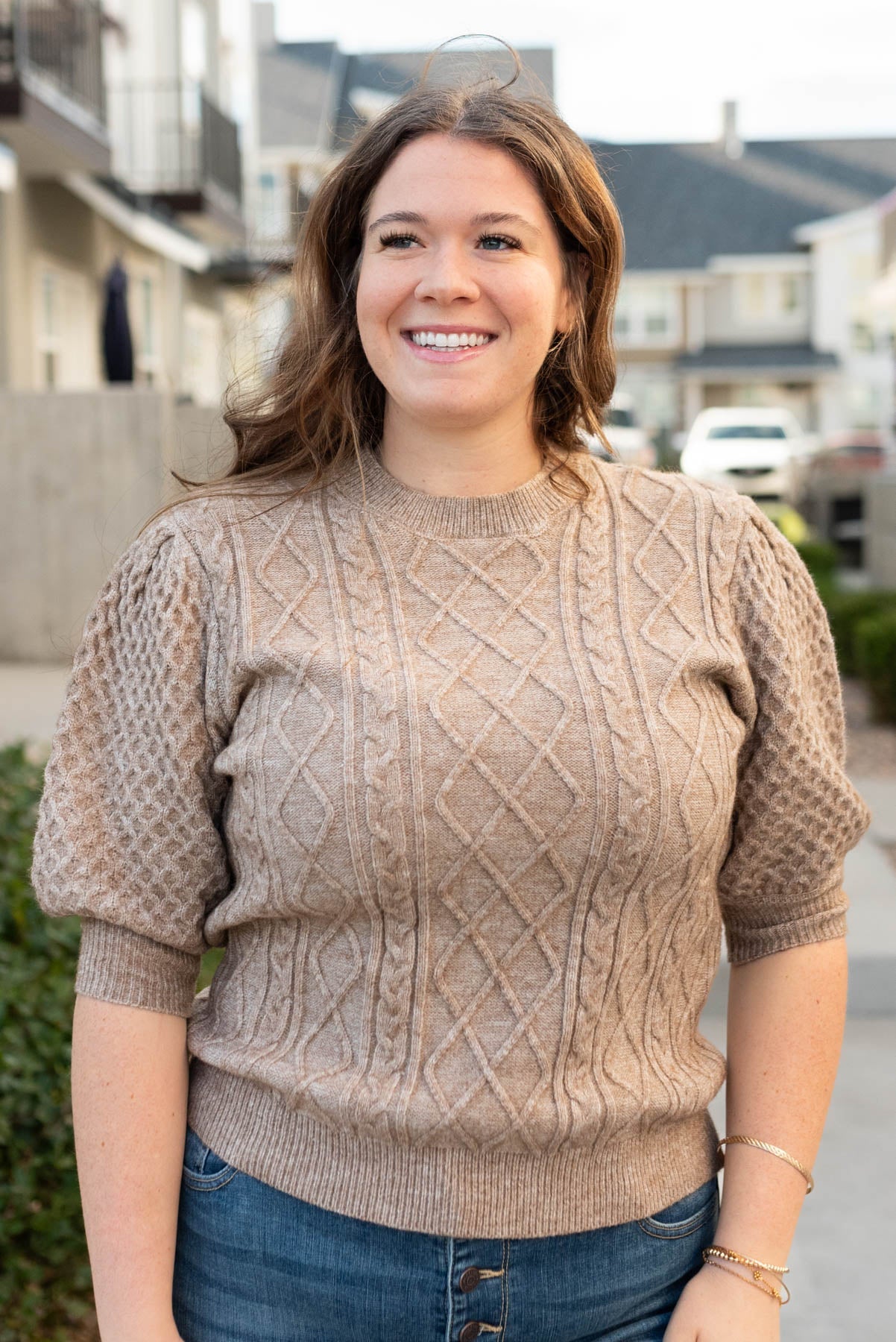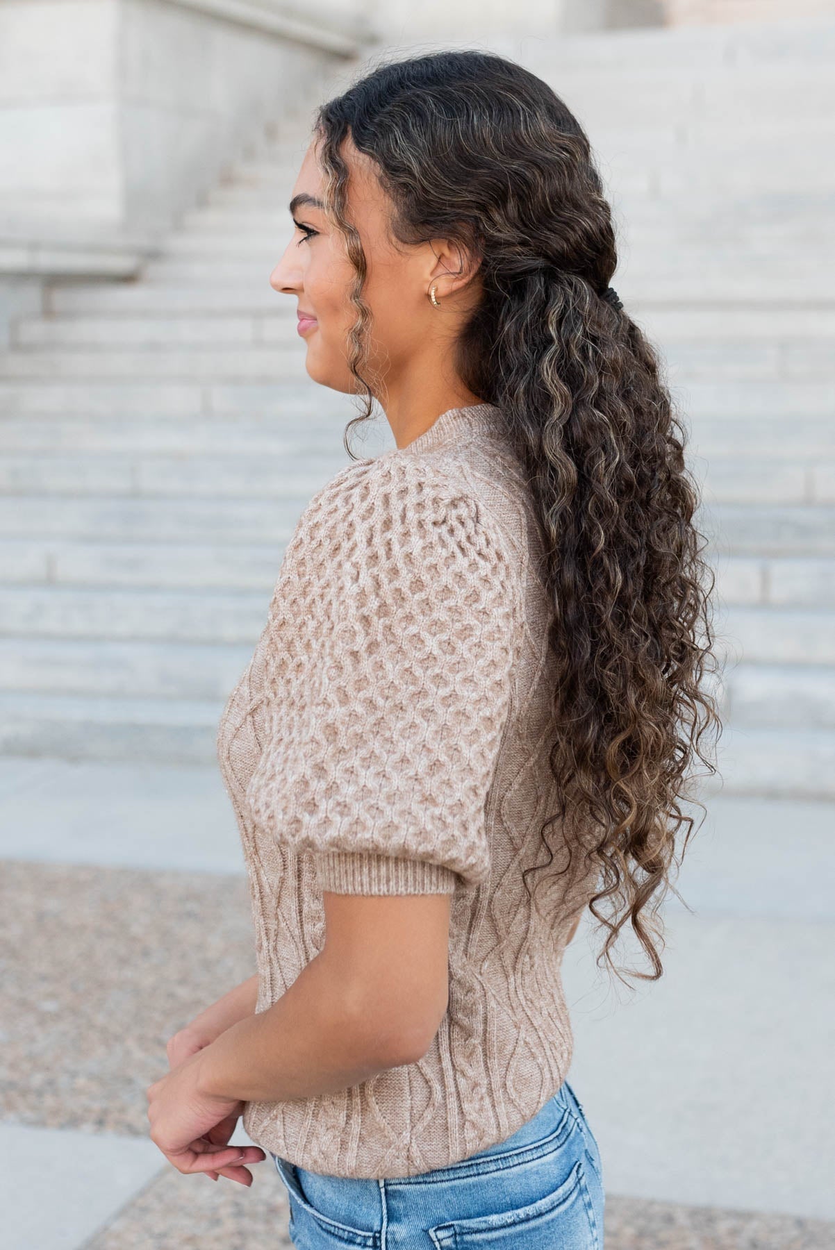 Alaina Taupe Short Sleeve Sweater
