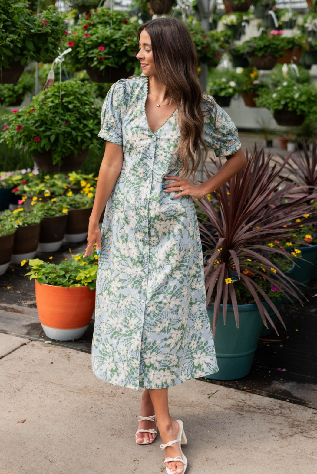 Alani Blue Floral Button Down Dress