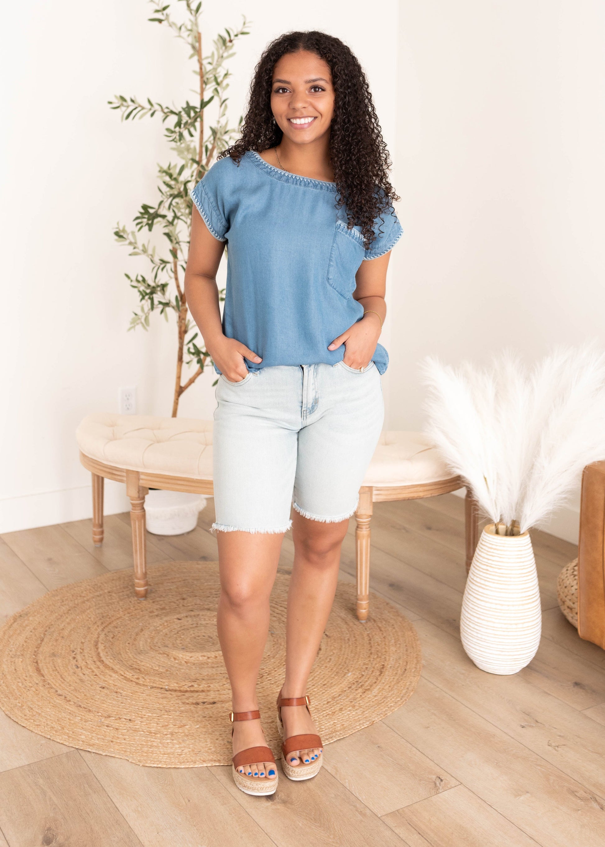 Aleah Embroidered Denim Top