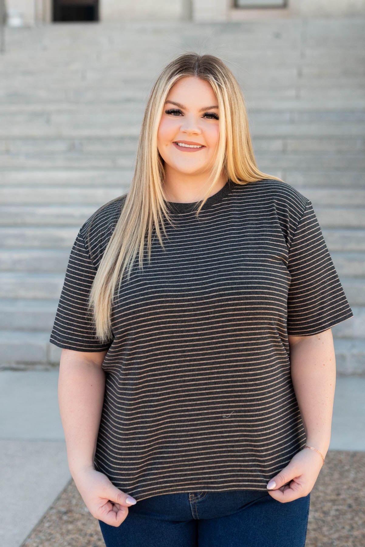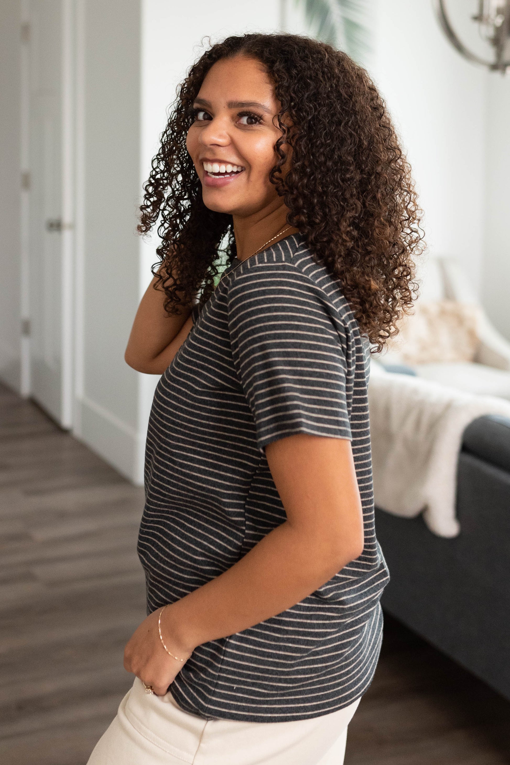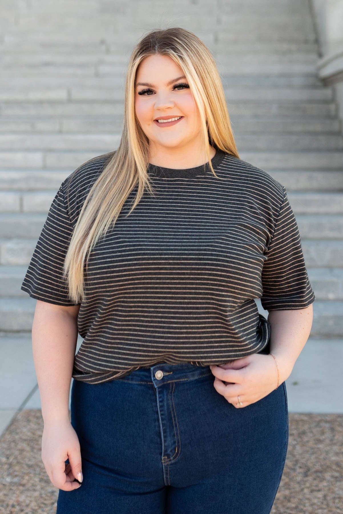 Alexis Charcoal Stripe Top
