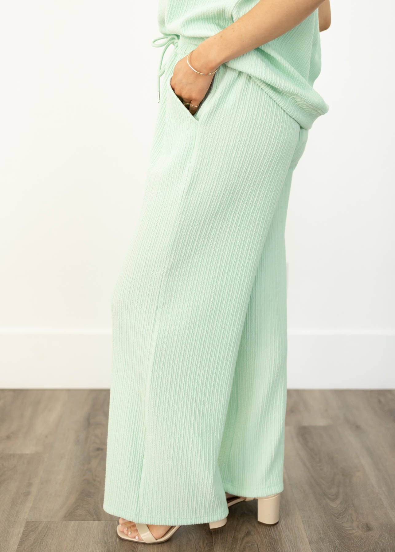 - Soft sage textured fabric
