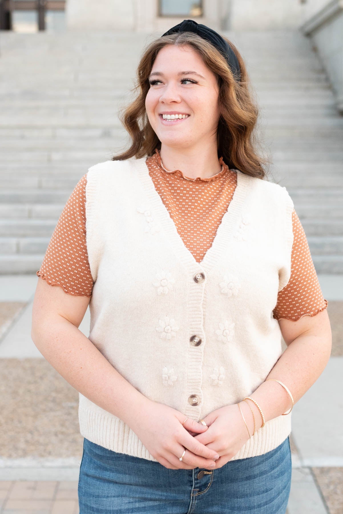 Alicia Cream Floral Knit Vest