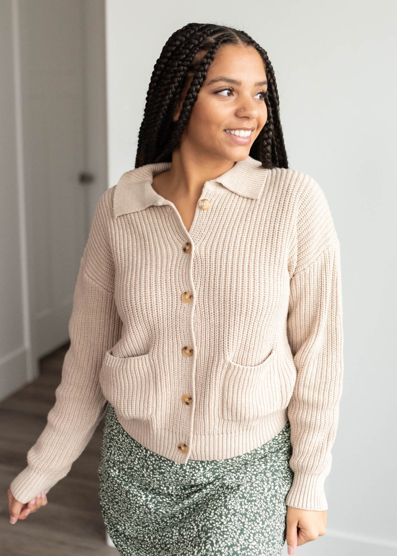 Amanda Taupe Collared Button Down Cardigan