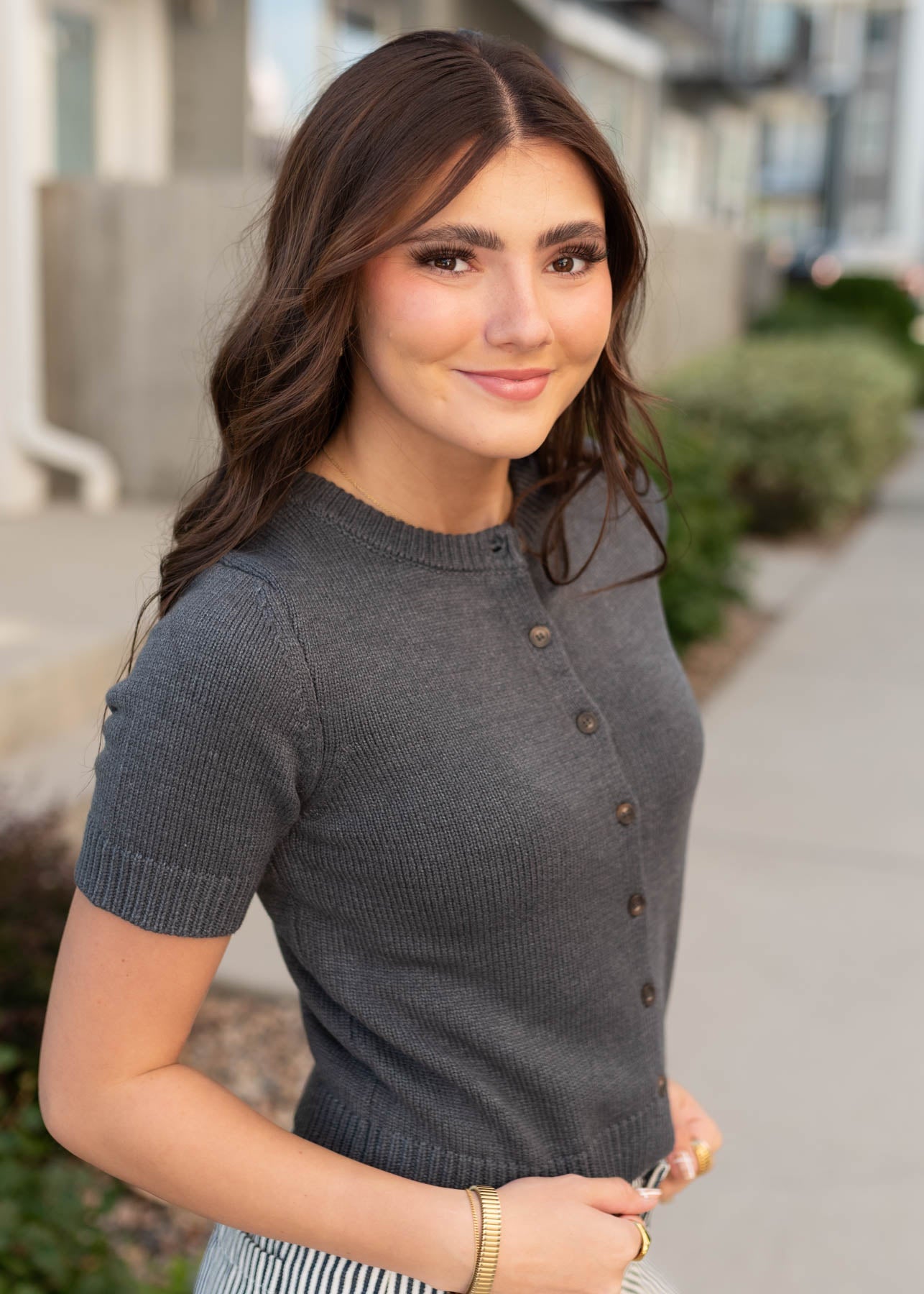 Short sleeve cardigan-style top