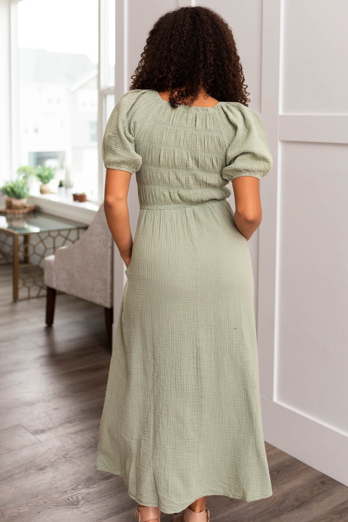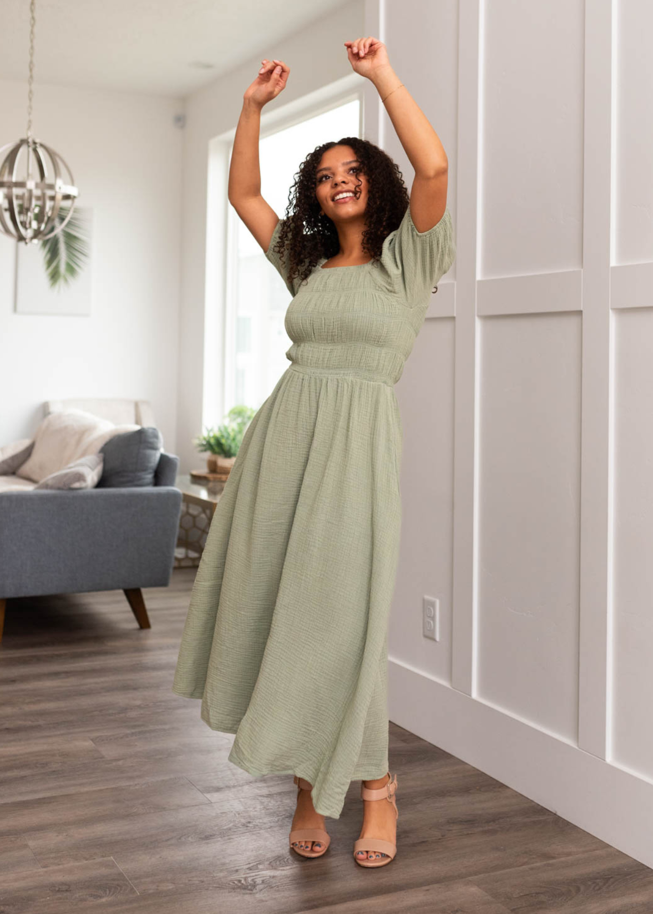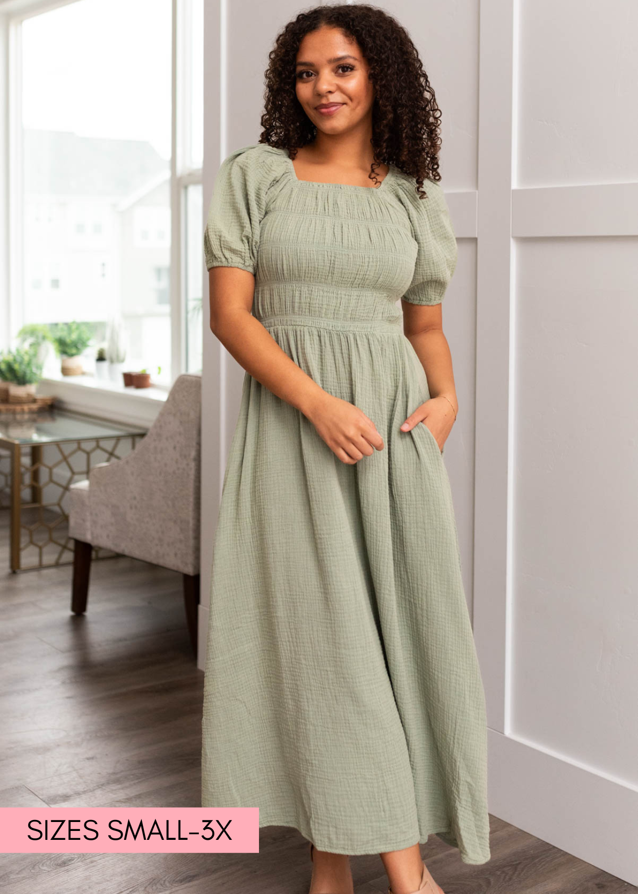 - Runs TTS with a smocked bodice and some stretch. Size down if in-between