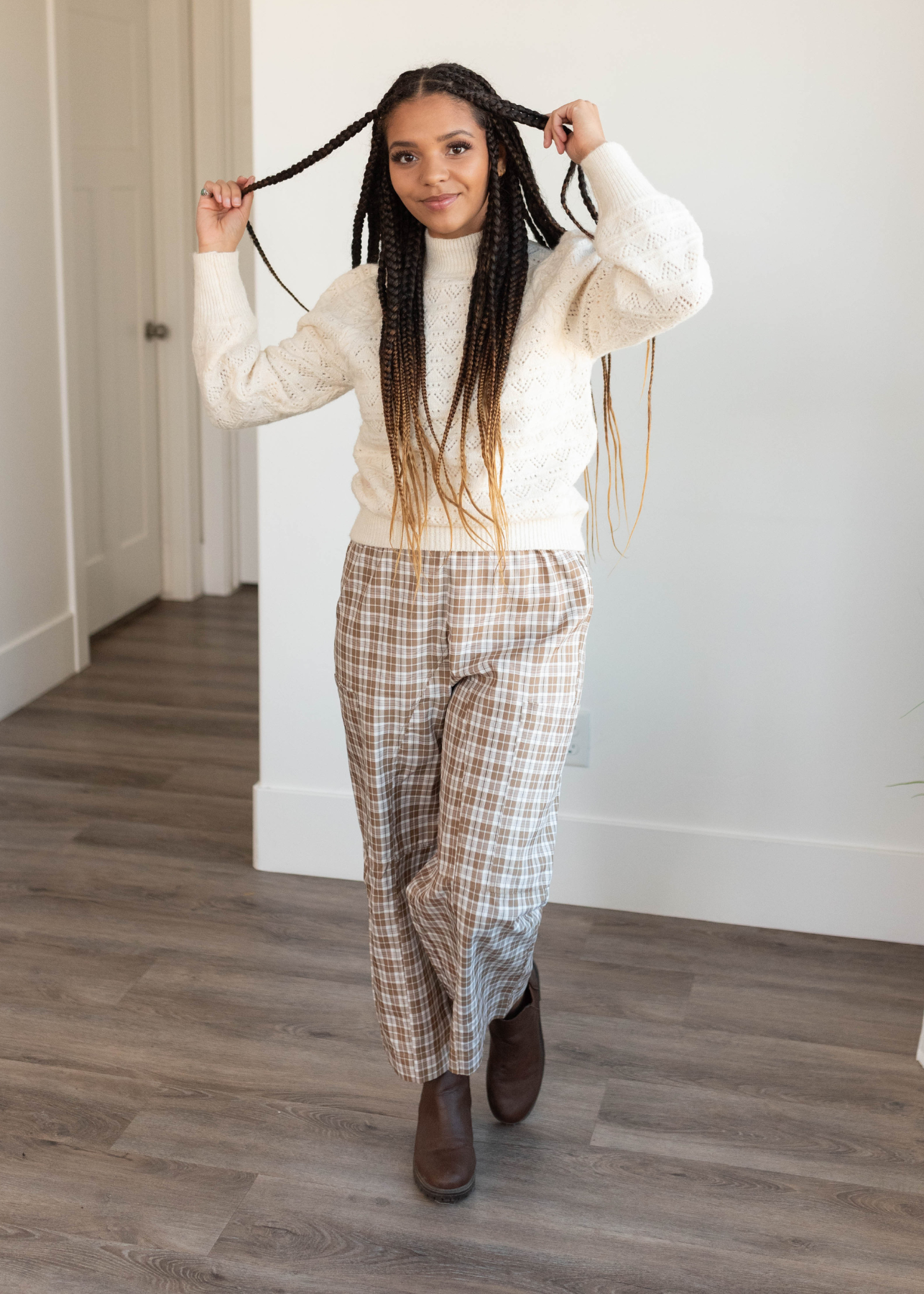 Ariana Coffee Plaid Pants