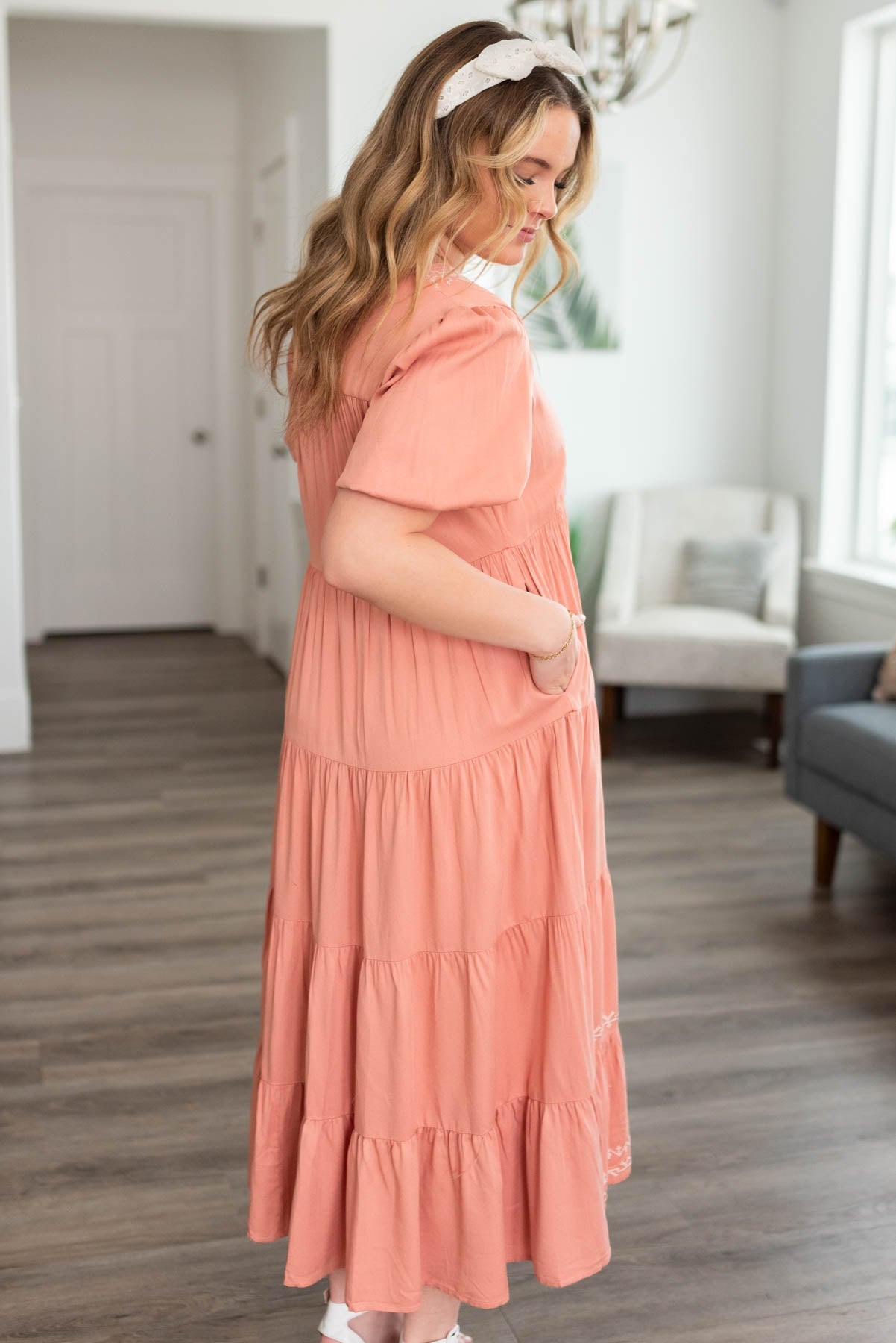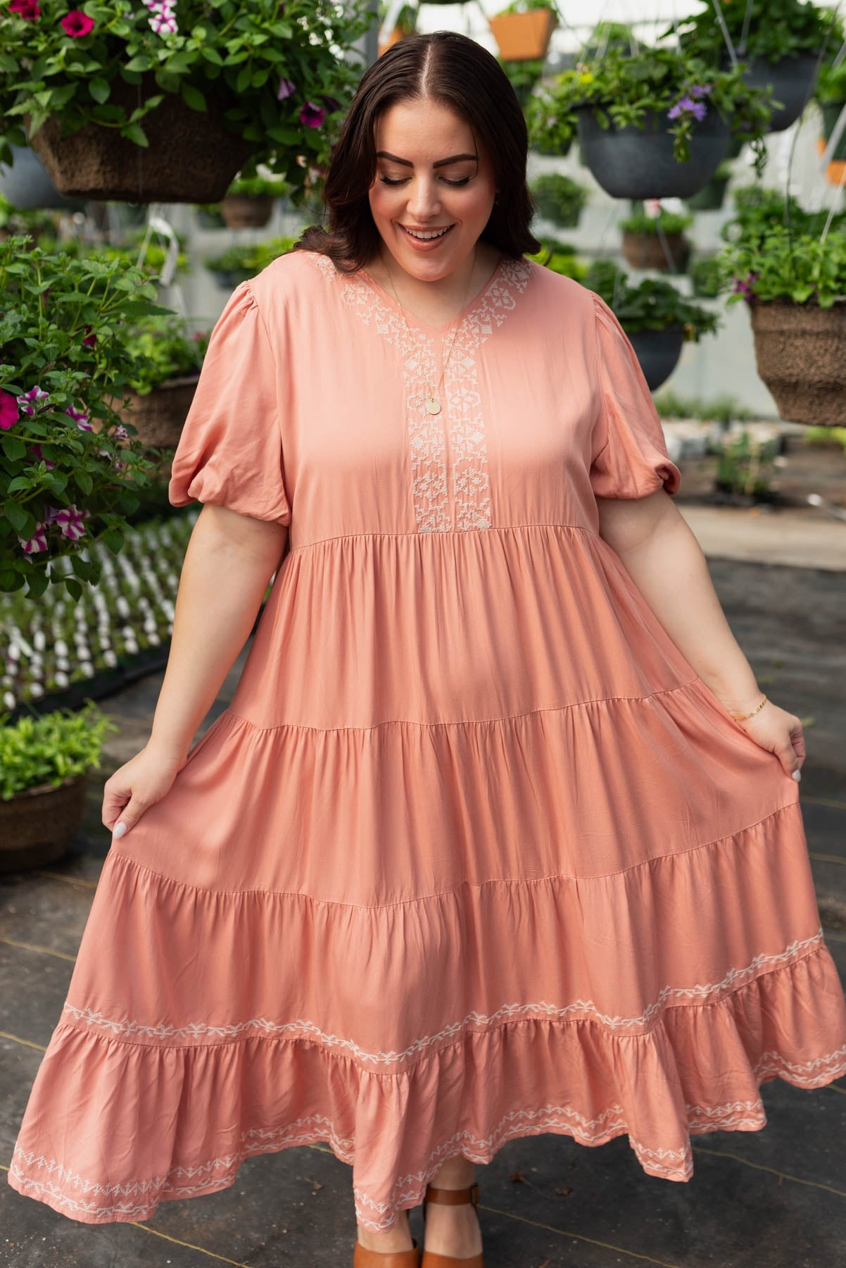 Ariana Dusty Pink Embroidered Tiered Dress