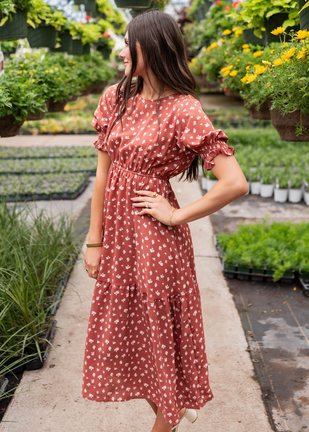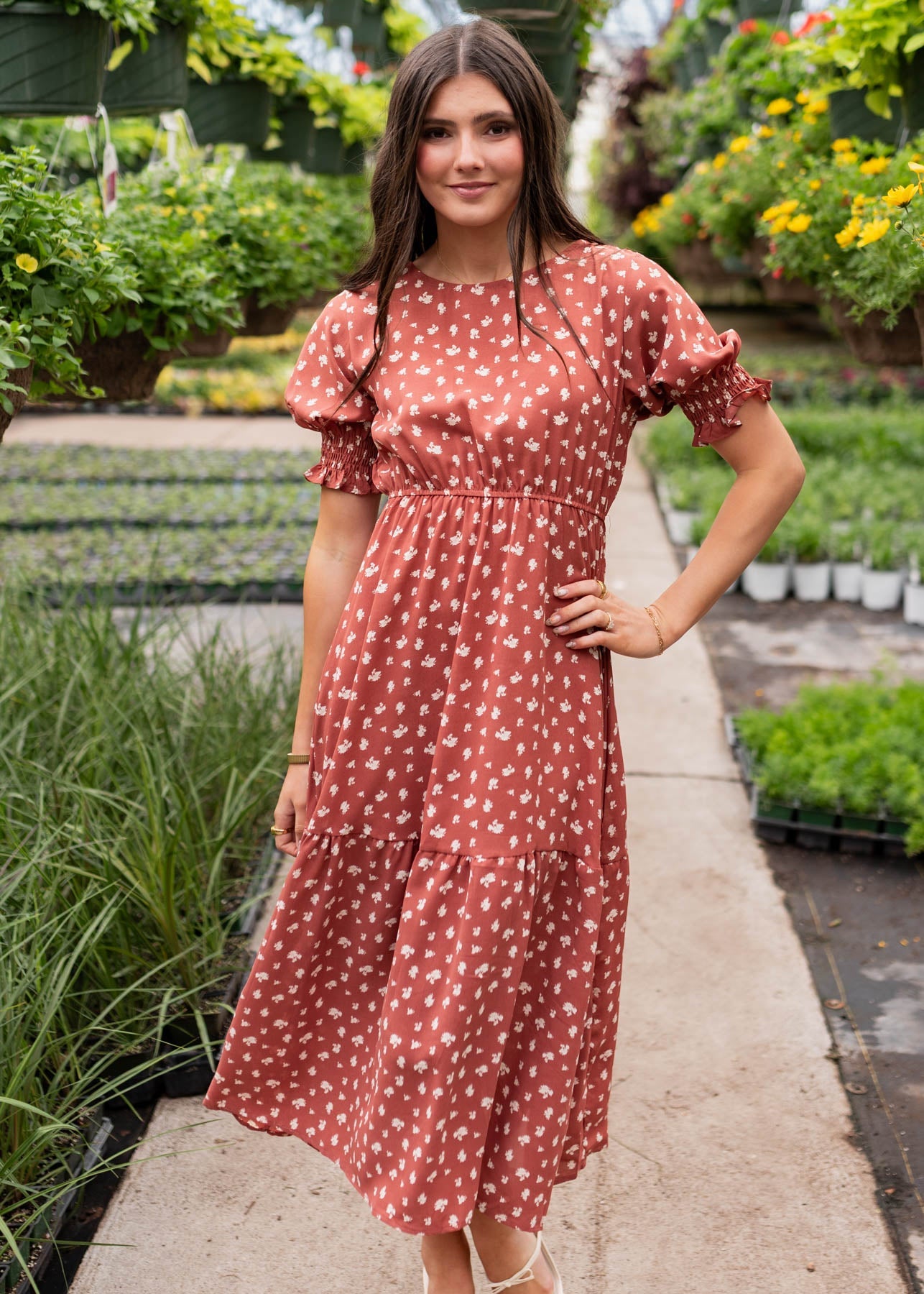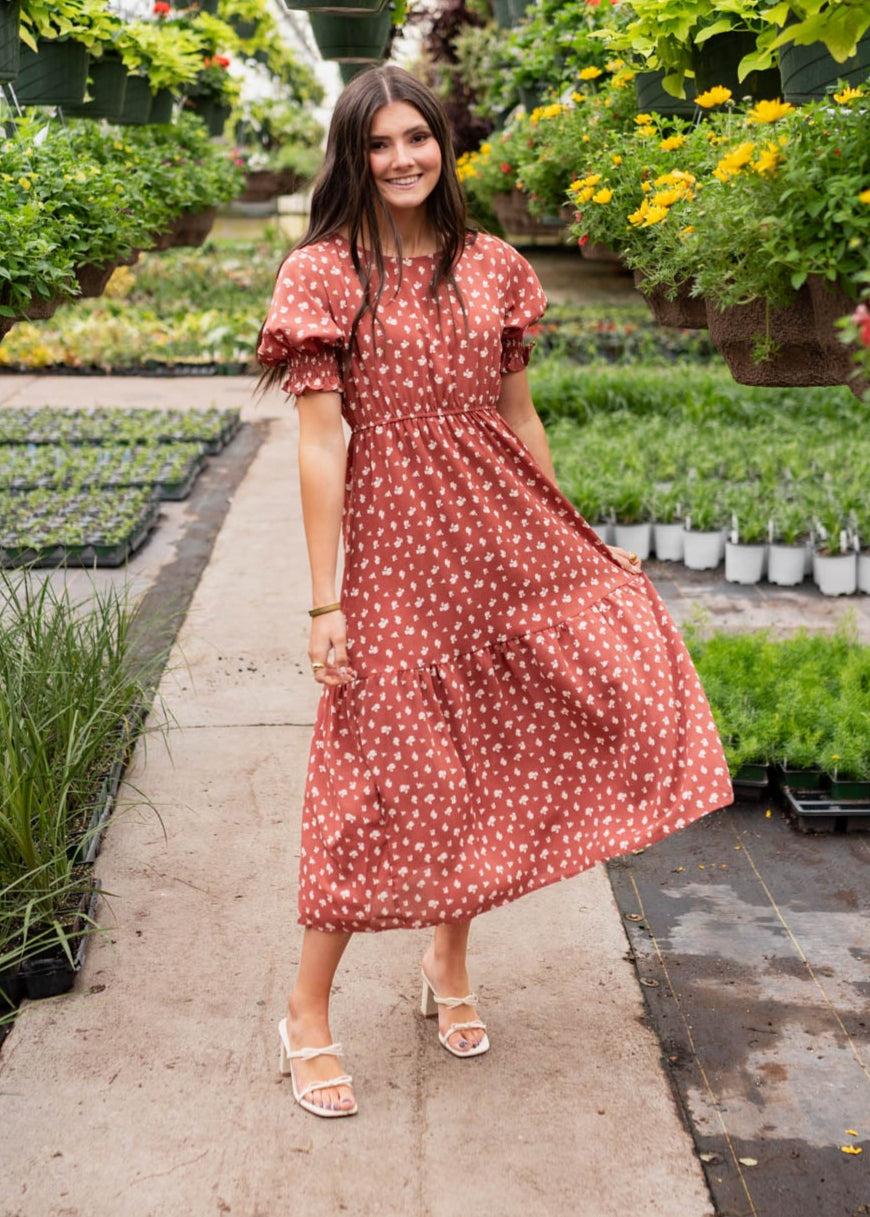 Ashlyn Brick Floral Dress