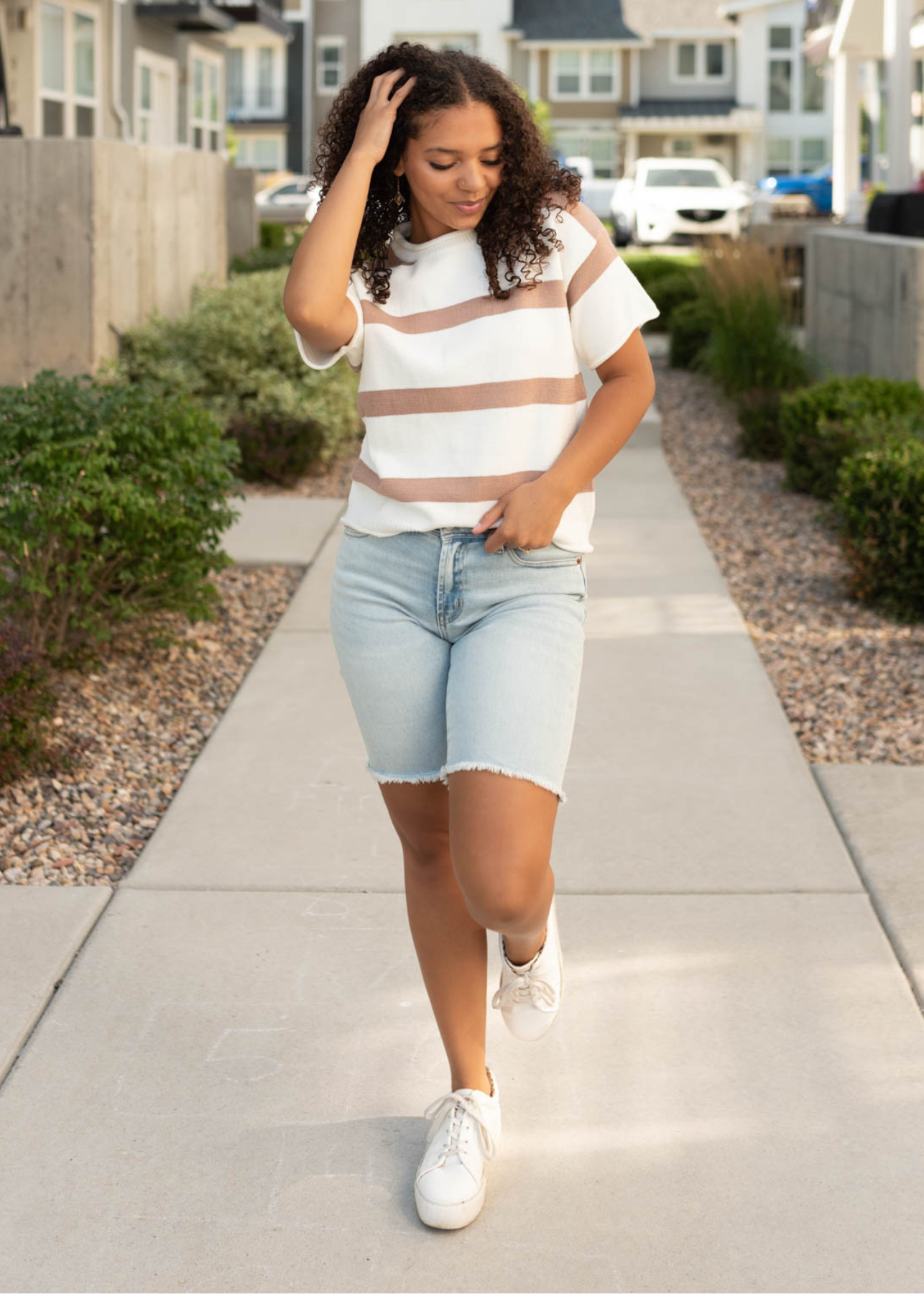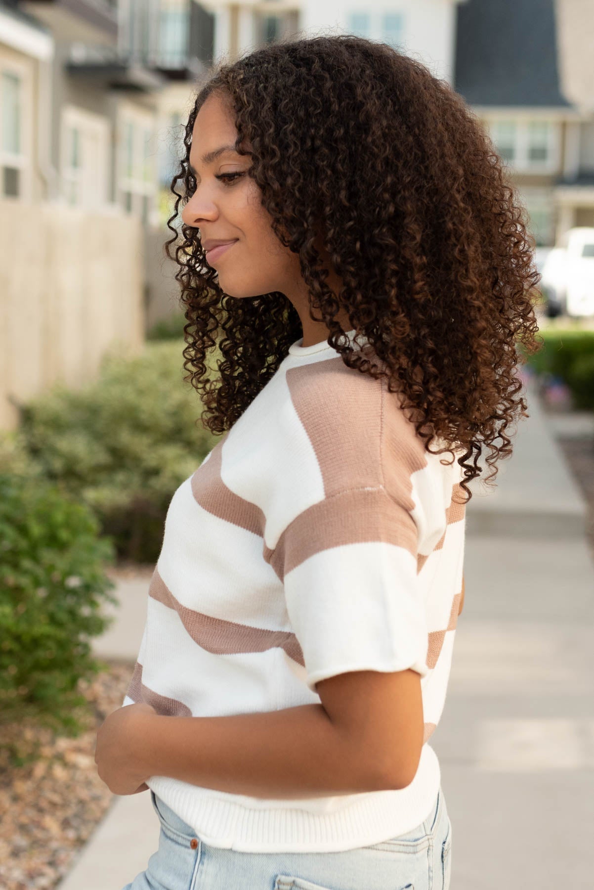 Aspen Khaki Stripe Knit Top