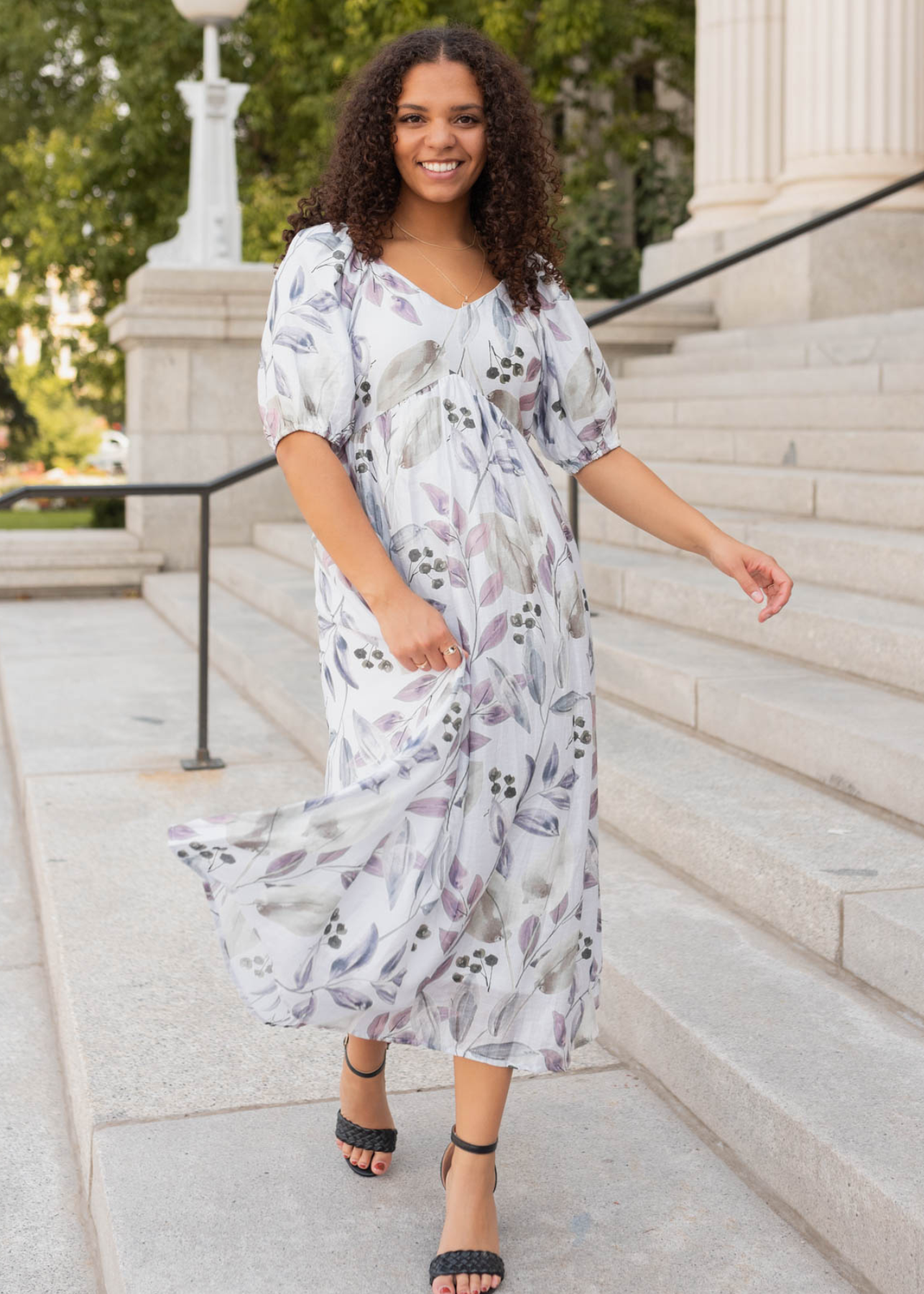 - Beautiful lavender color with deep purple and blue watercolor floral print