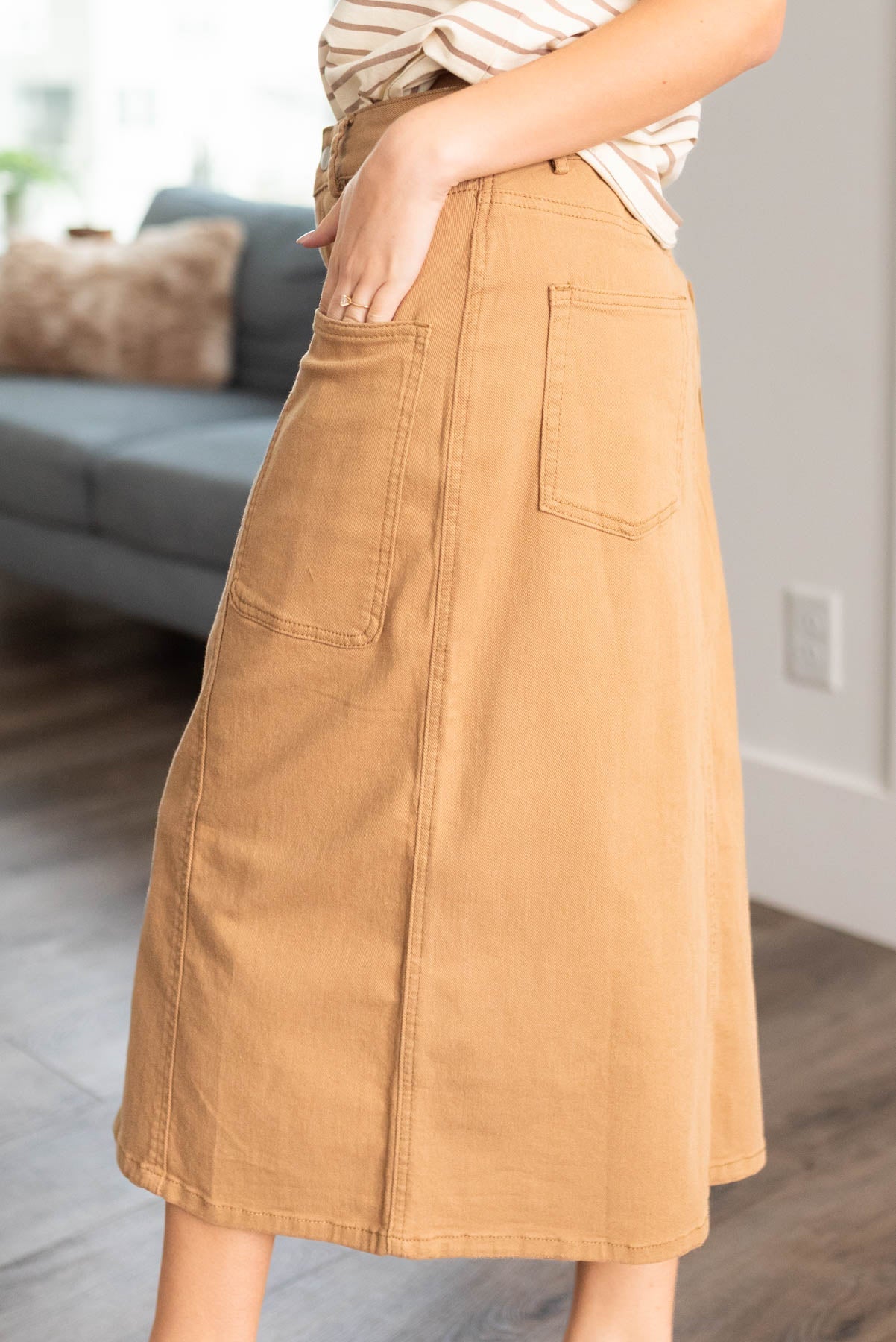 - Has functioning pockets on the front and back of the skirt