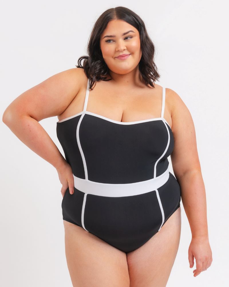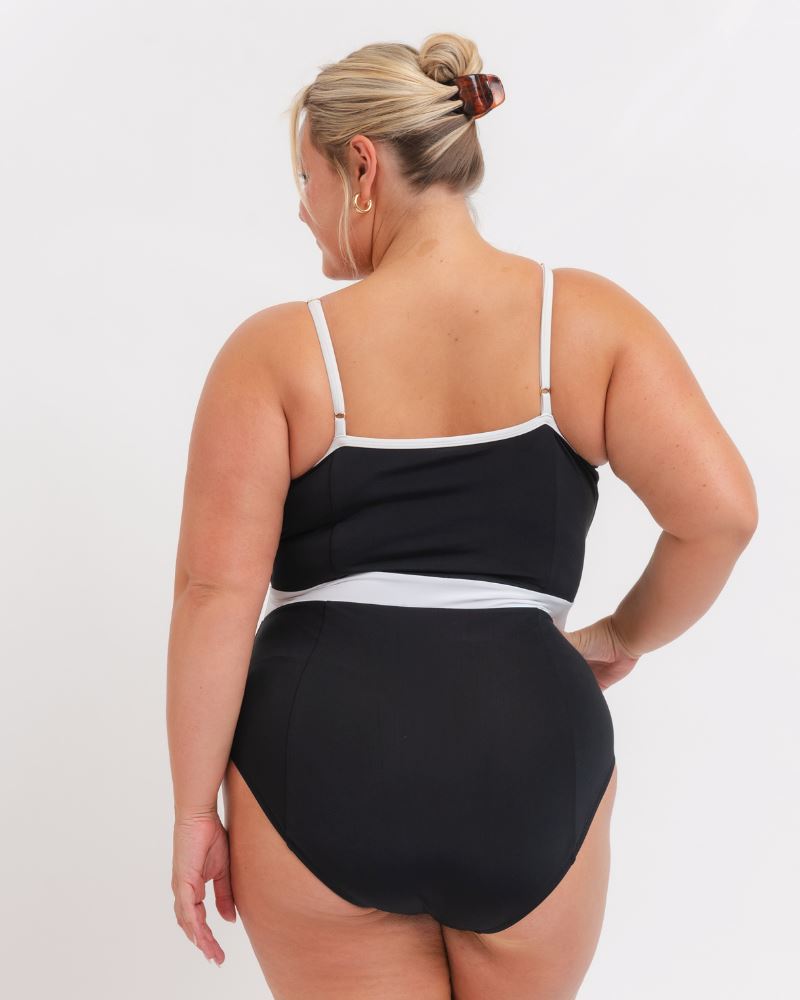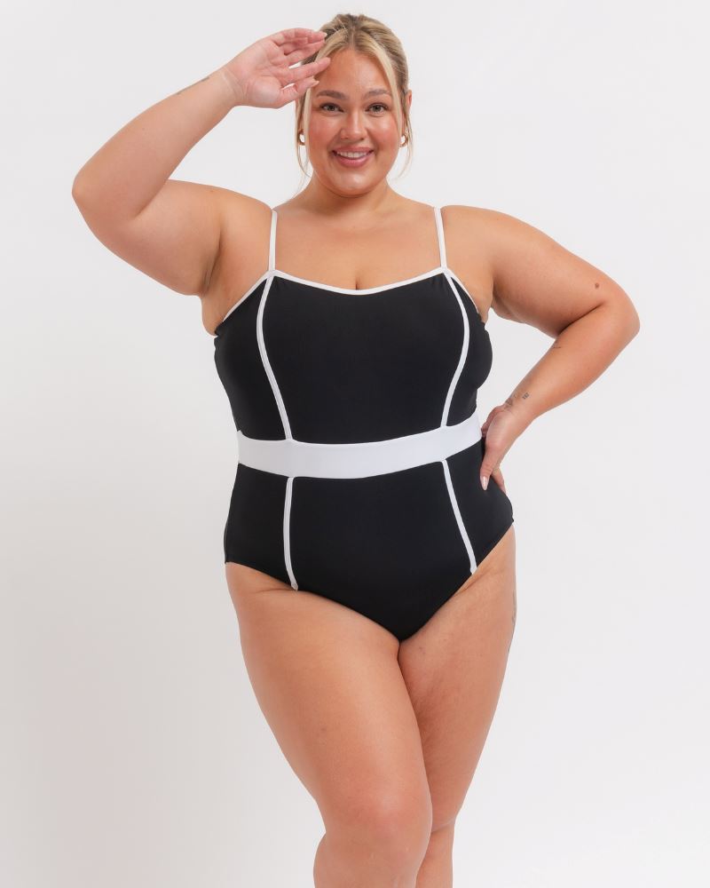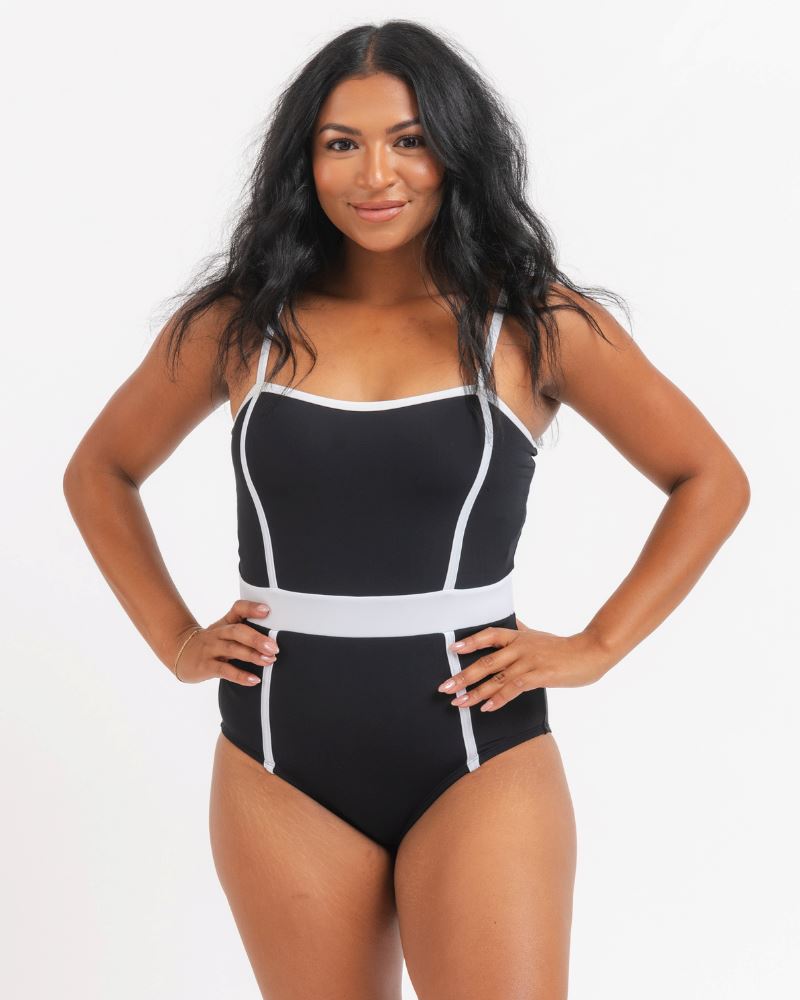 Back by popular demand, get ready to make a splash with our Black Classic One-Piece! Featuring adjustable straps & contrasting piping, this swim suit is both classic and modern. Built-in shelf bra for support and coverage.