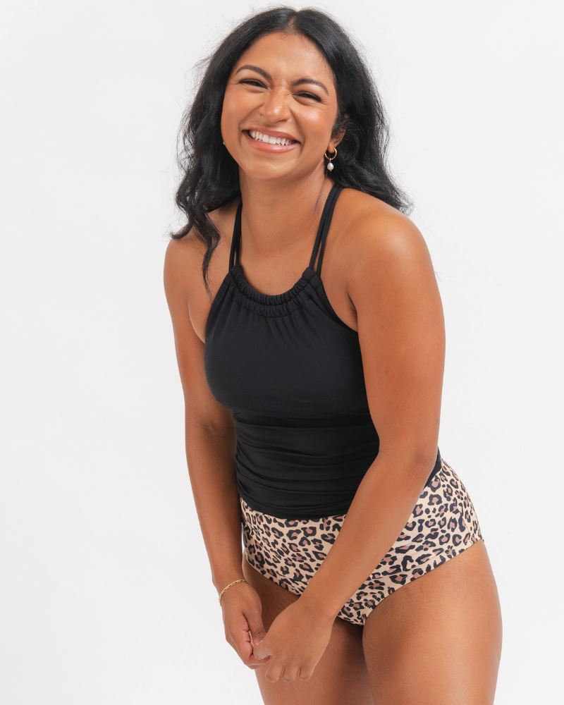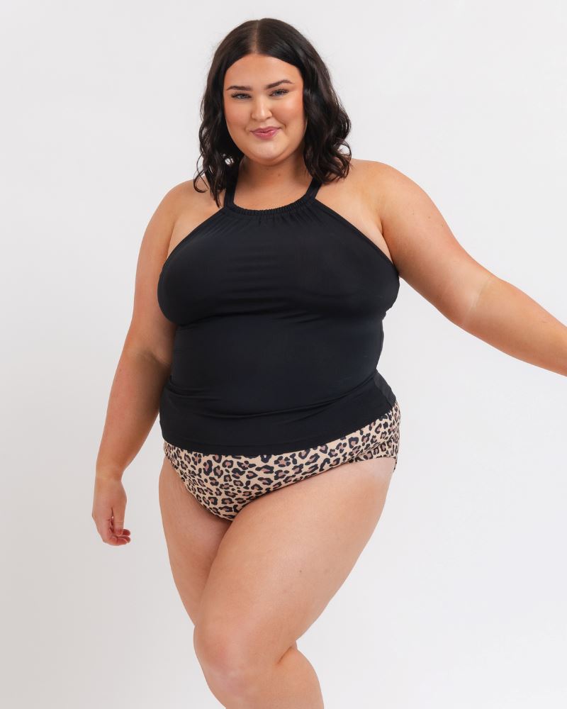 This style is a Lime Ricki staple that's been around since the beginning making it a Lime Ricki classic! Featuring a high neckline and double criss-crossing straps, this?top has full coverage and built-in support.