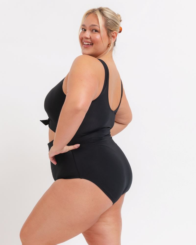 This is our top selling one-piece style! Featuring a scooping neck & backline and a fun knot that ties in the center, this one-piece has great built-in support. It is sure to become an instant?favorite in your summer lineup.