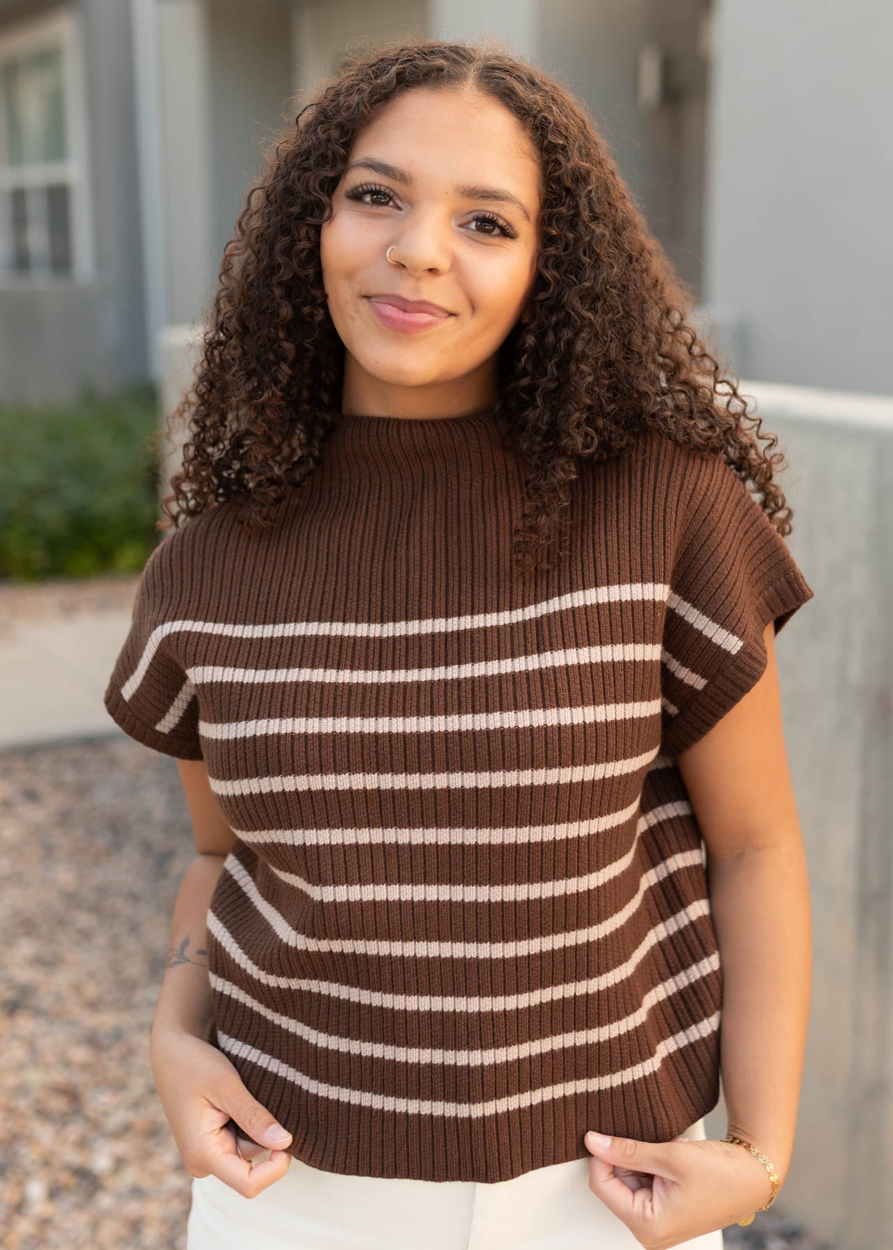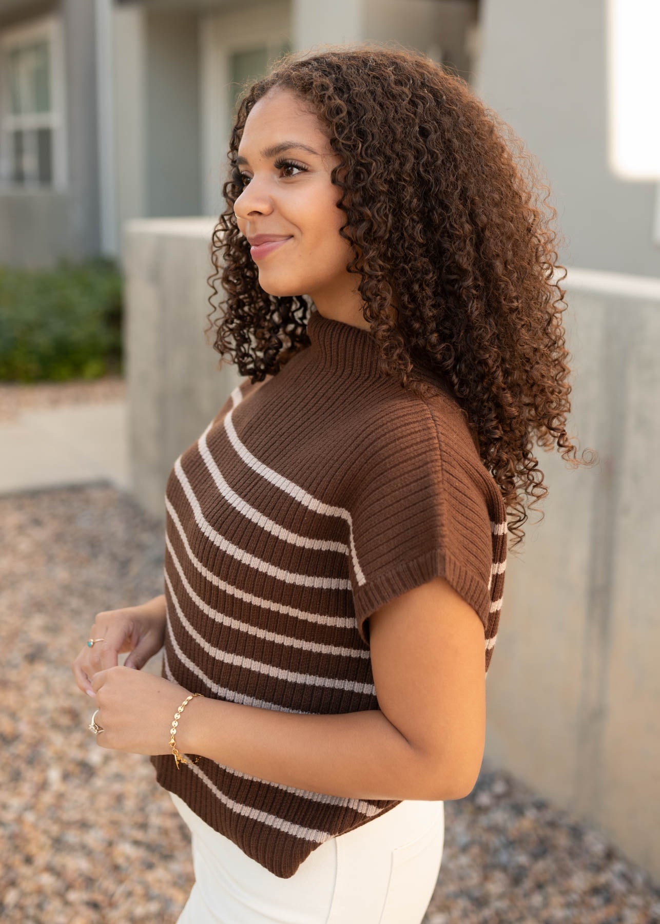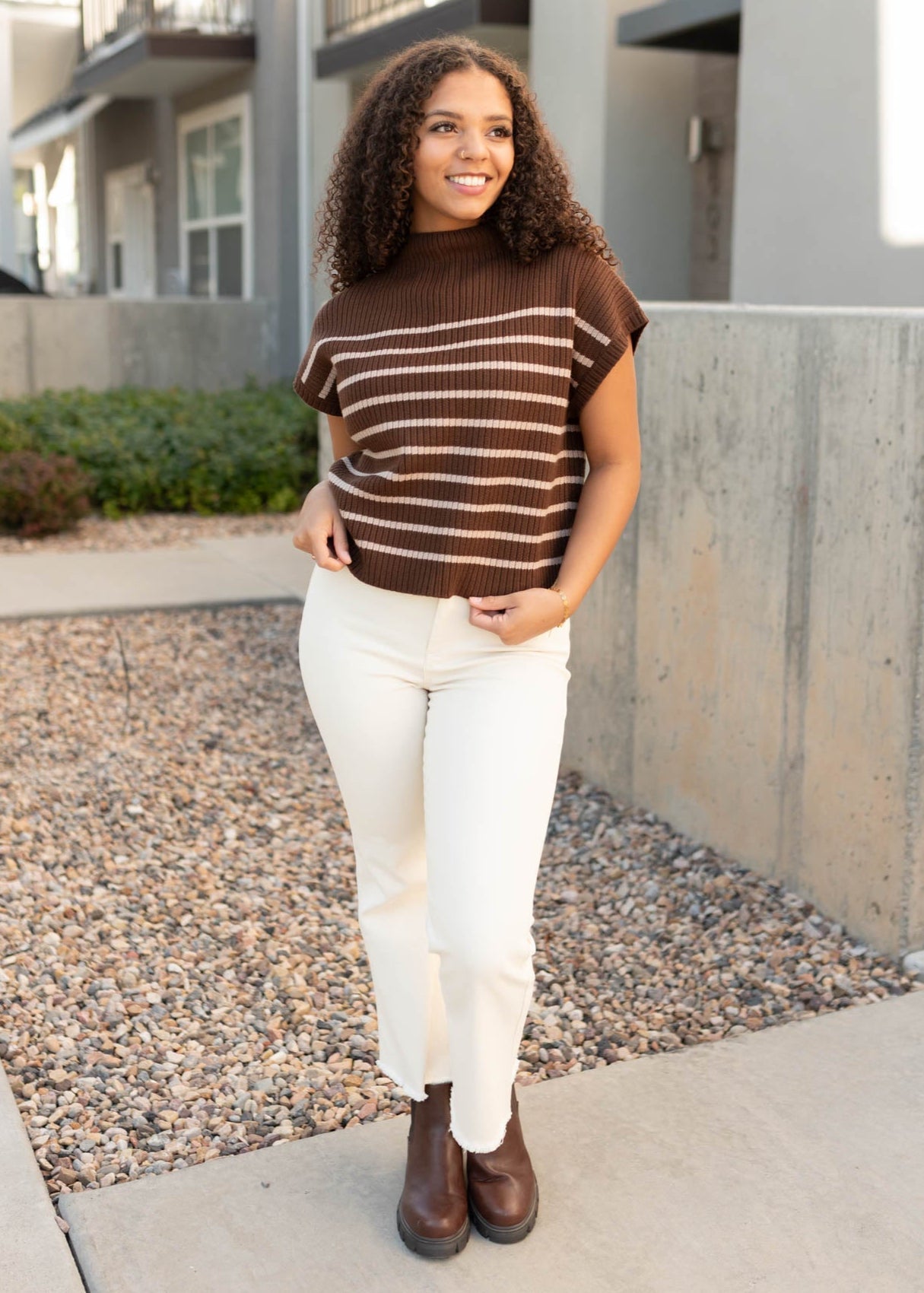 The Claire Hazelnut Sweater is a warm hug in clothing form¡ªsoft, stretchy, and oh-so-easy to style. Its ribbed texture and timeless striped design make it the kind of piece you¡¯ll reach for again and again.