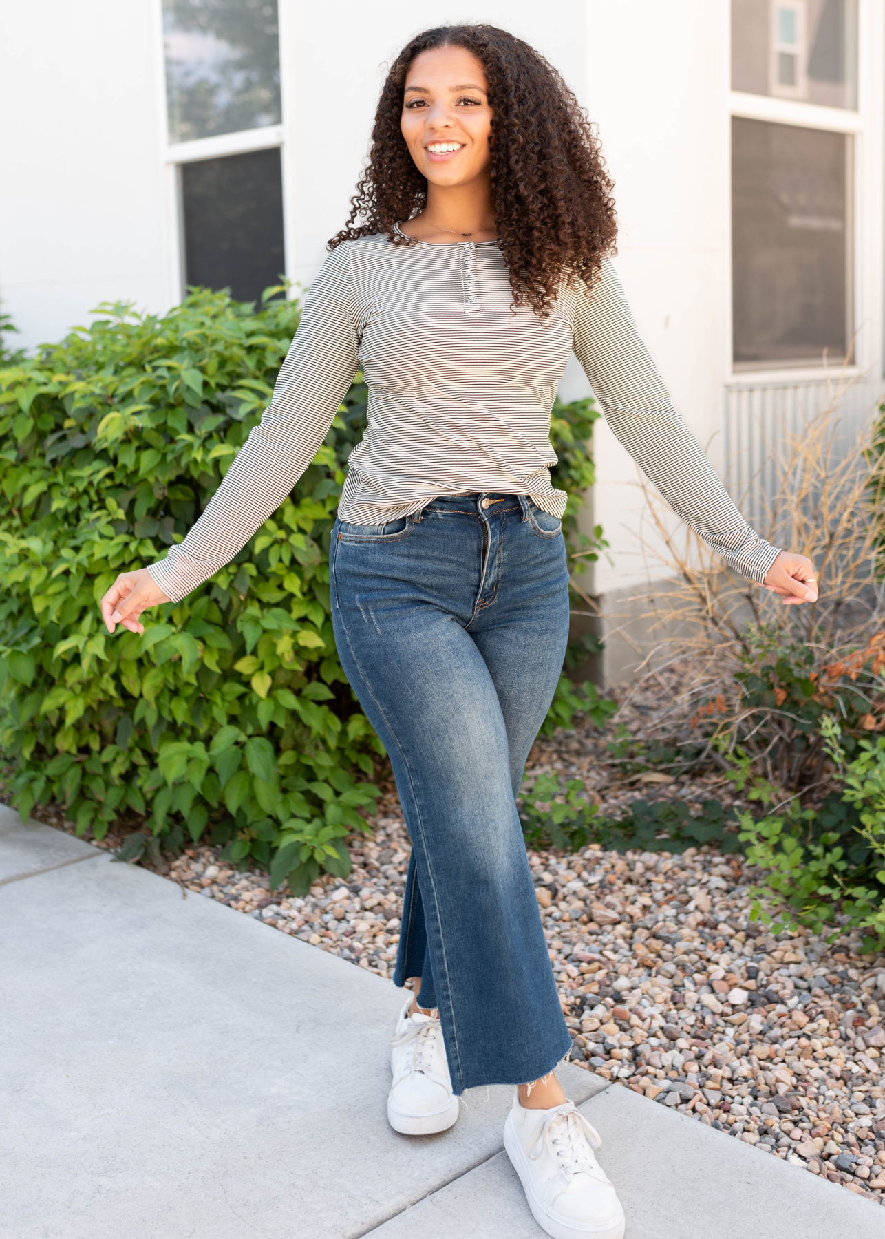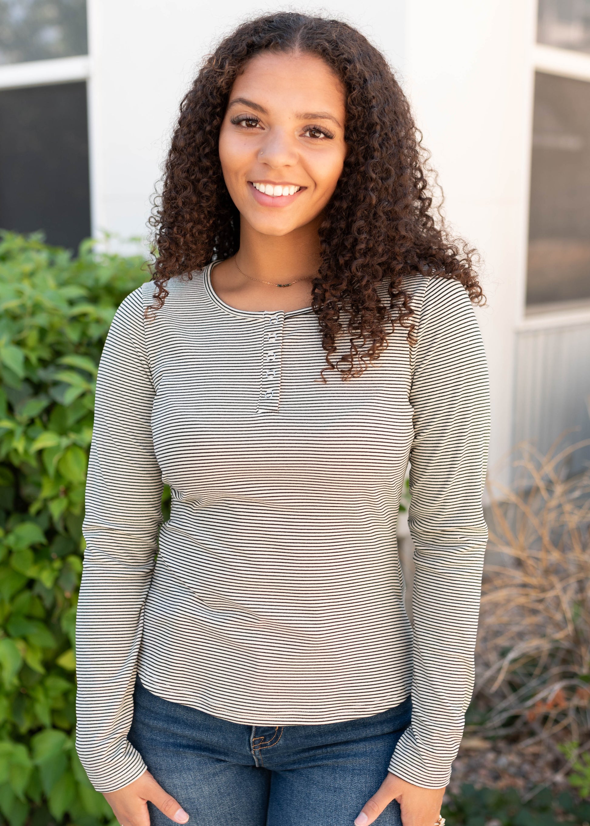The Connie Black Striped Top is a cozy classic with a playful twist! Soft, stretchy, and oh-so-comfy, it features a flattering scoop neckline and functional front buttons for easy wear. The black-and-white stripe pattern adds just the right touch of fun to your everyday look.