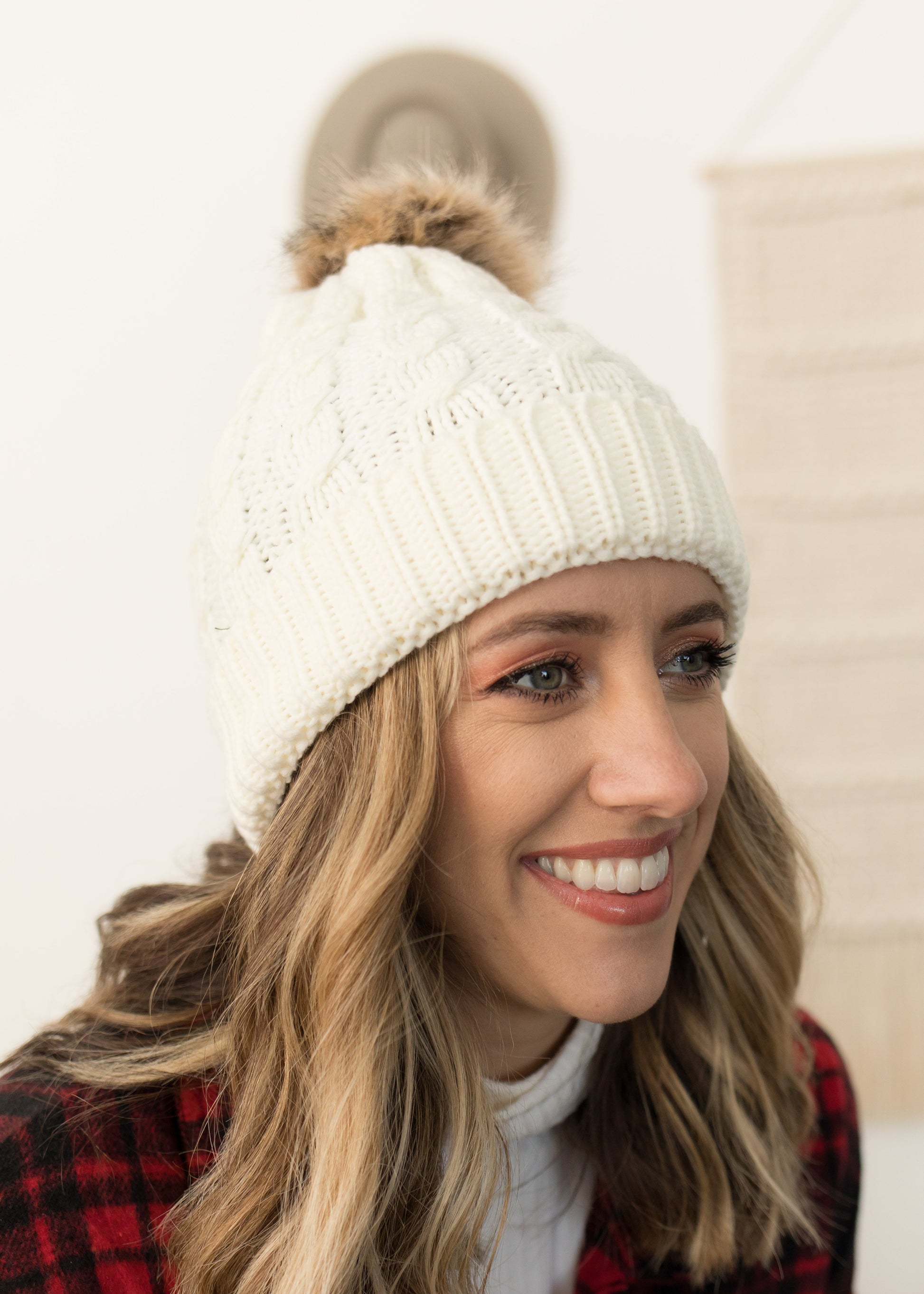 Emmie Cream Knit Pom Pom Beanie