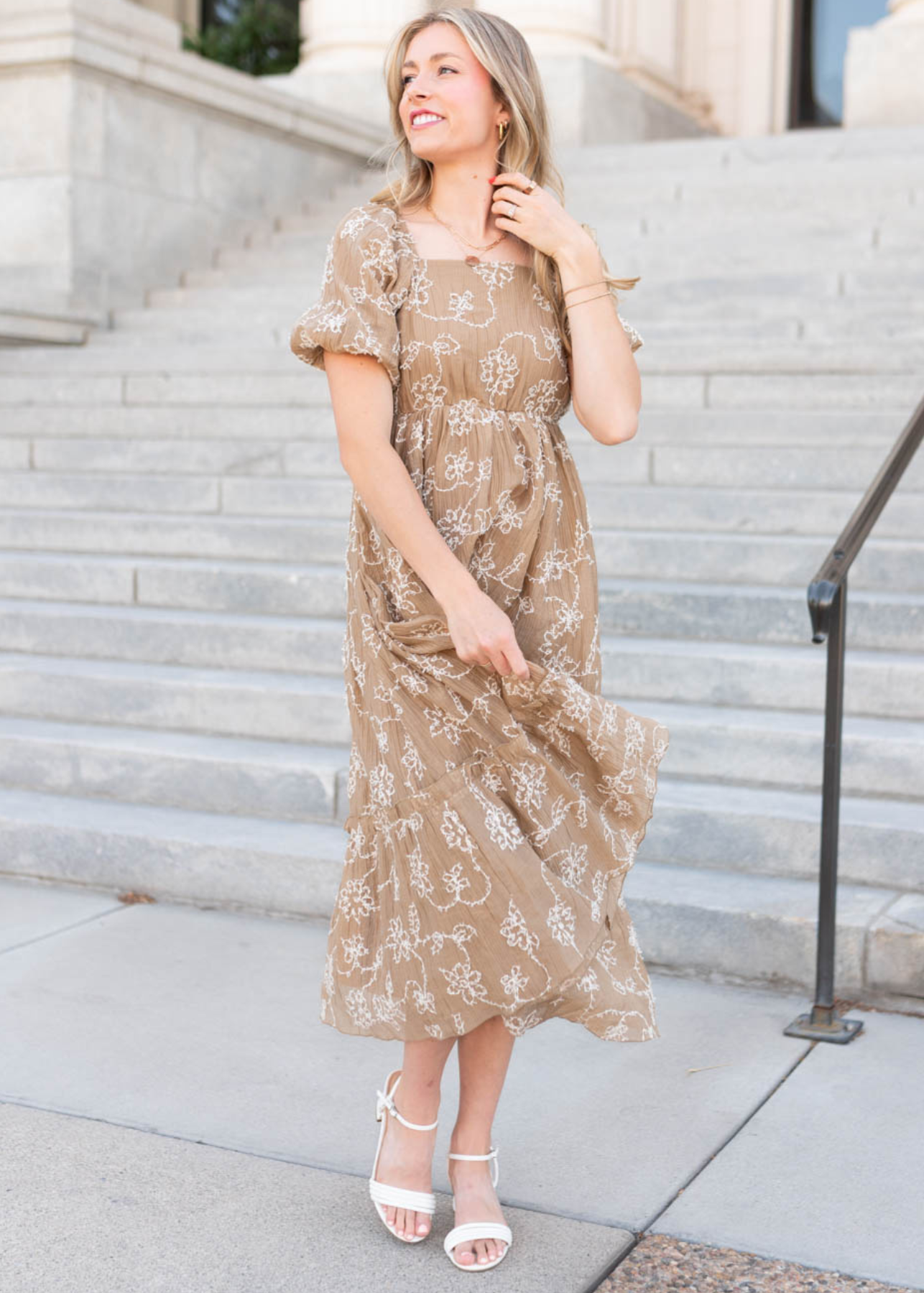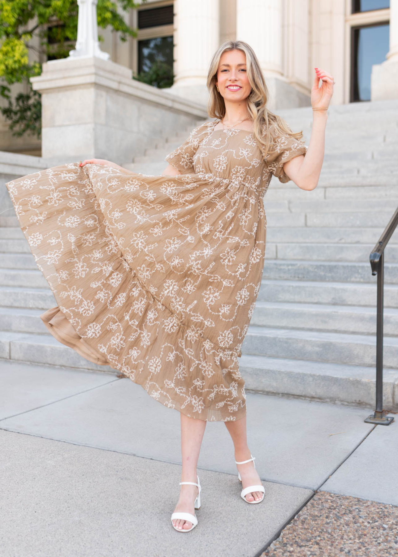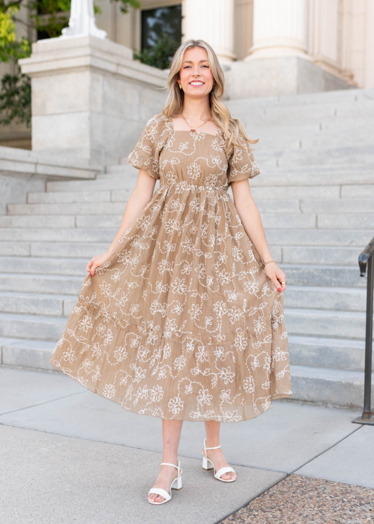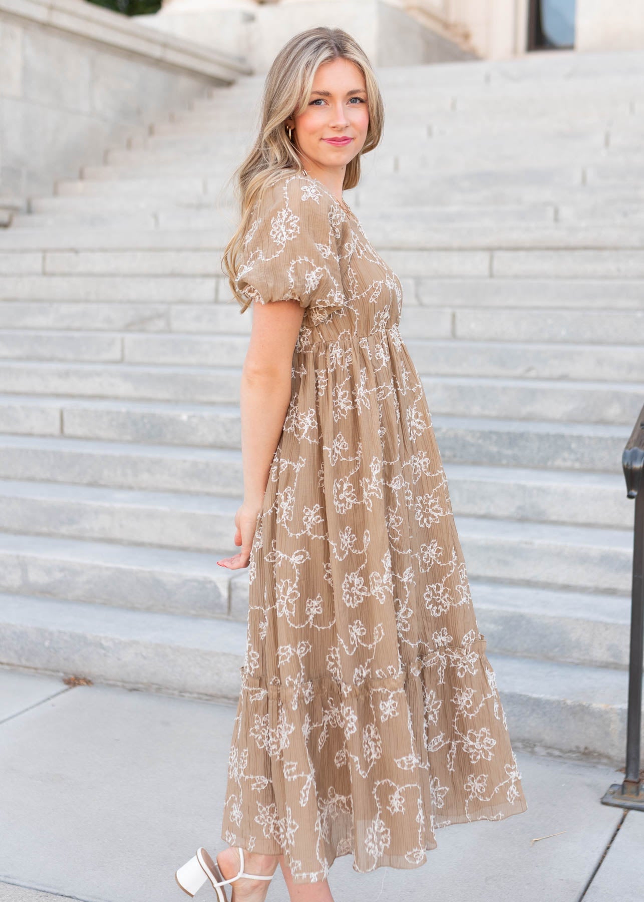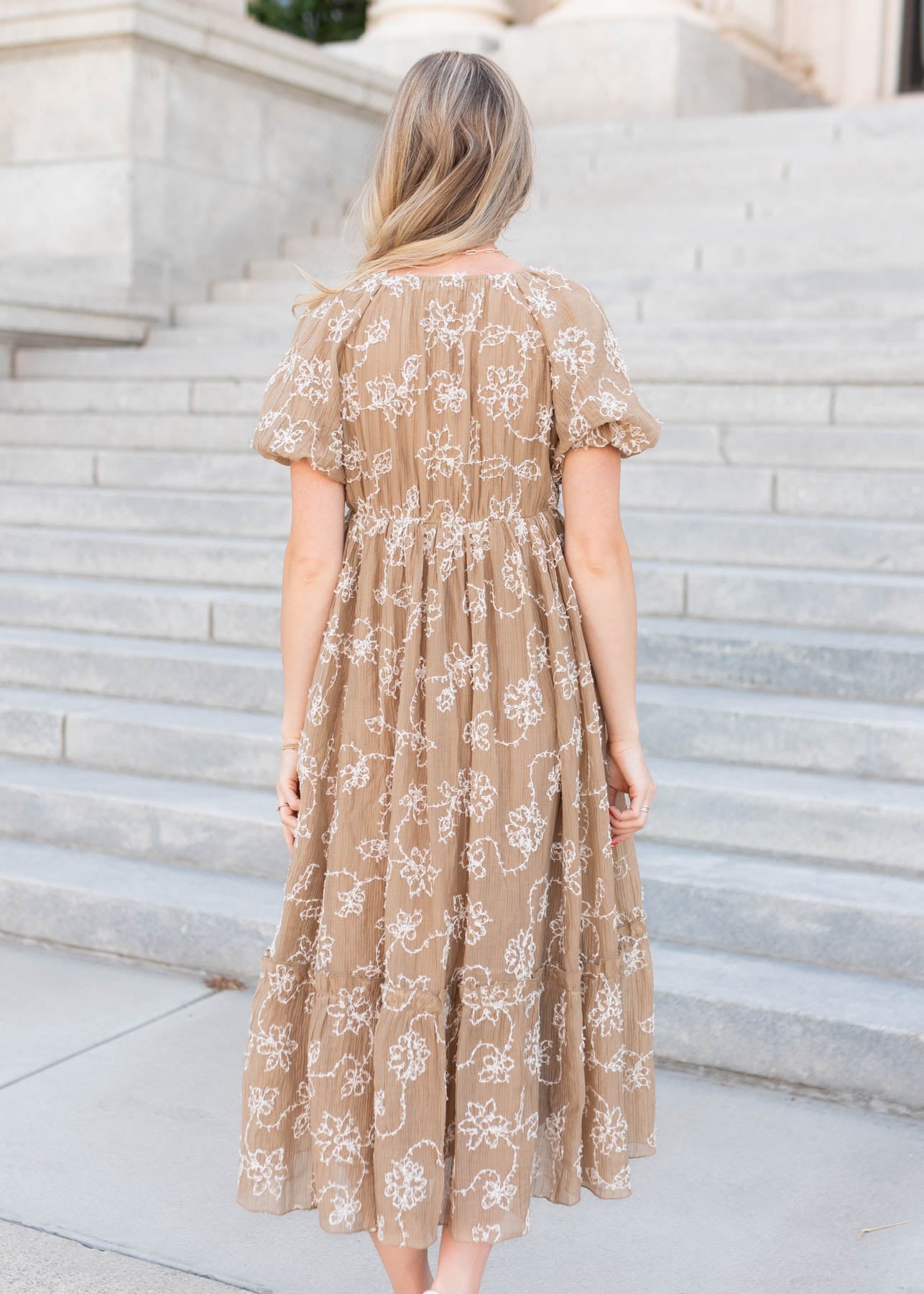 Esther Light Mocha Embroidered Dress