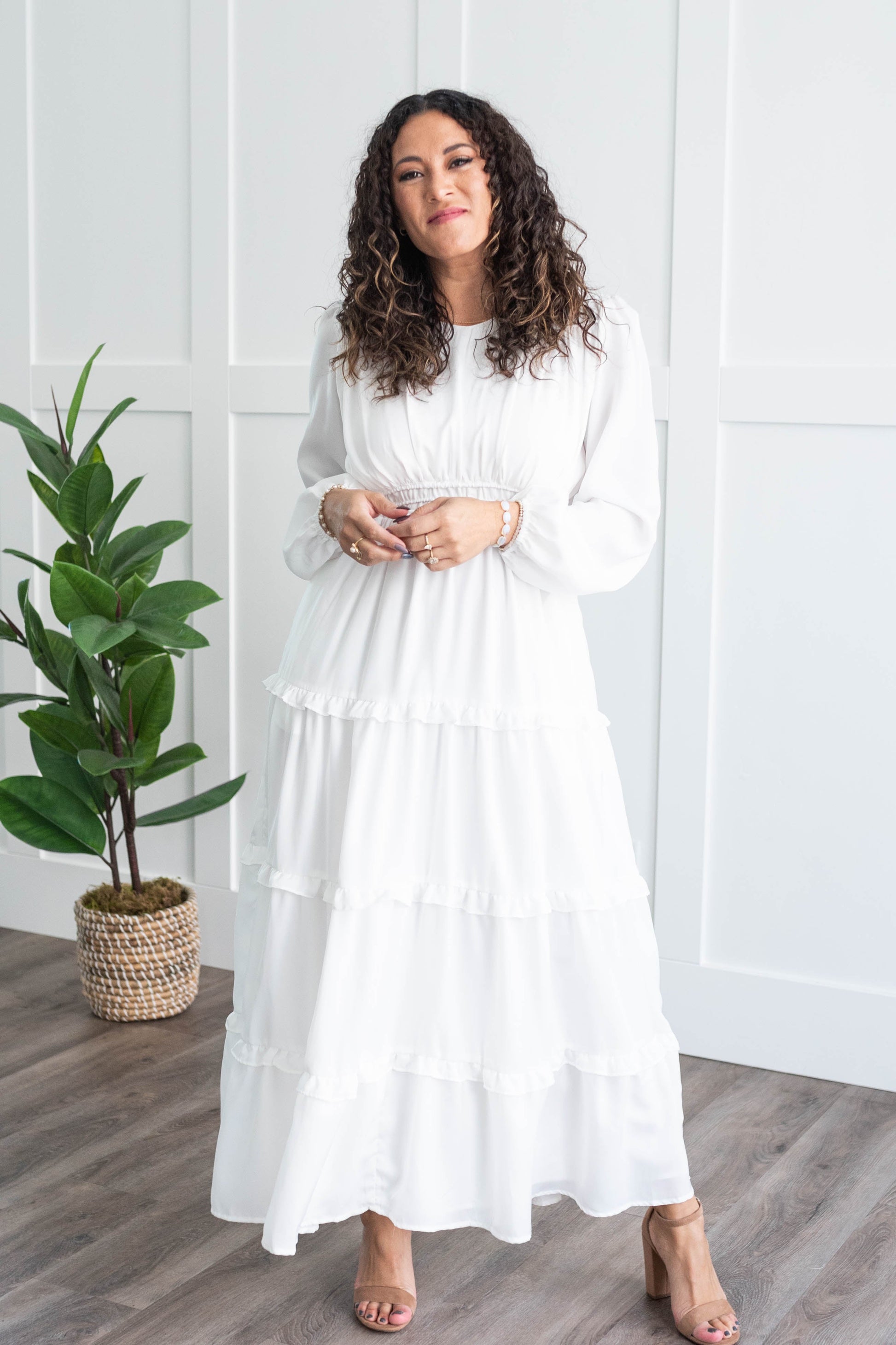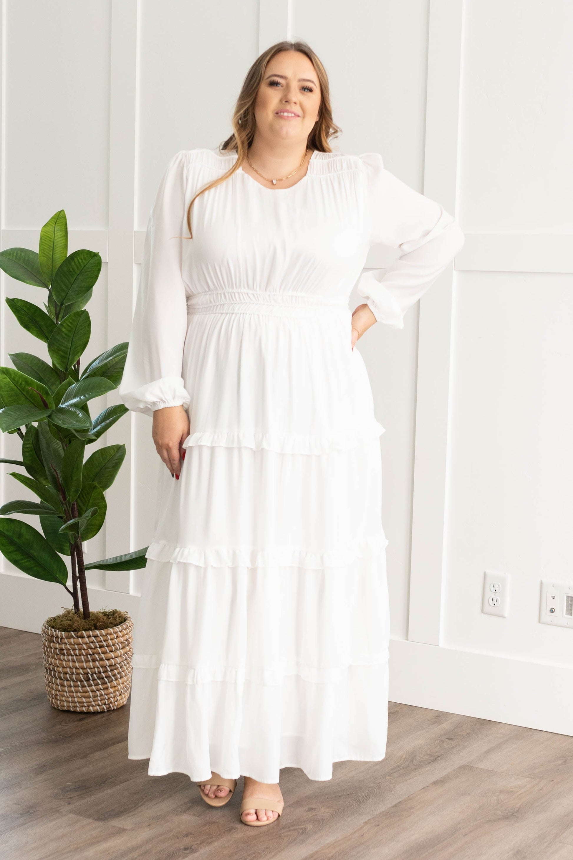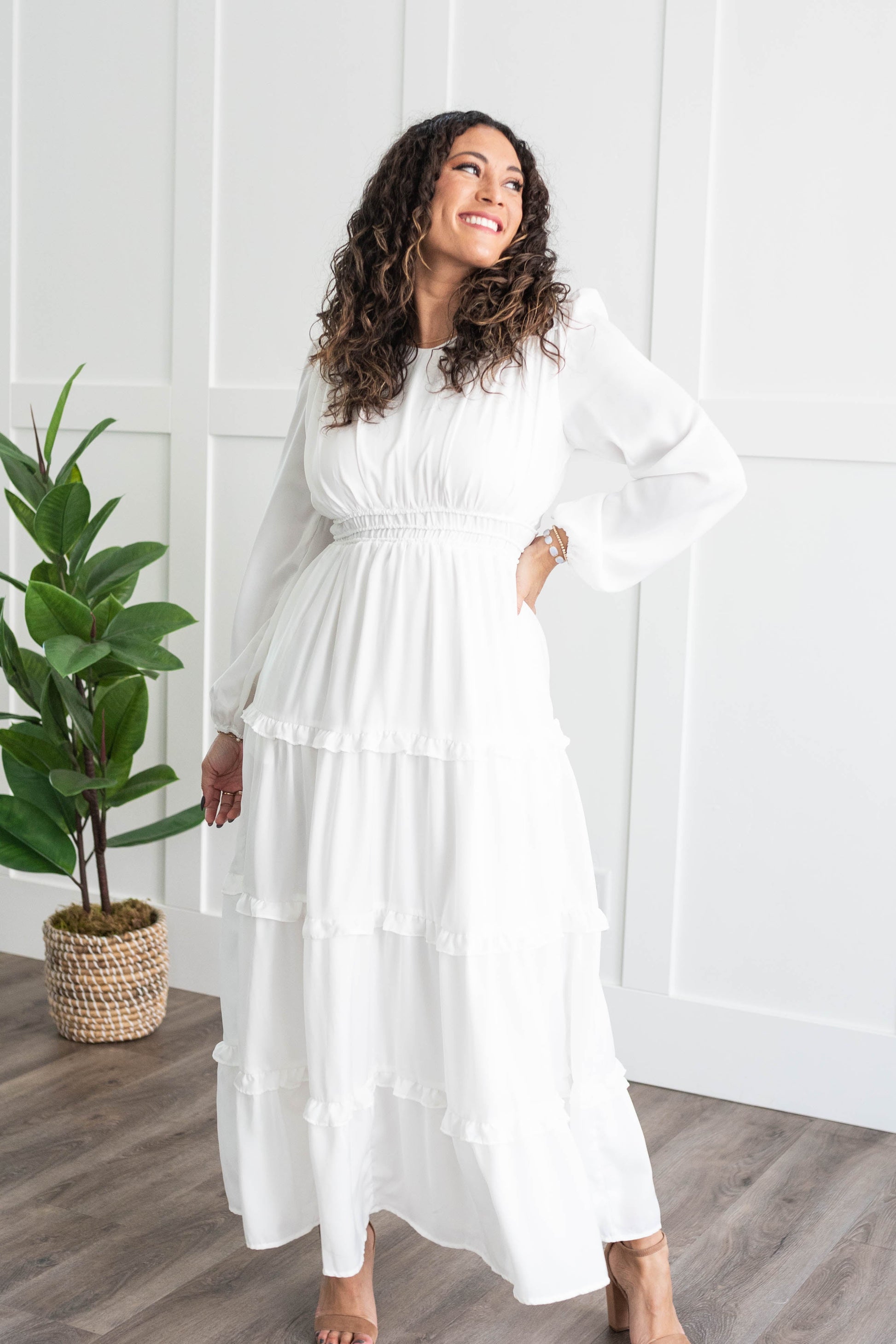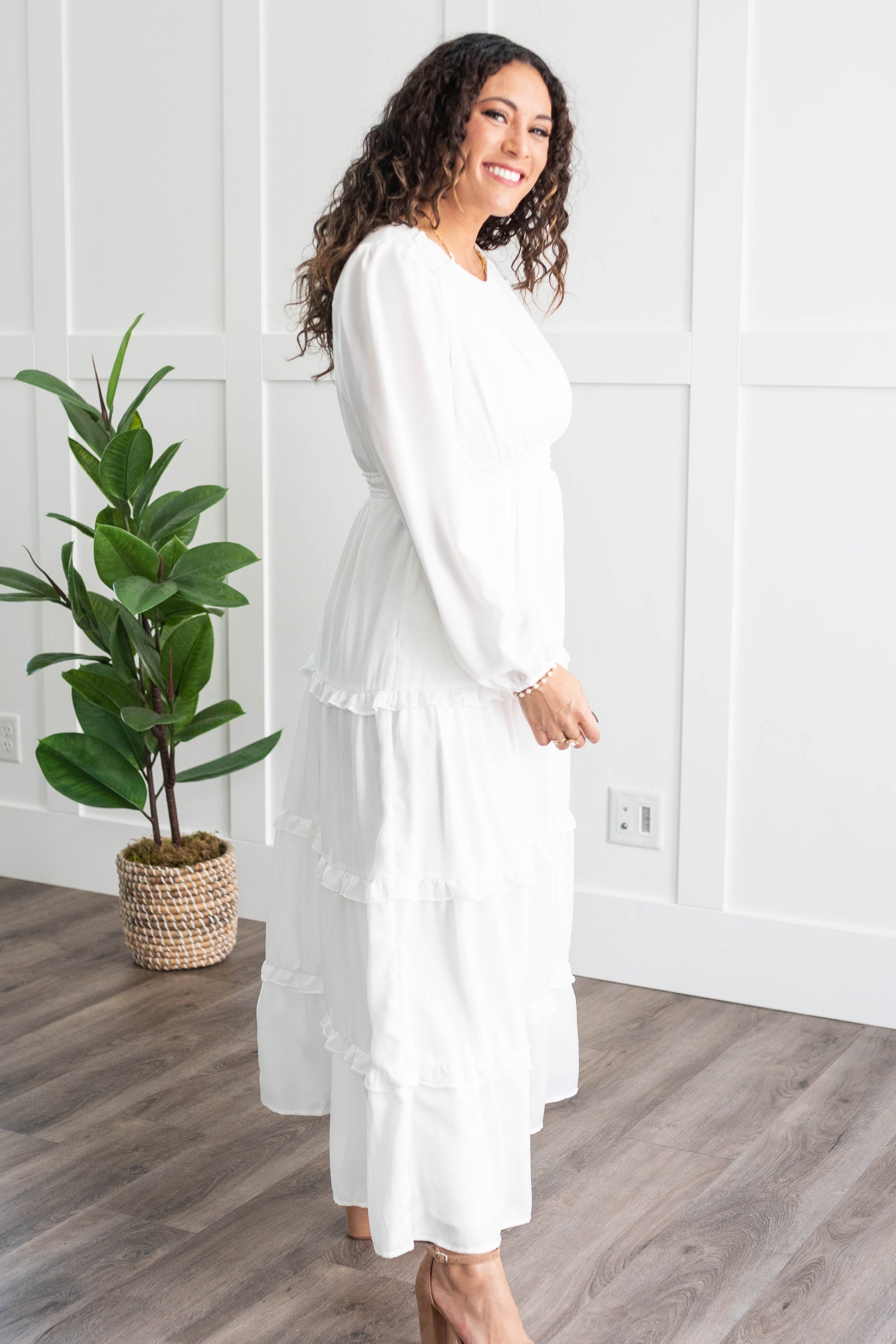 Evelina White Tiered Dress