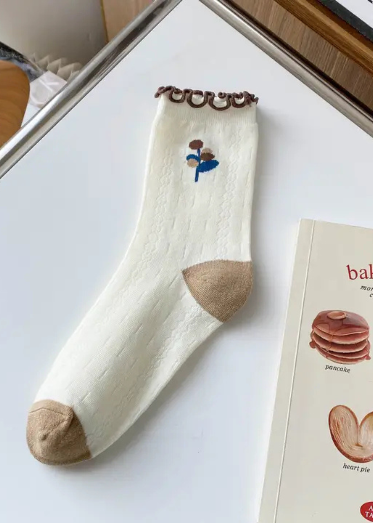 Evelyn Cream Floral Mid-Calf Socks