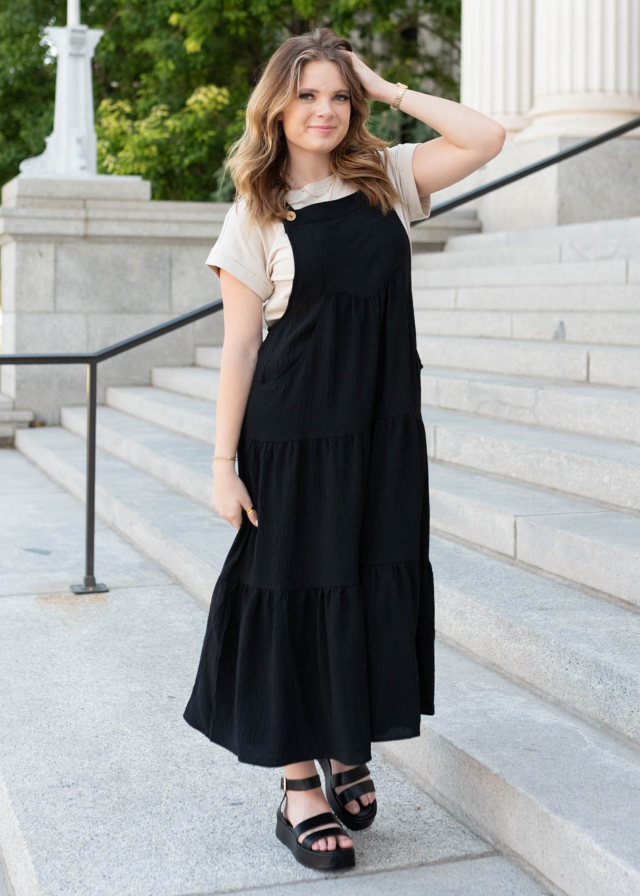 - Tiered skirt and pockets!