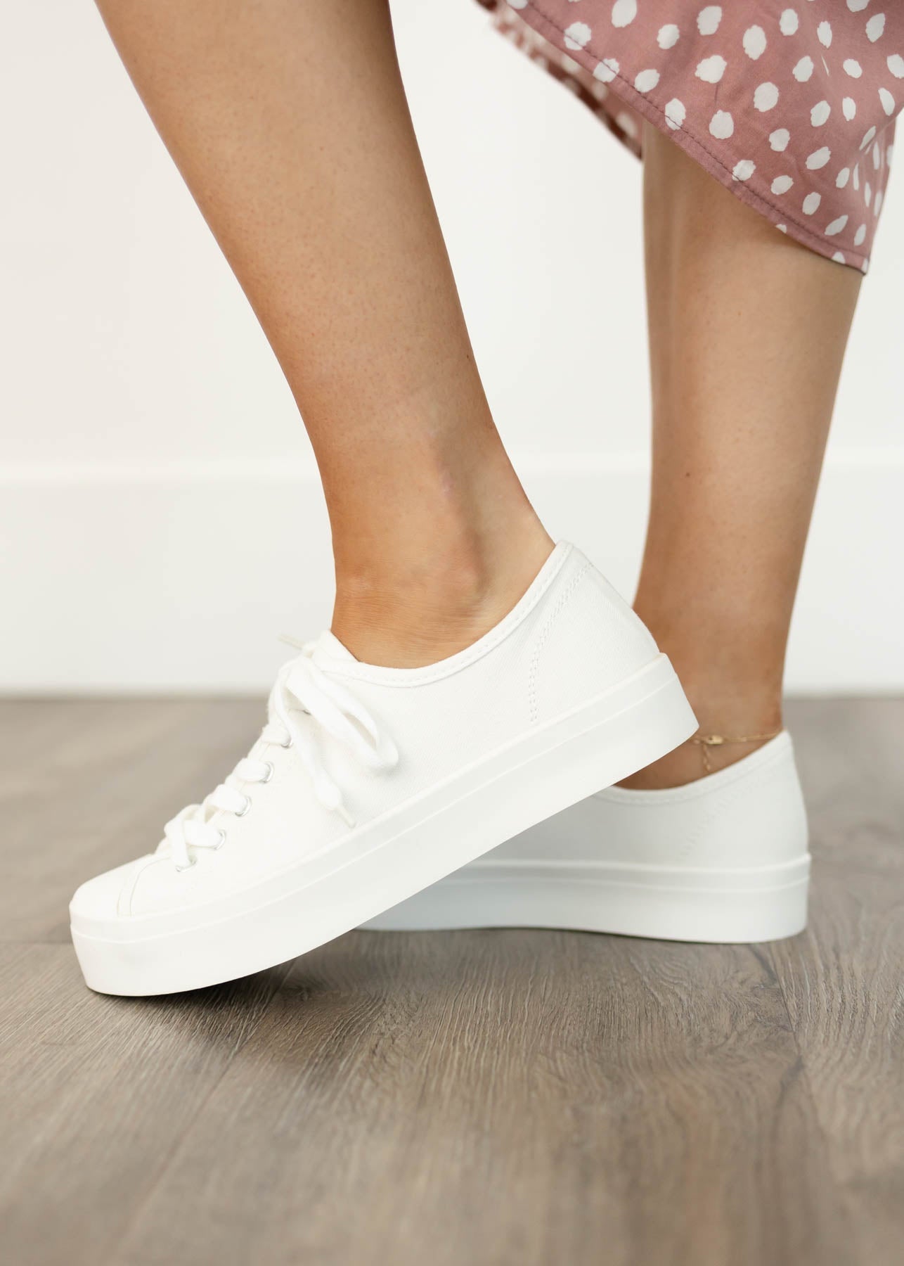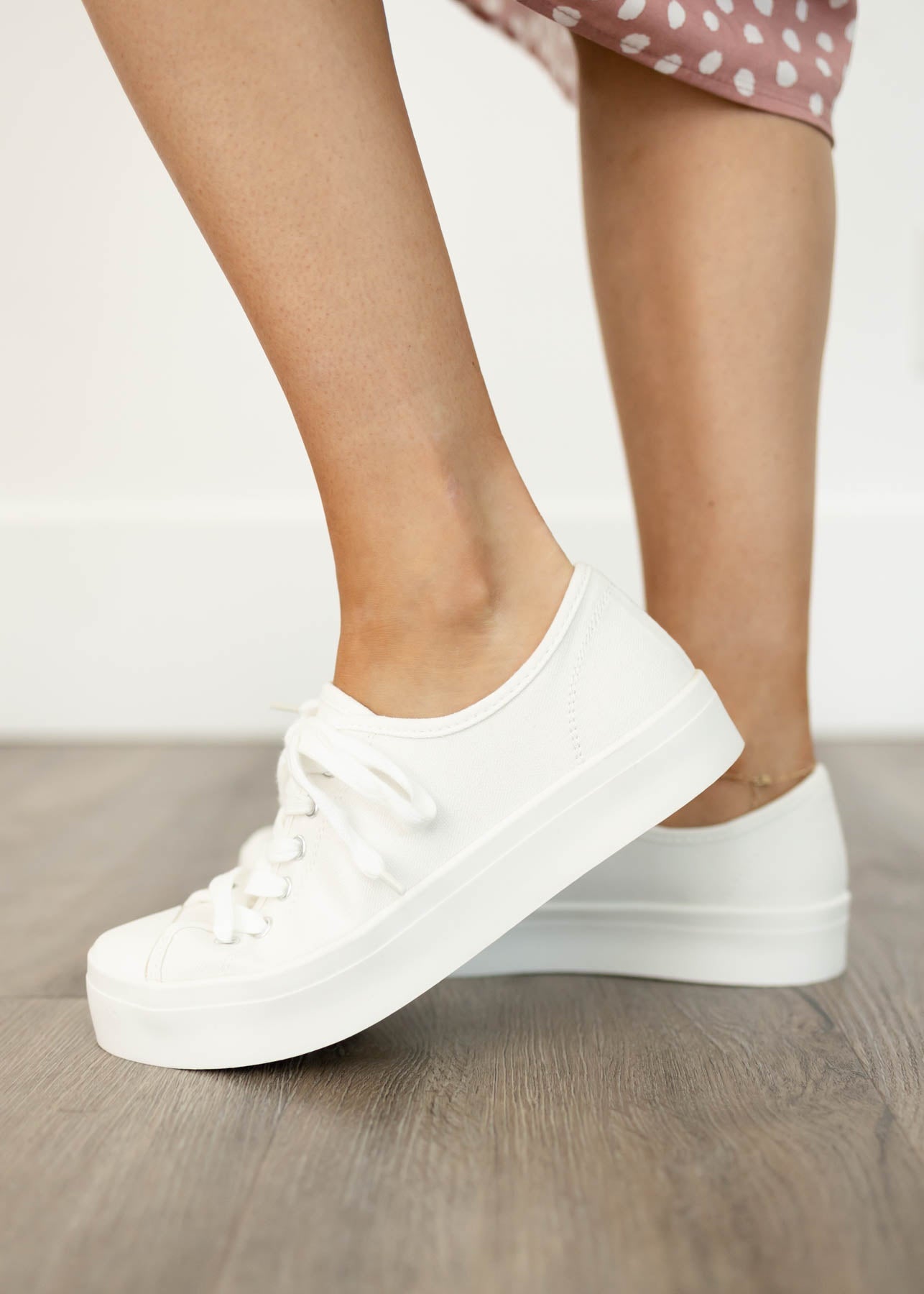 Transform your style with the Gina white sneakers that blend comfort and chic! Crafted with a memory foam cushion and a distinctive platform style, these shoes will have your feet (and heart) feeling like they're walking on clouds. Look sharp and feel great in Gina!