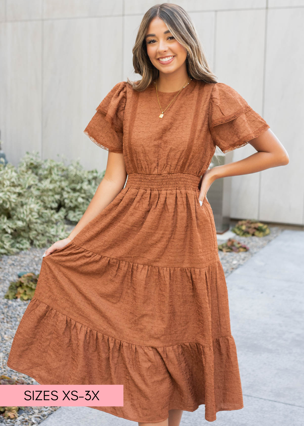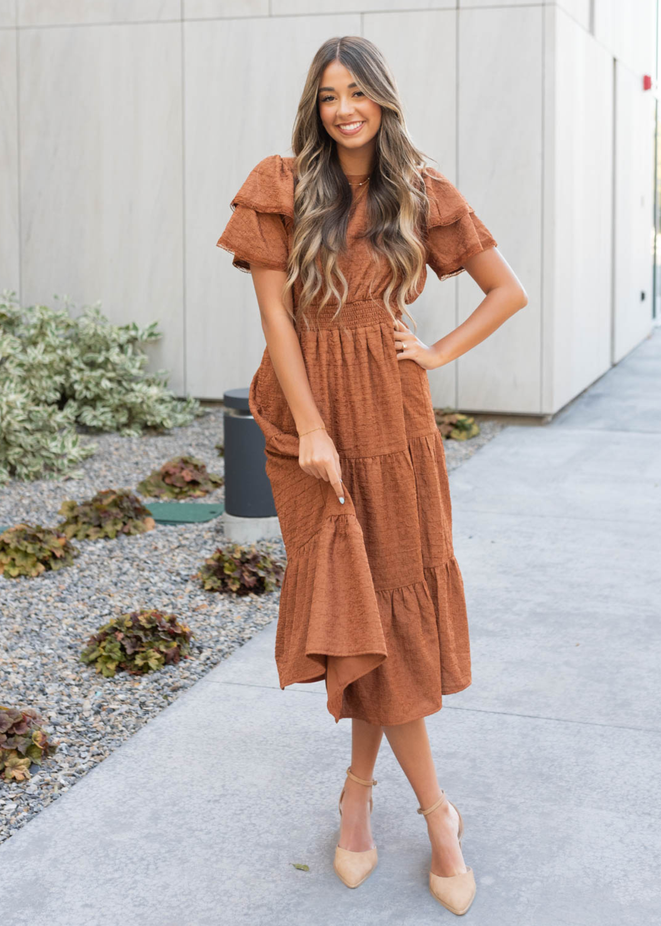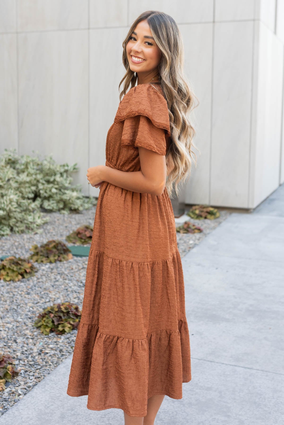 Harleigh Chestnut Ruffle Tiered Dress