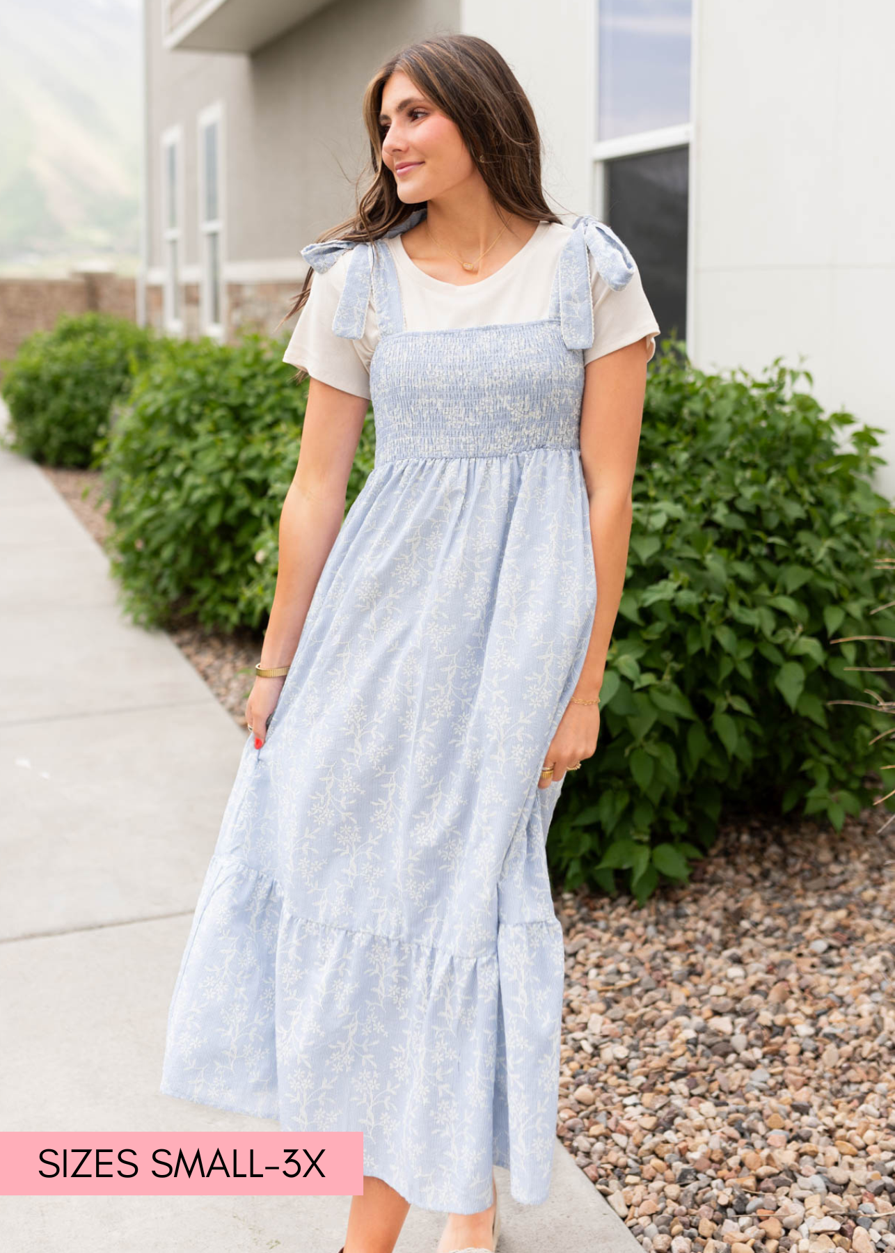 - Fits TTS with a smocked bodice. Size down if in-between
