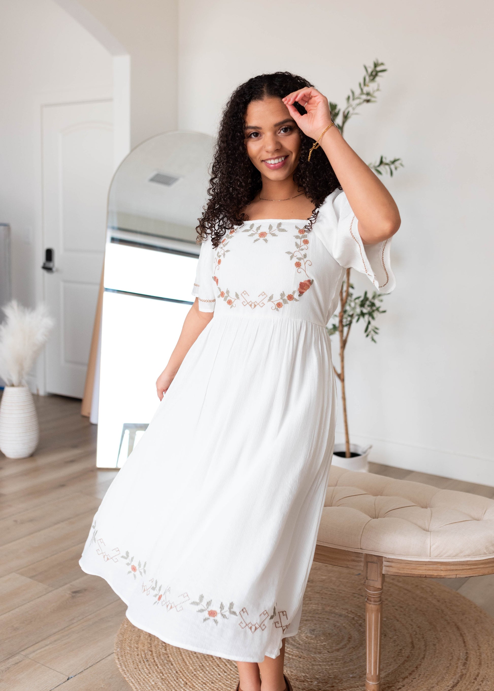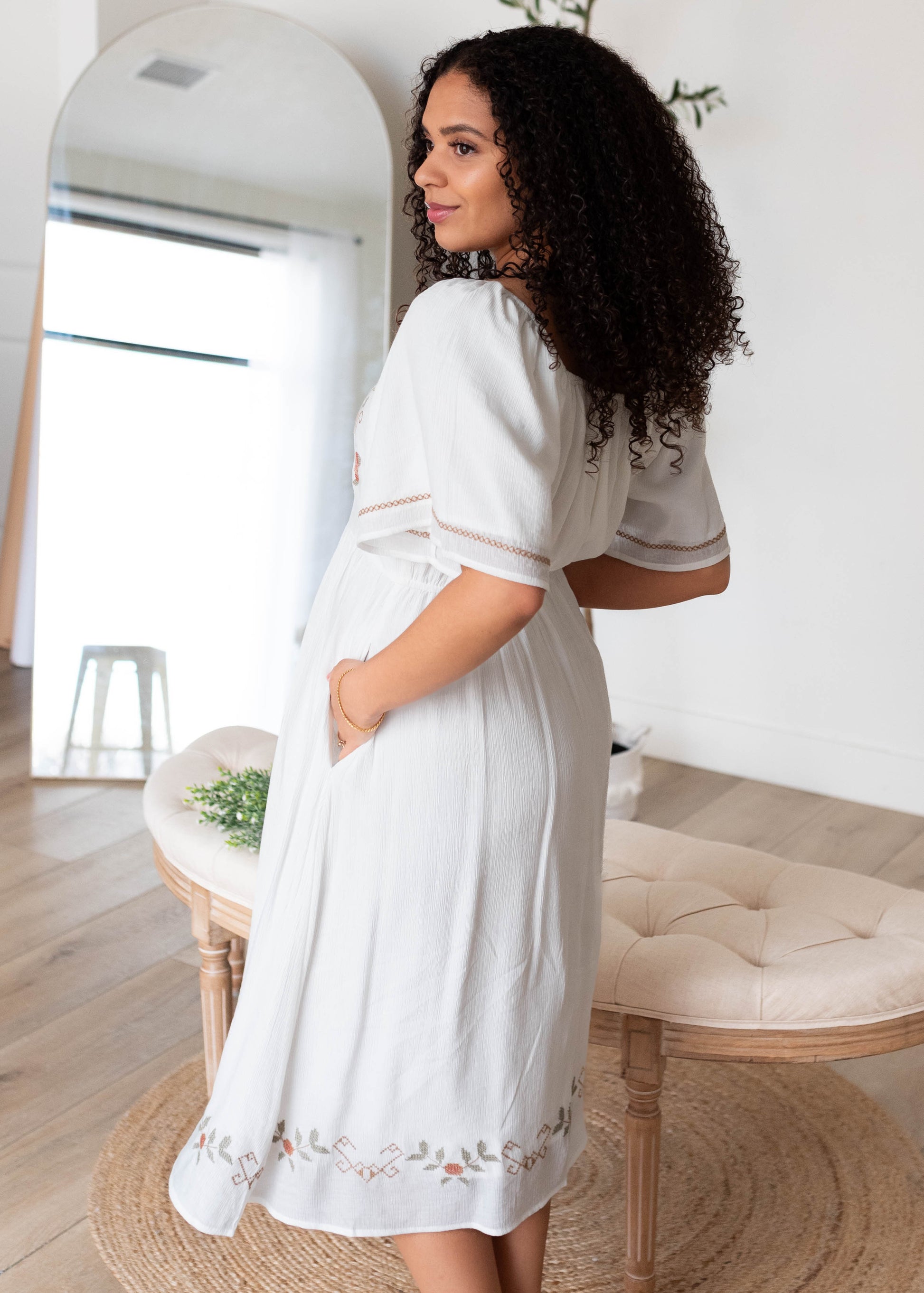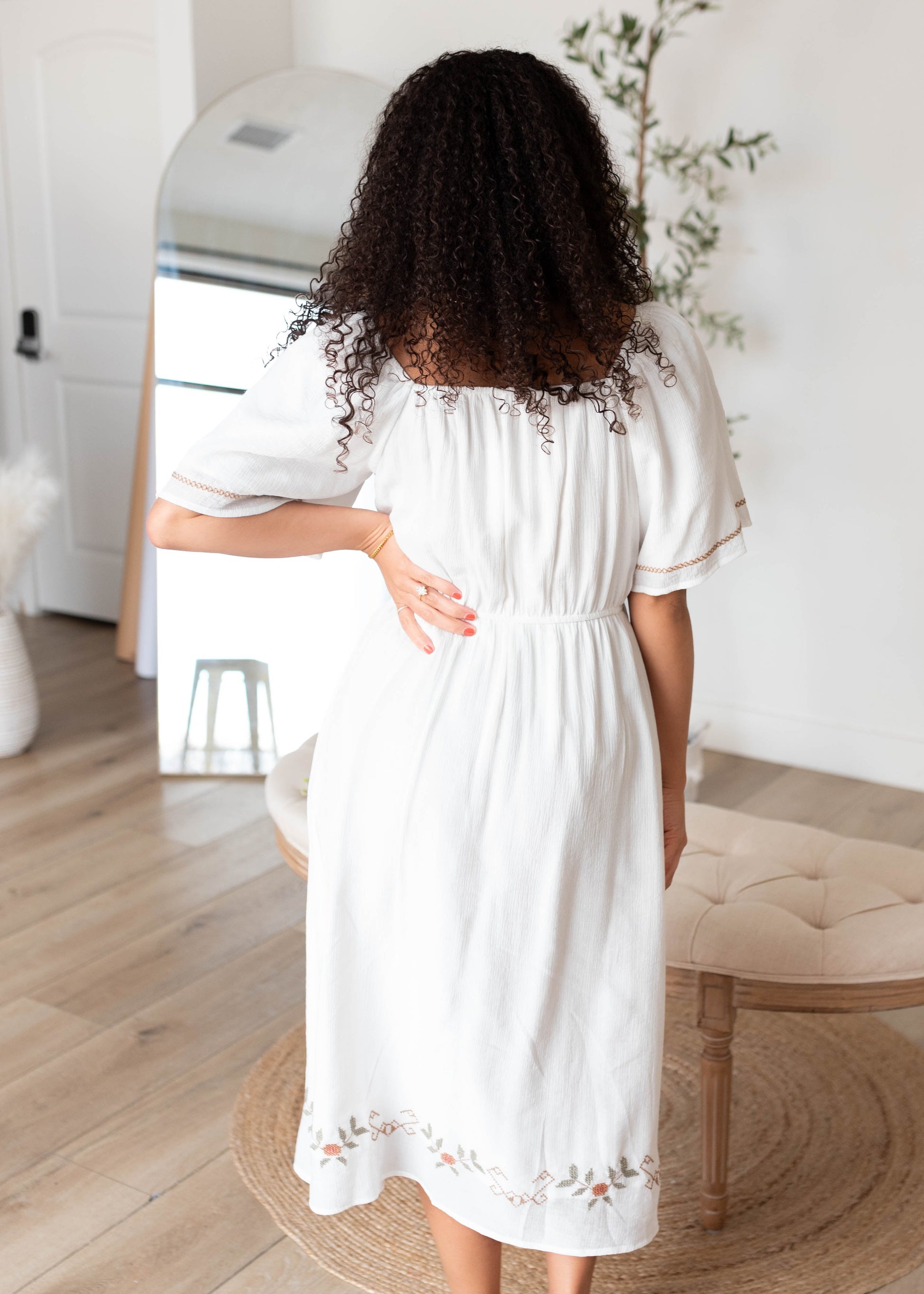- Super cute embroidered detail along bodice and hem