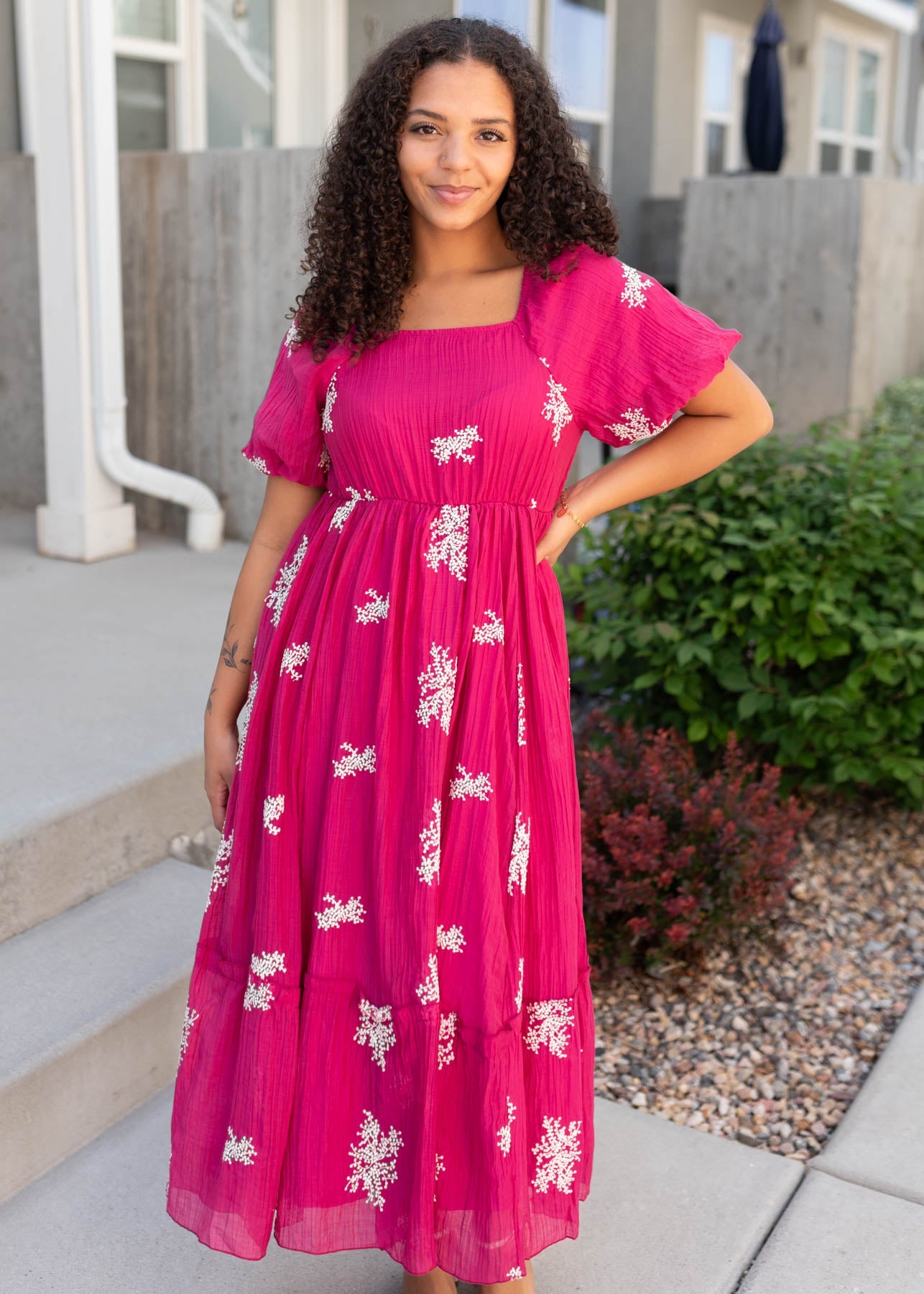 Jacie Fuchsia Embroidered Dress