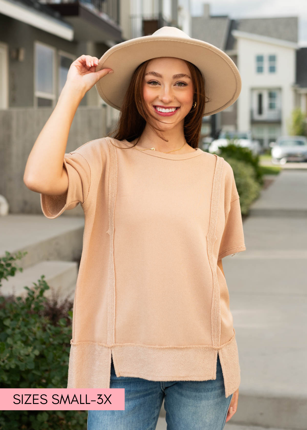 - Drop sleeves + relaxed fit