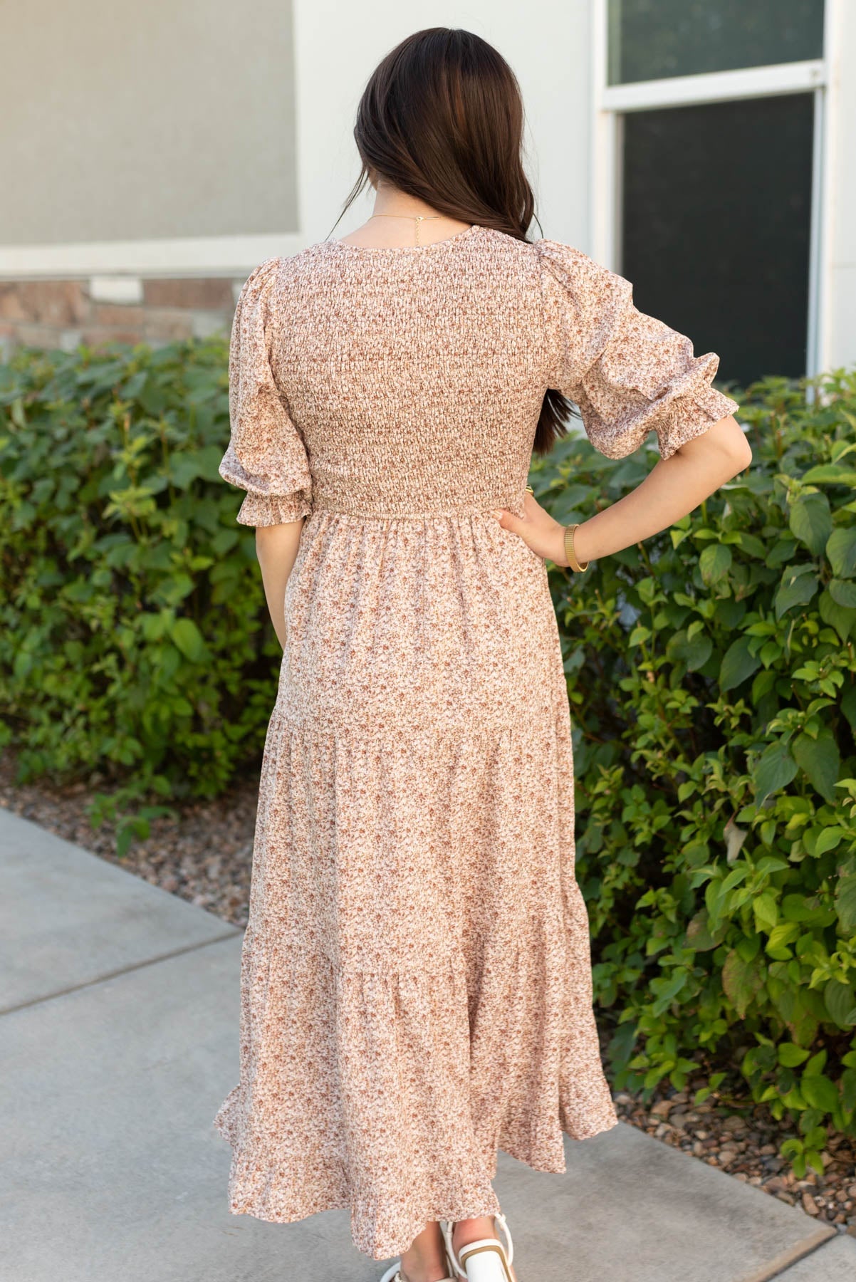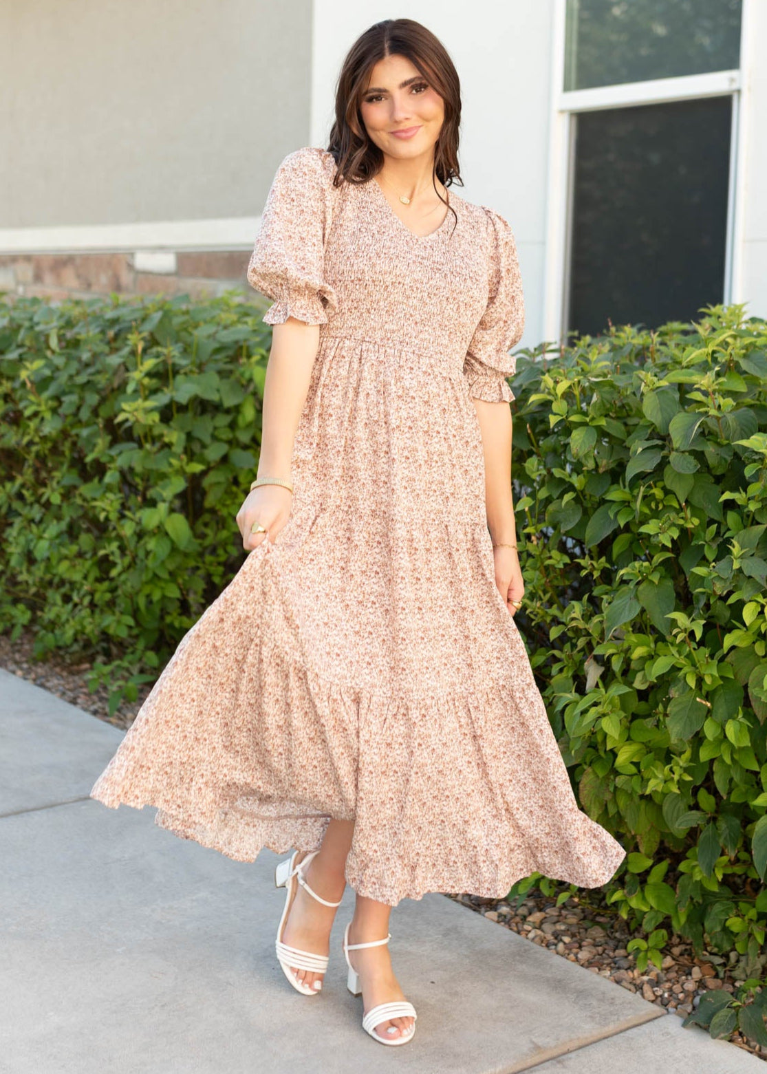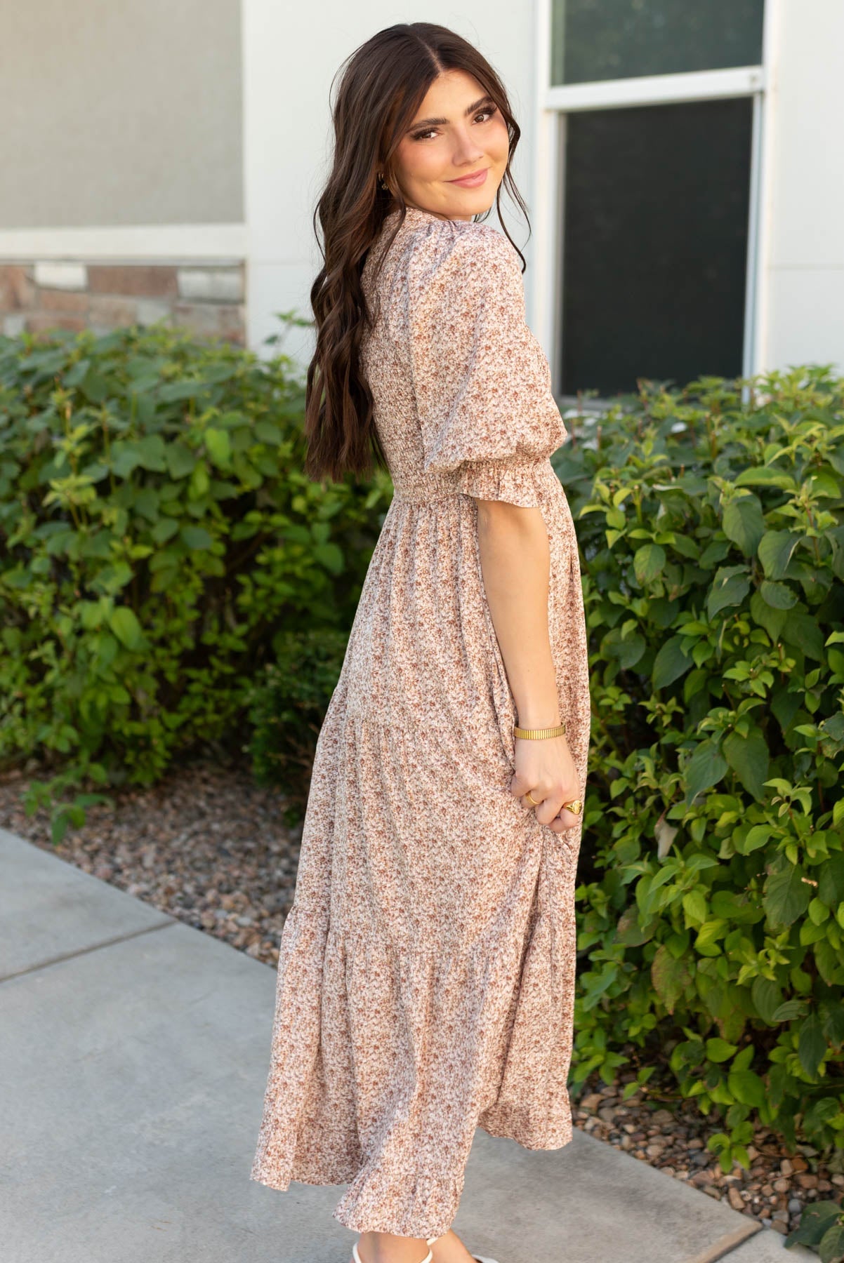 The Julia Dusty Mauve Floral Dress is all about effortless style and comfort! With a stretchy smocked bodice, elastic sleeves, and a lined, flowy tiered skirt, it¡¯s designed for ease and coverage. The gentle V-neckline and stunning mauve floral print make it a pretty, feminine favorite you¡¯ll reach for again and again.