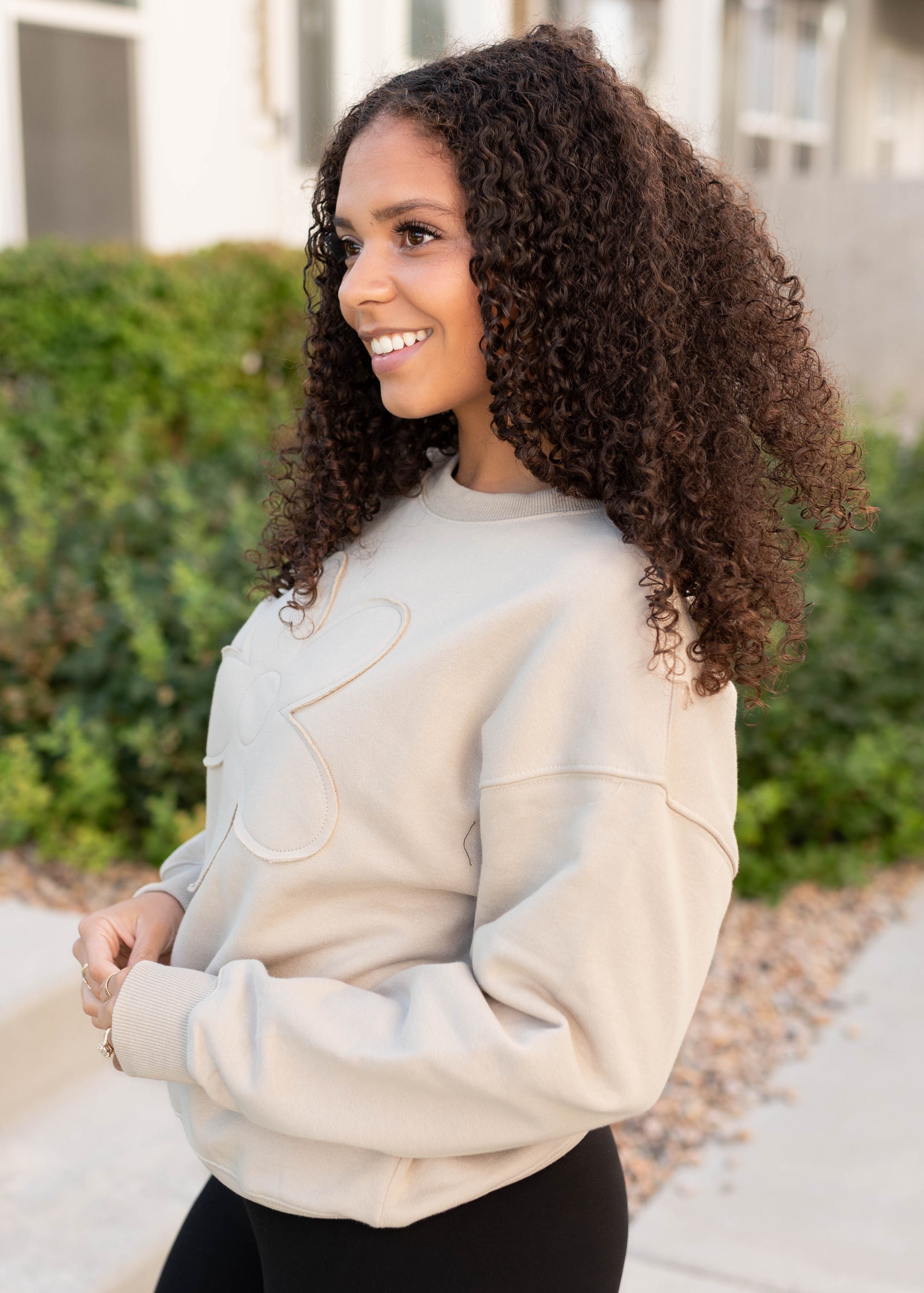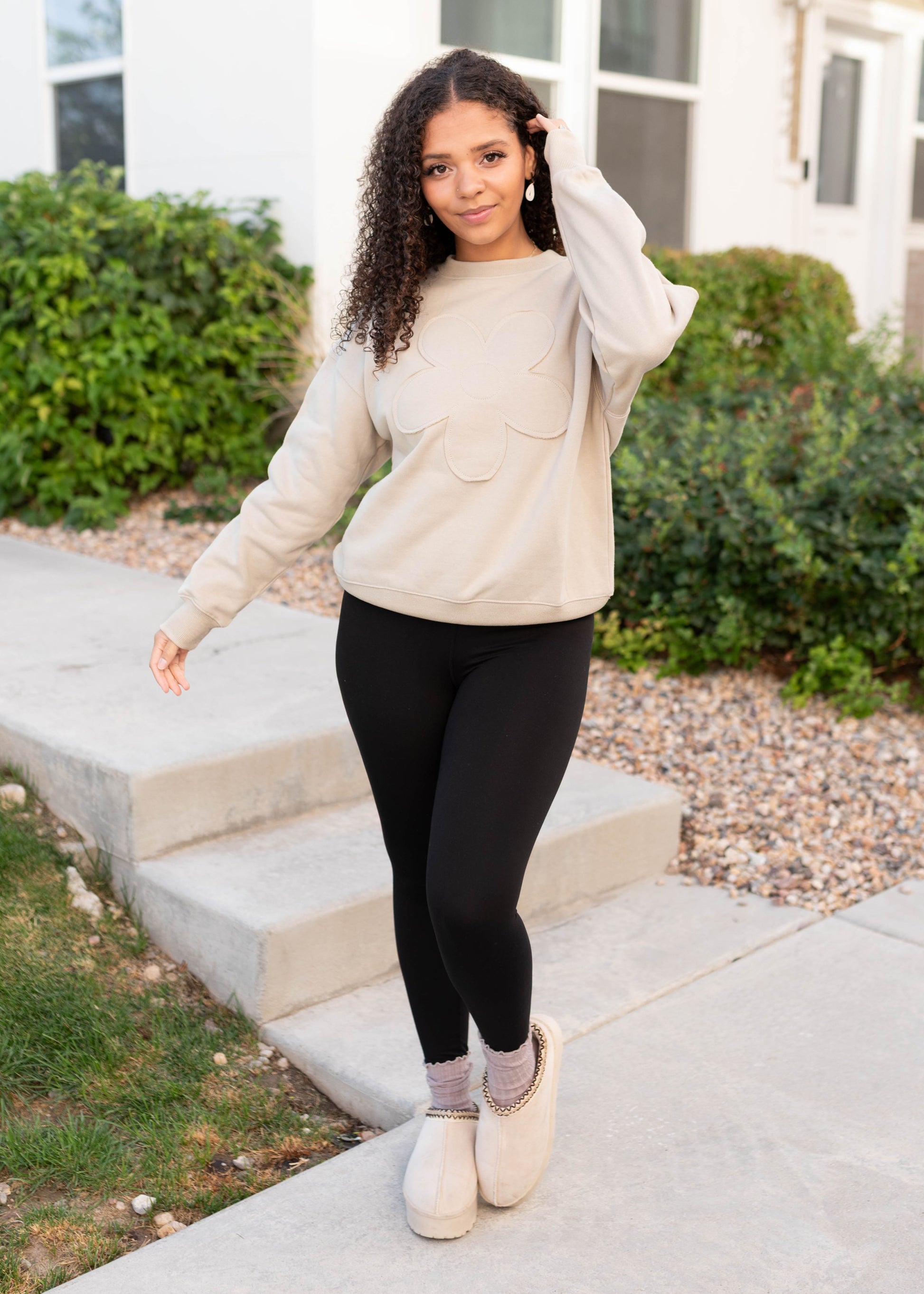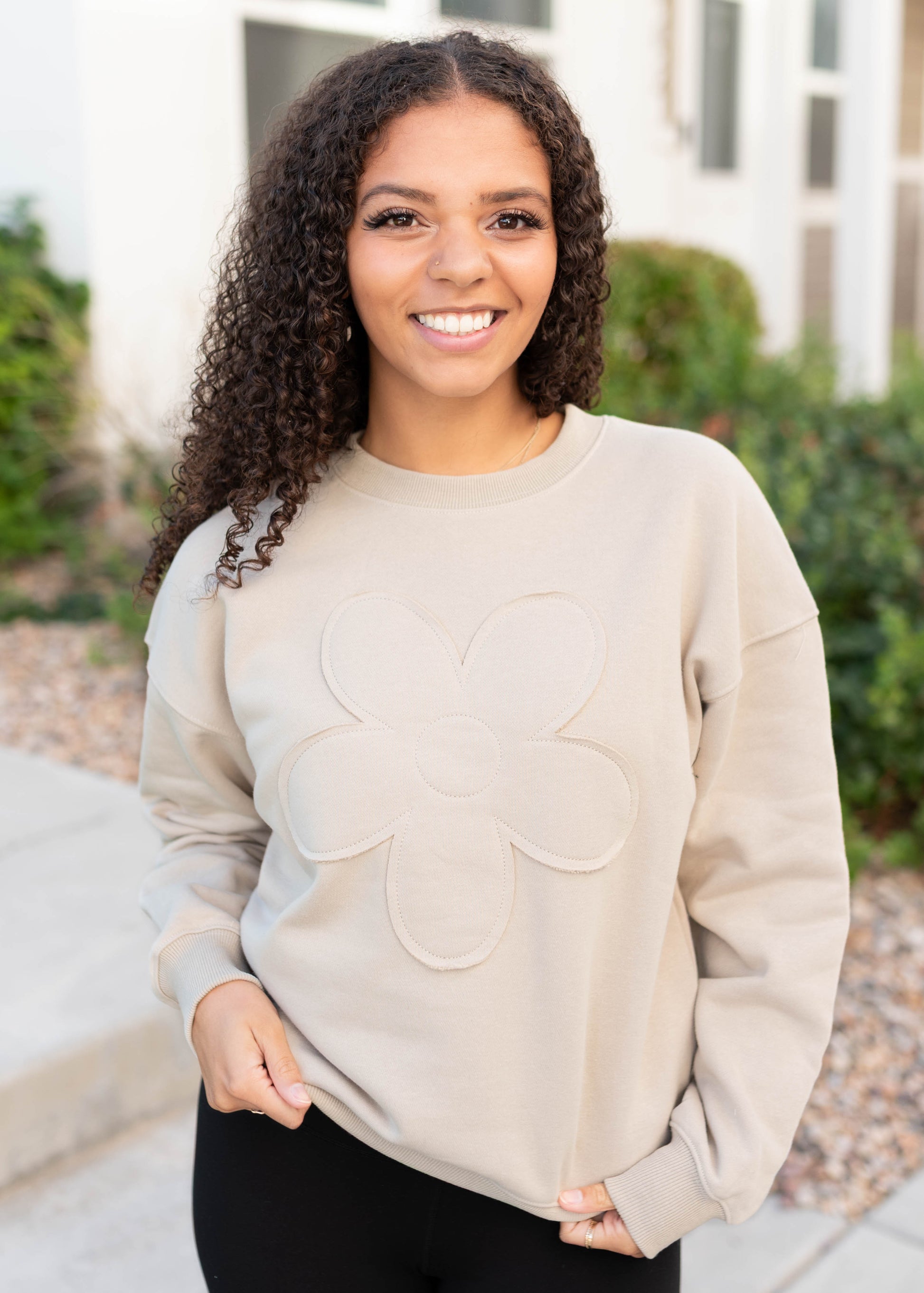 The Juliette Pullover is your new go-to for effortless comfort with a sweet touch. Made from buttery soft fabric, it has a cozy relaxed fit you¡¯ll want to live in. The sewn-on flower detail adds the cutest pop of charm to the simple taupe backdrop, making it just as stylish as it is comfy.