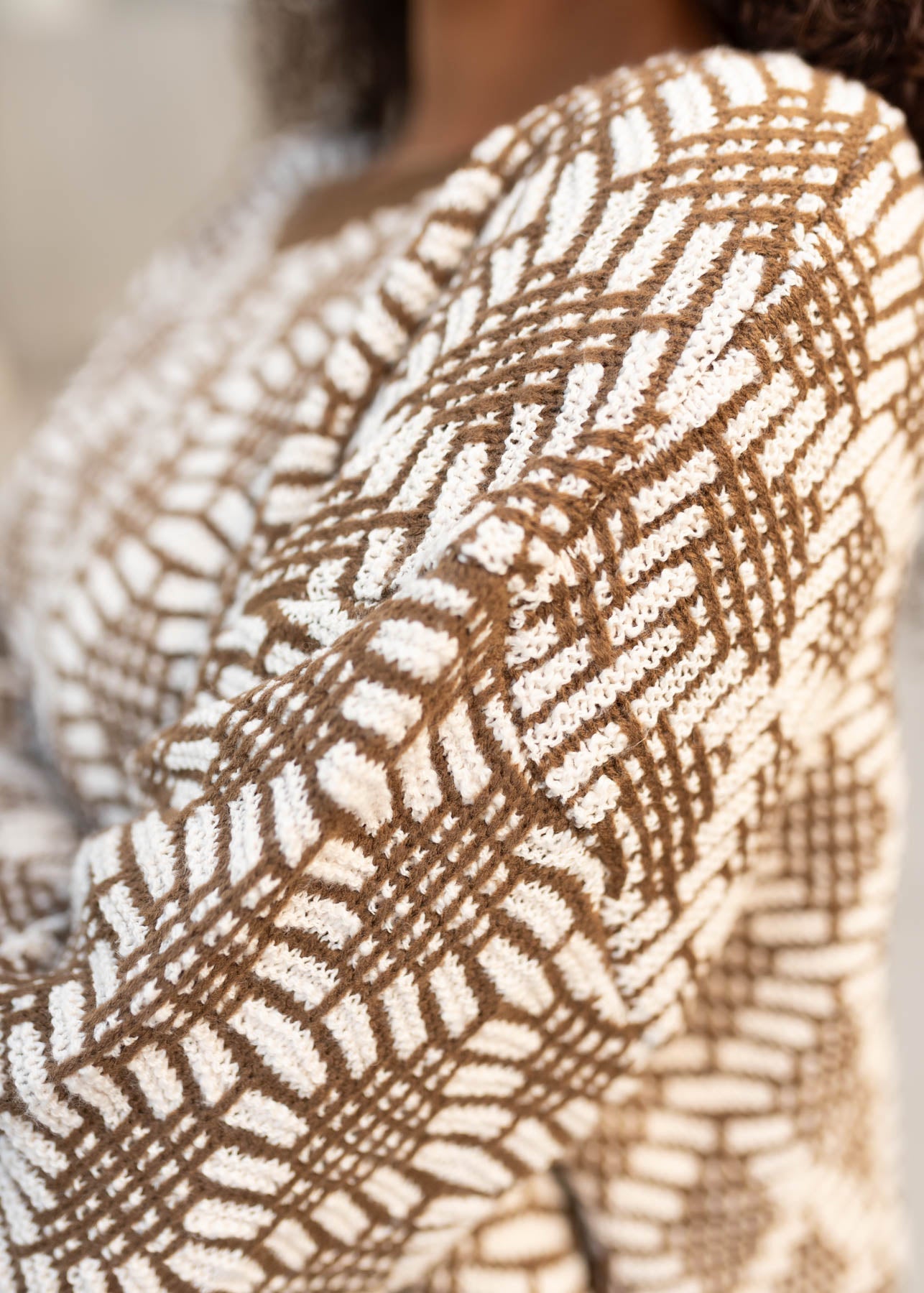 Brown and white patterned knit