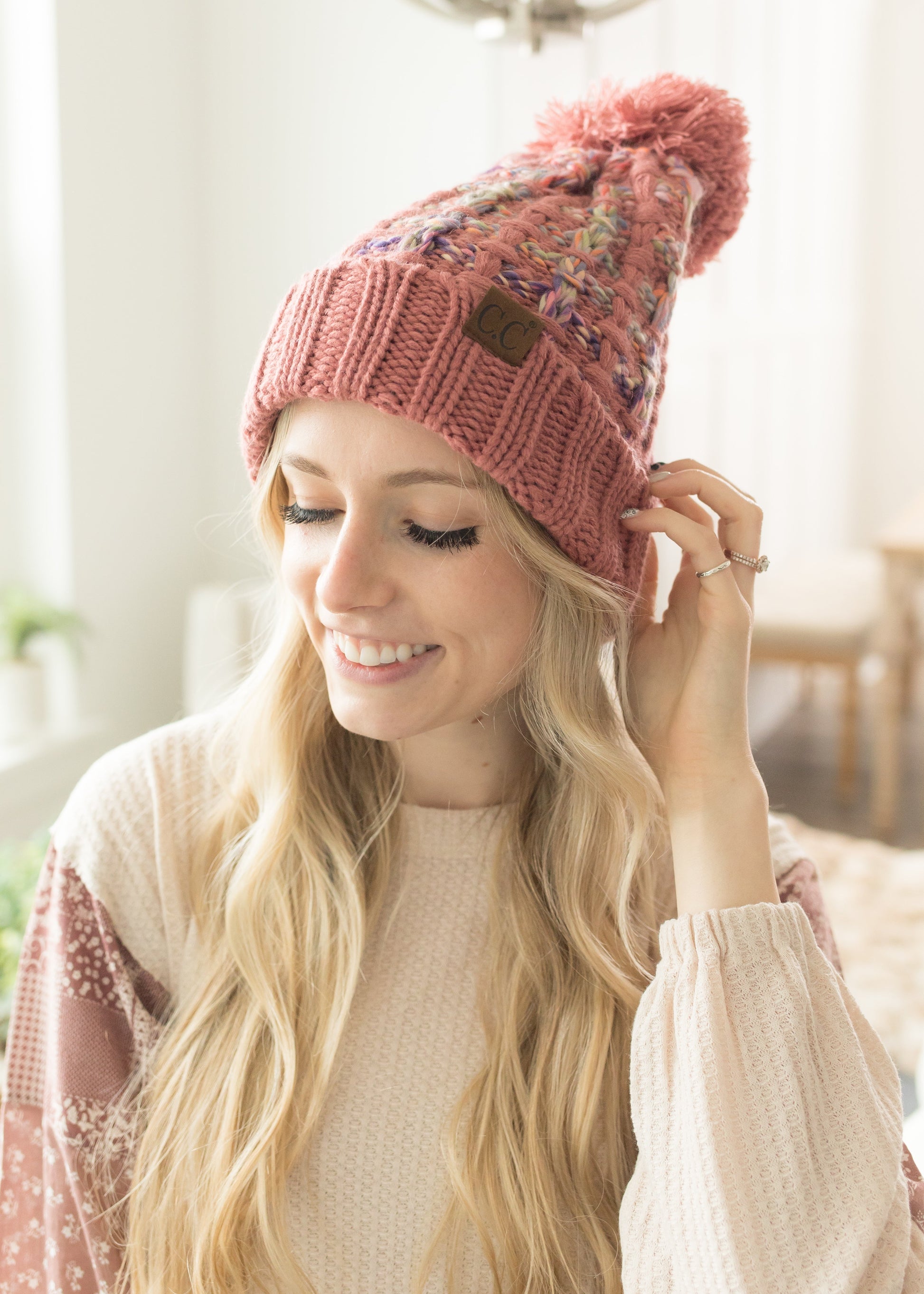 Kelly Mauve Ombre Knit C.C Pom Pom Beanie