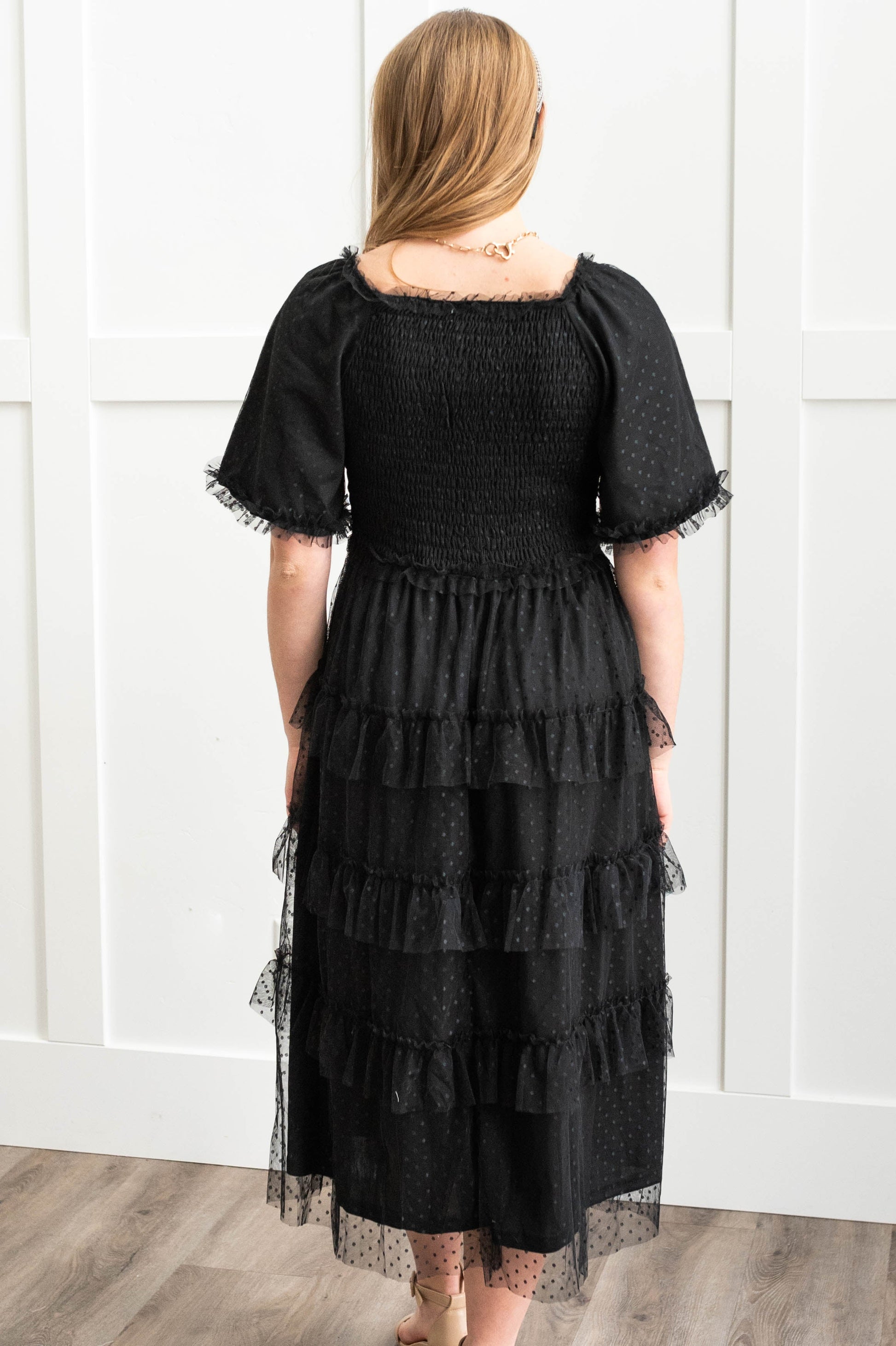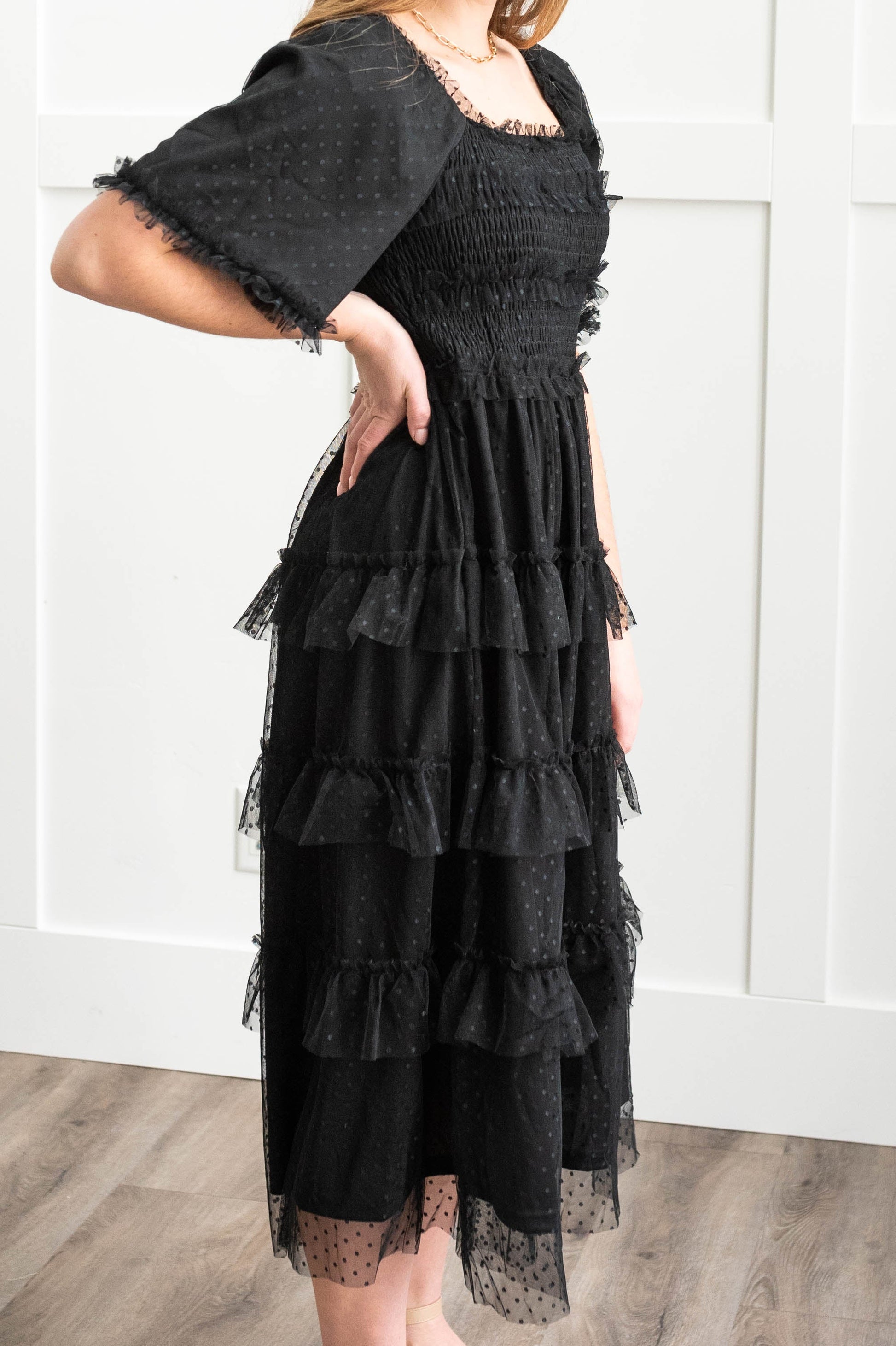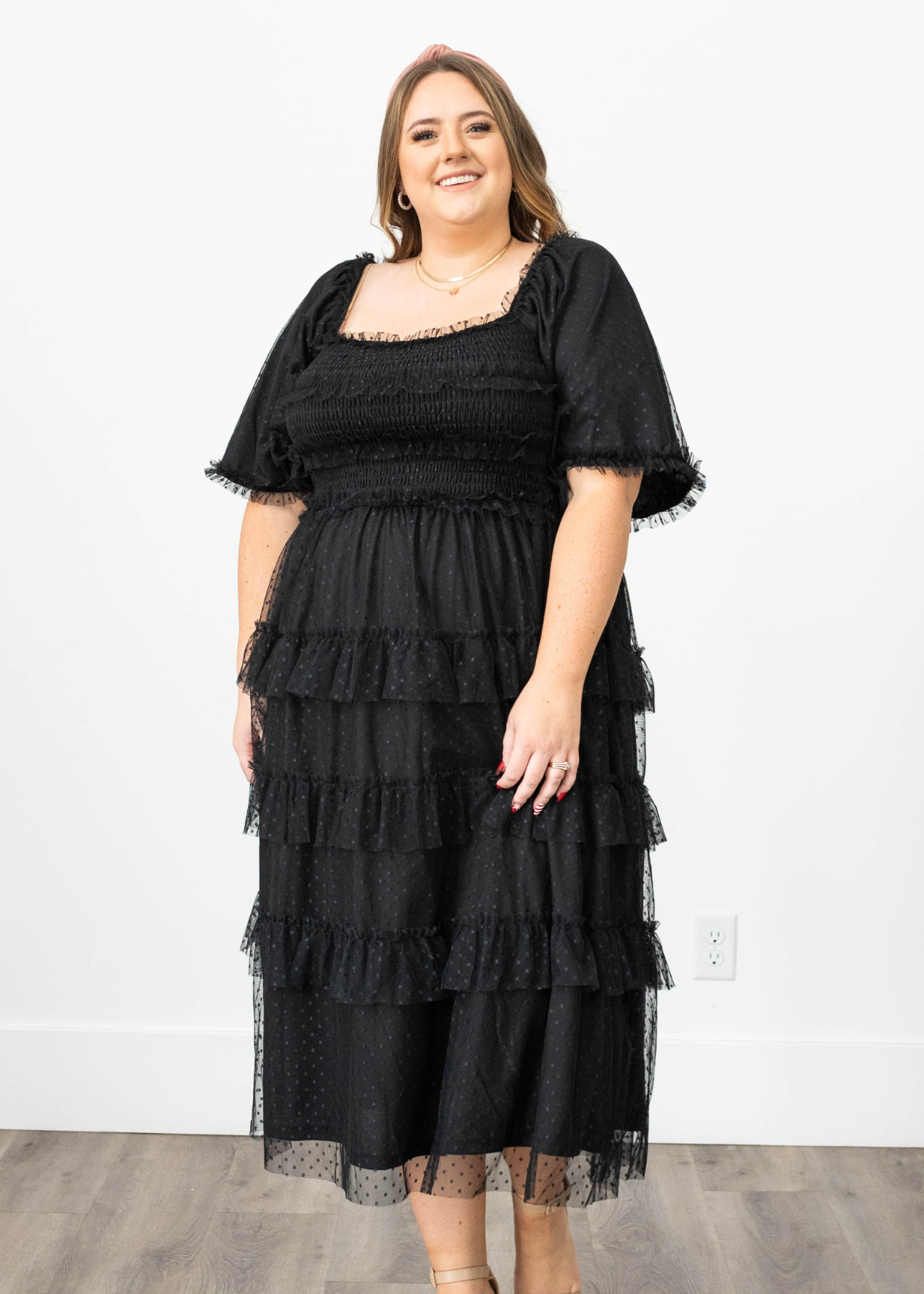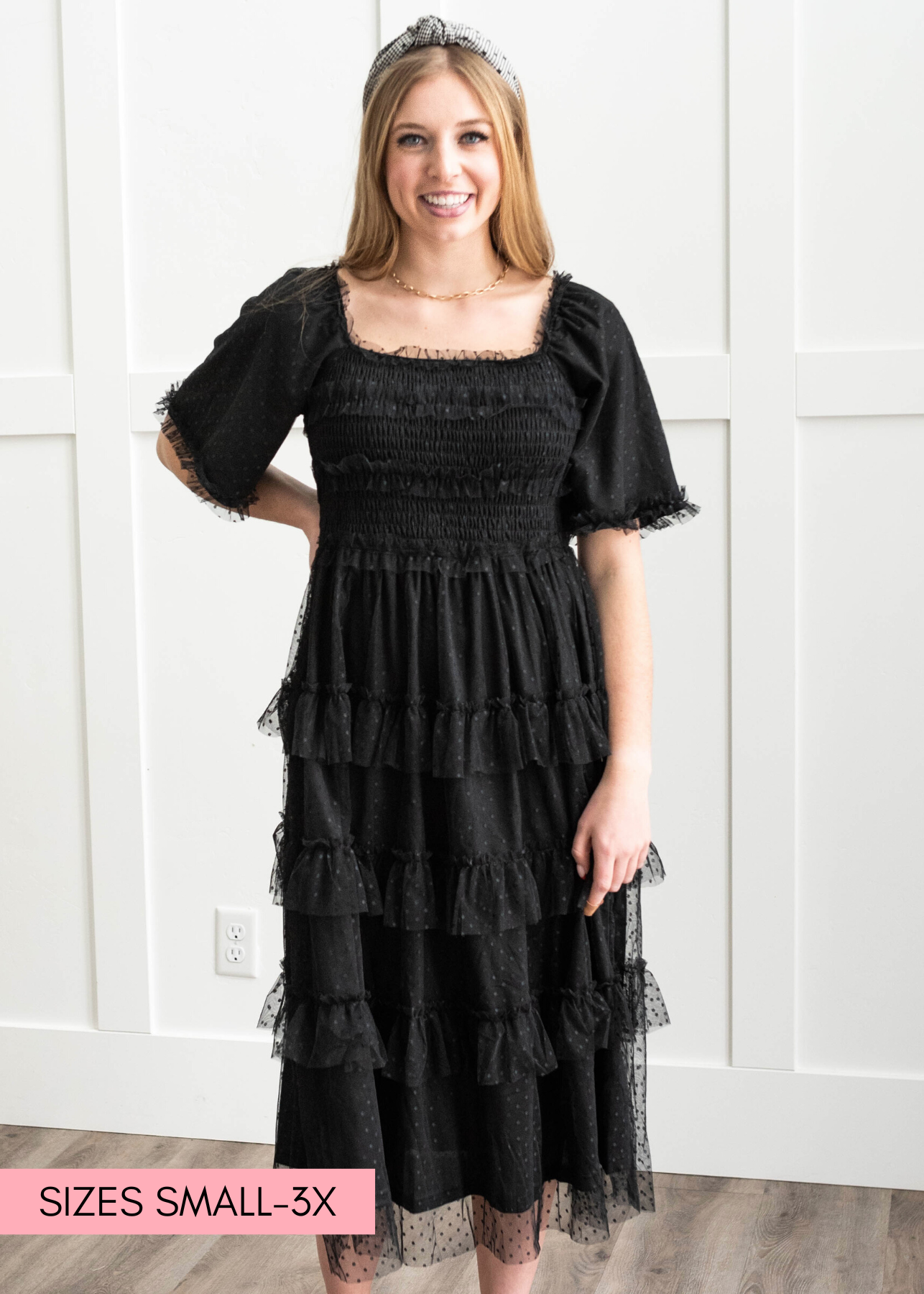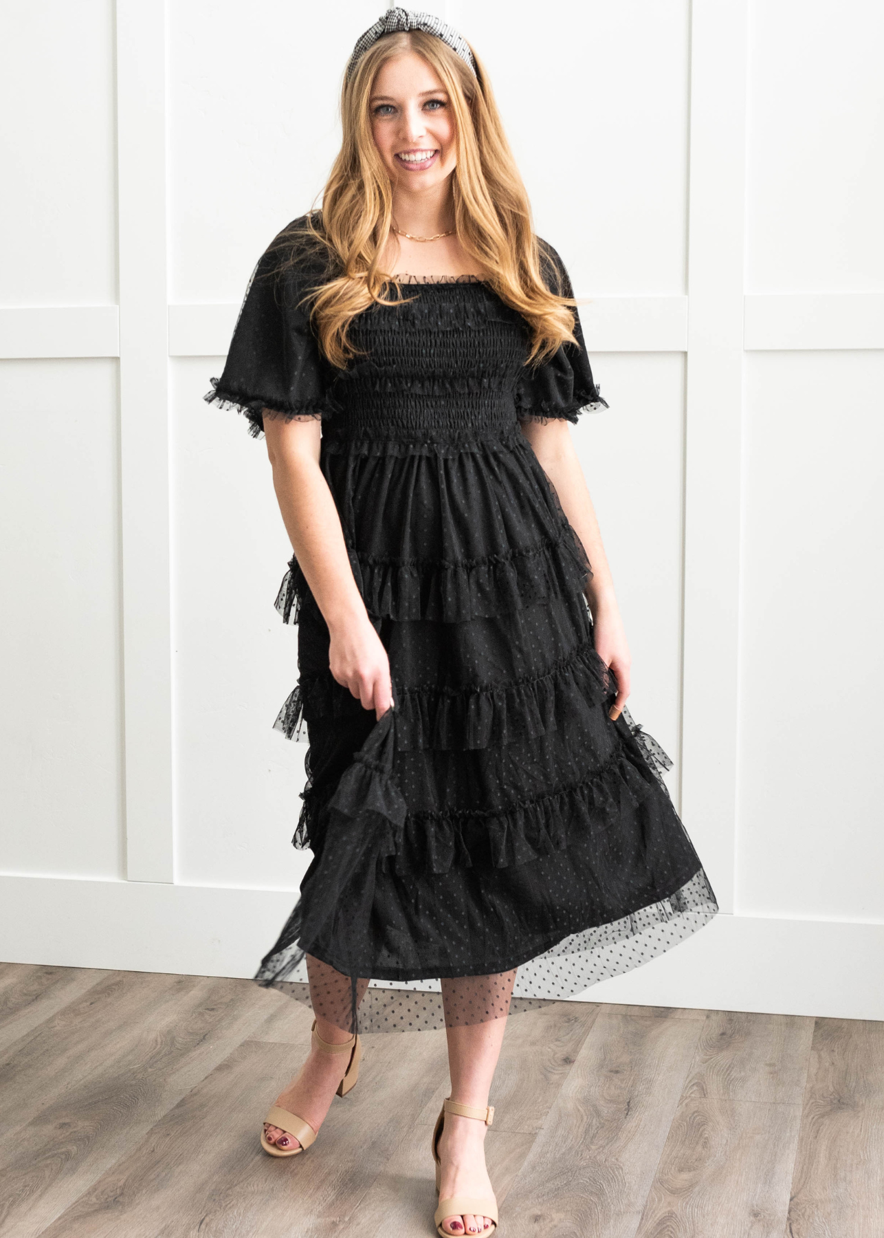 - Such a unique dress! Can't get enough of the?staple?black and tiered fit