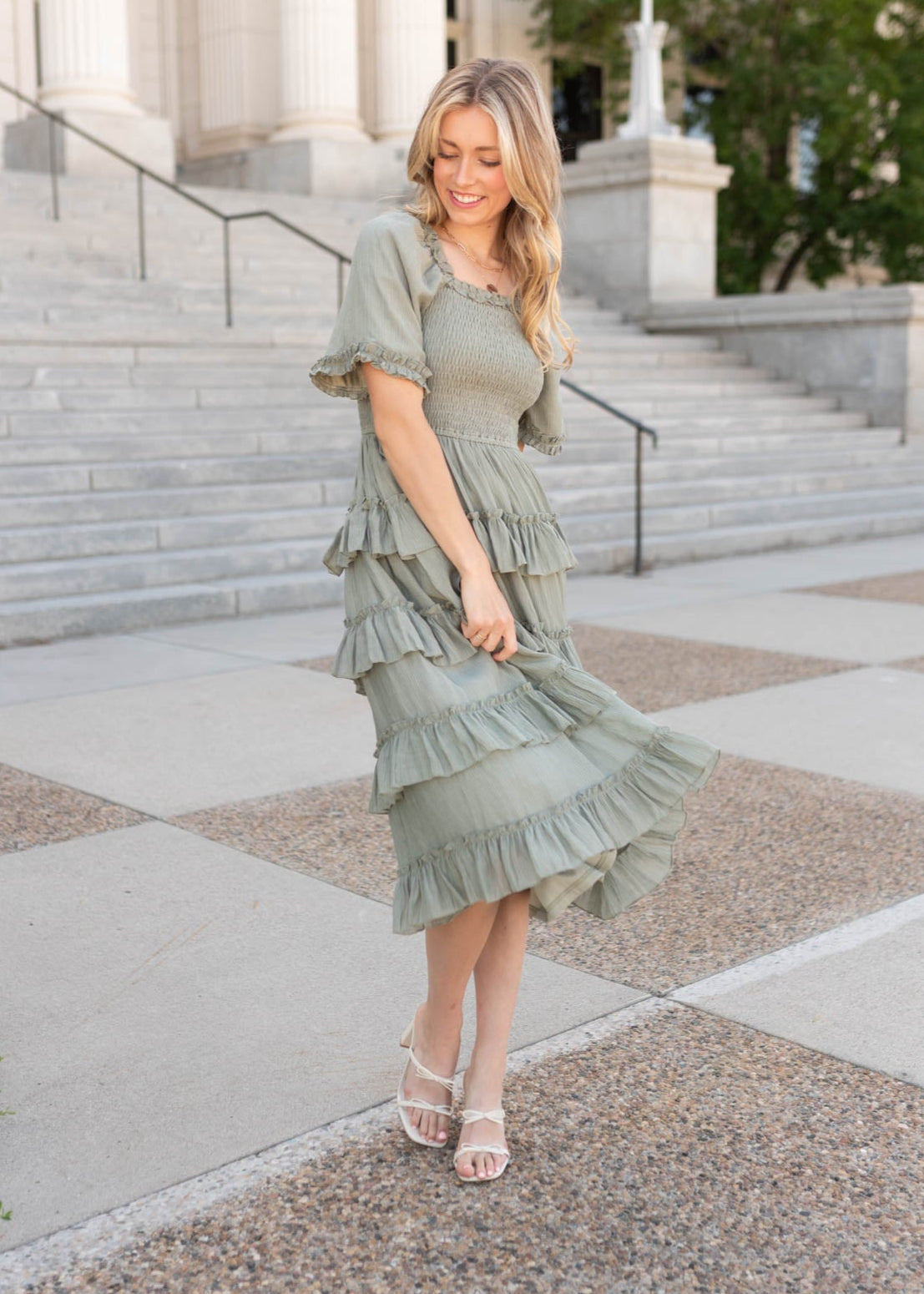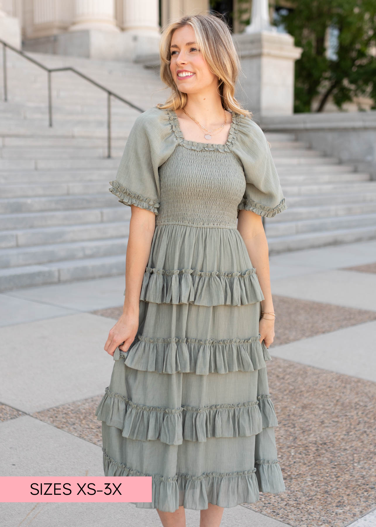 - Beautiful tiered skirt with cascading ruffles for an ultra-flattering fit