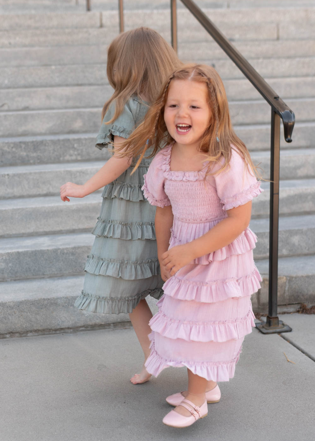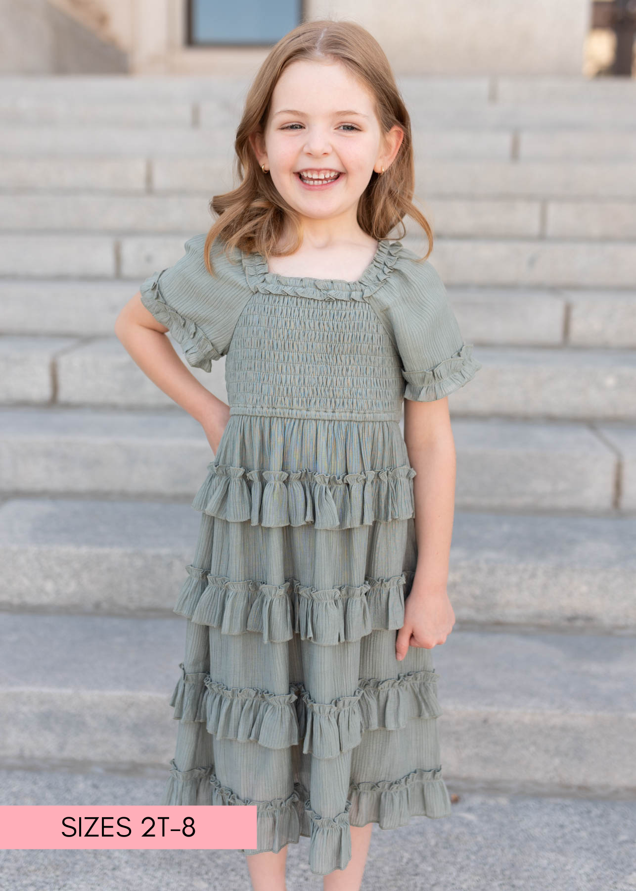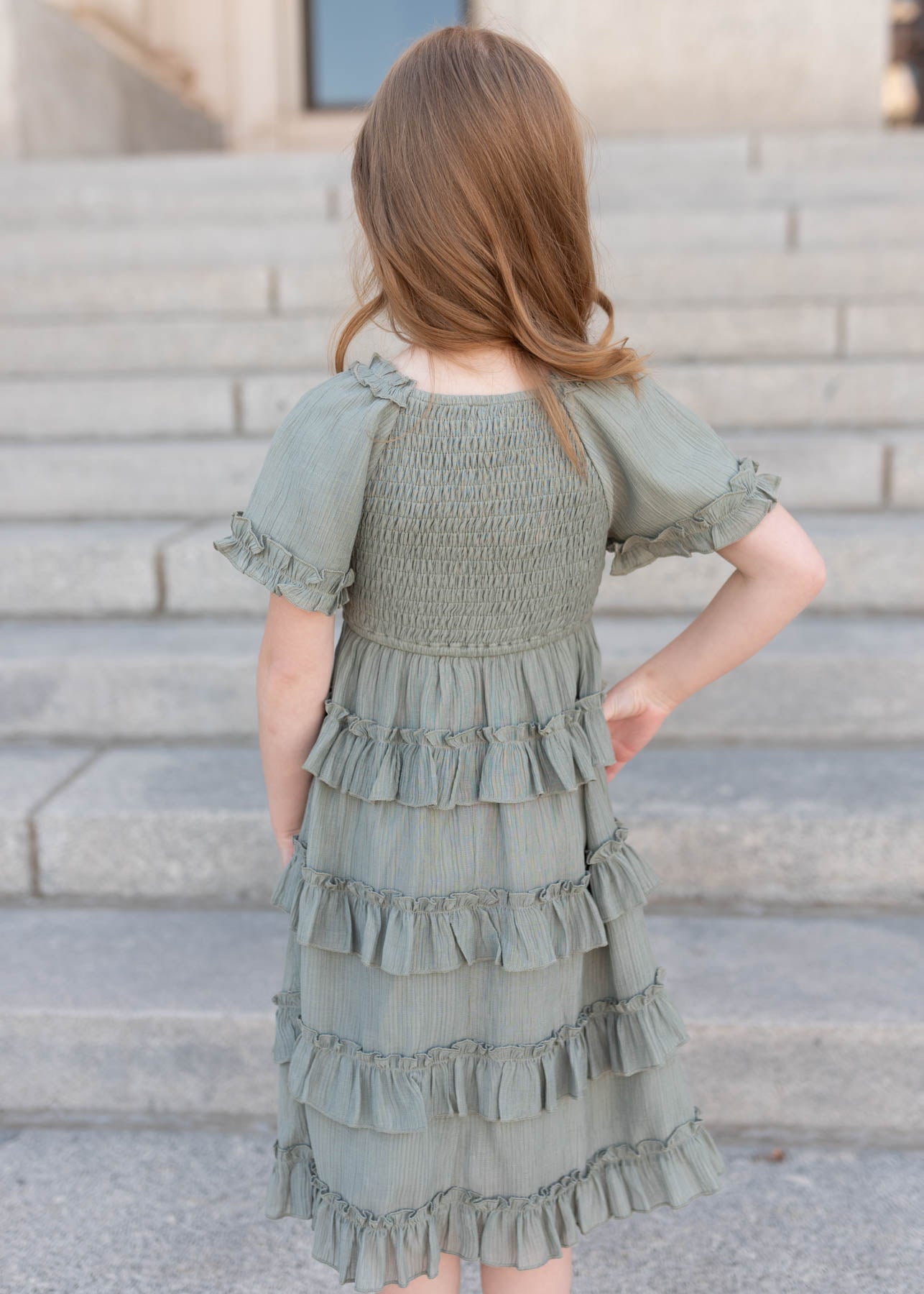 Korin Sage Ruffle Tiered Little Girl Dress