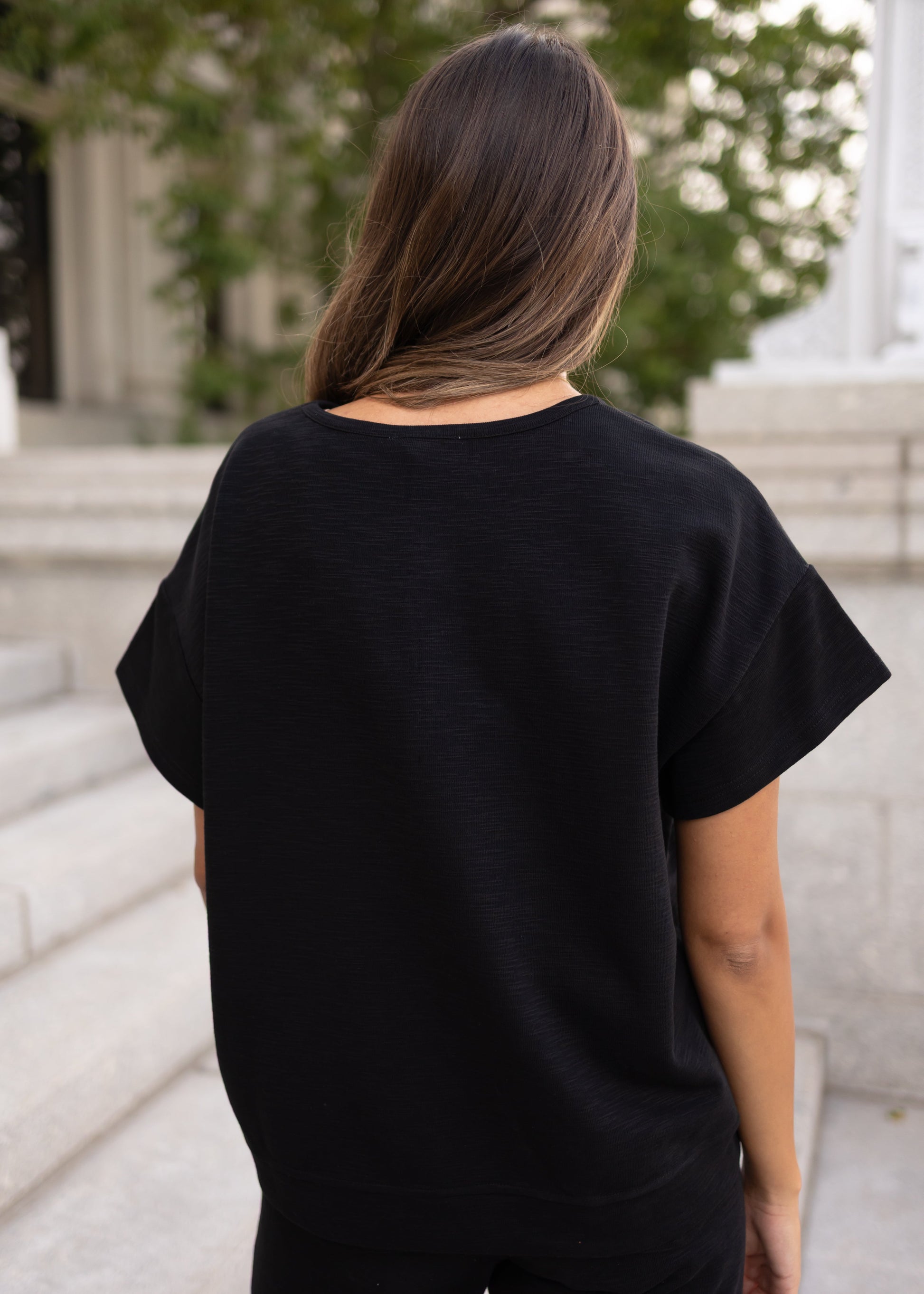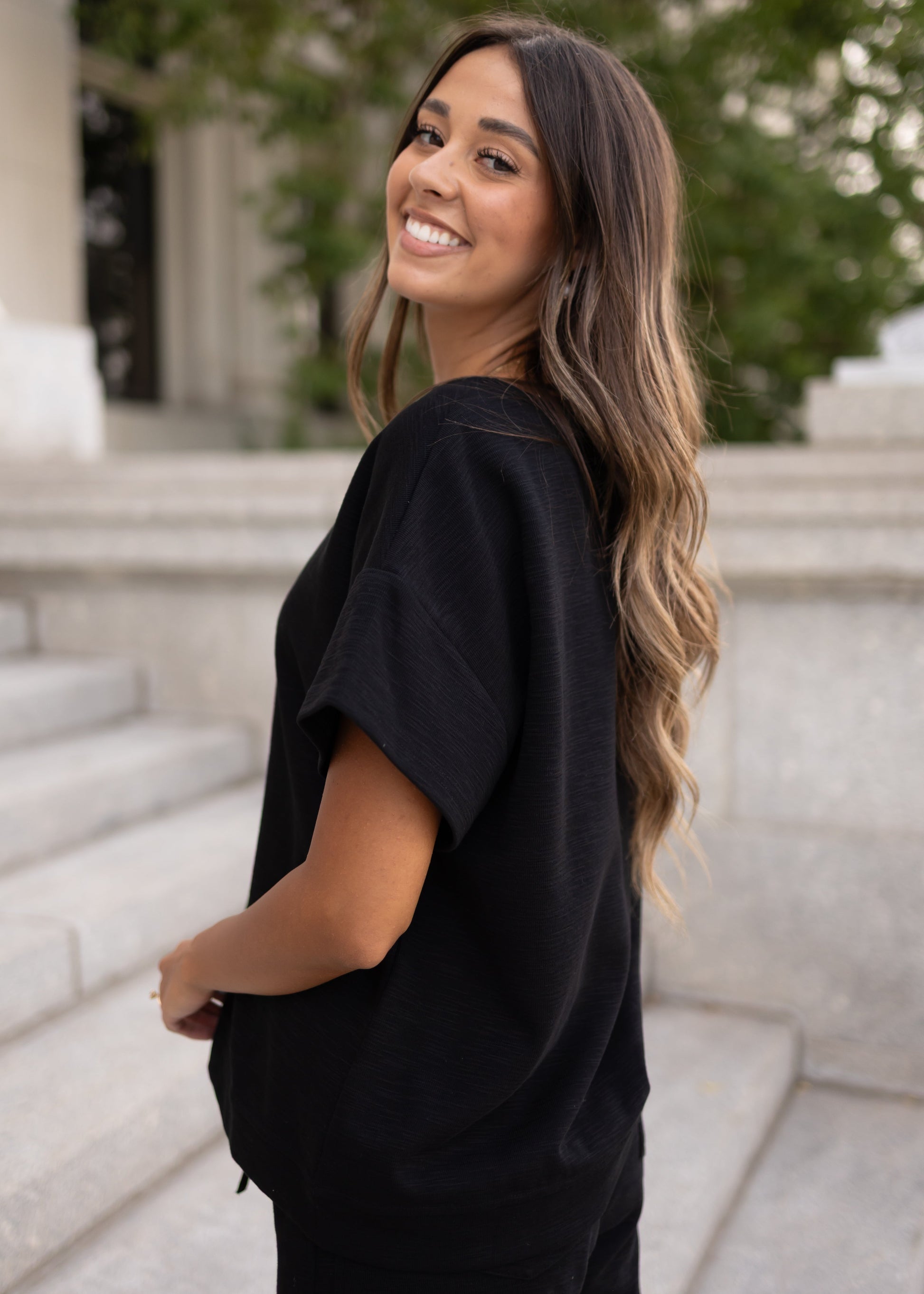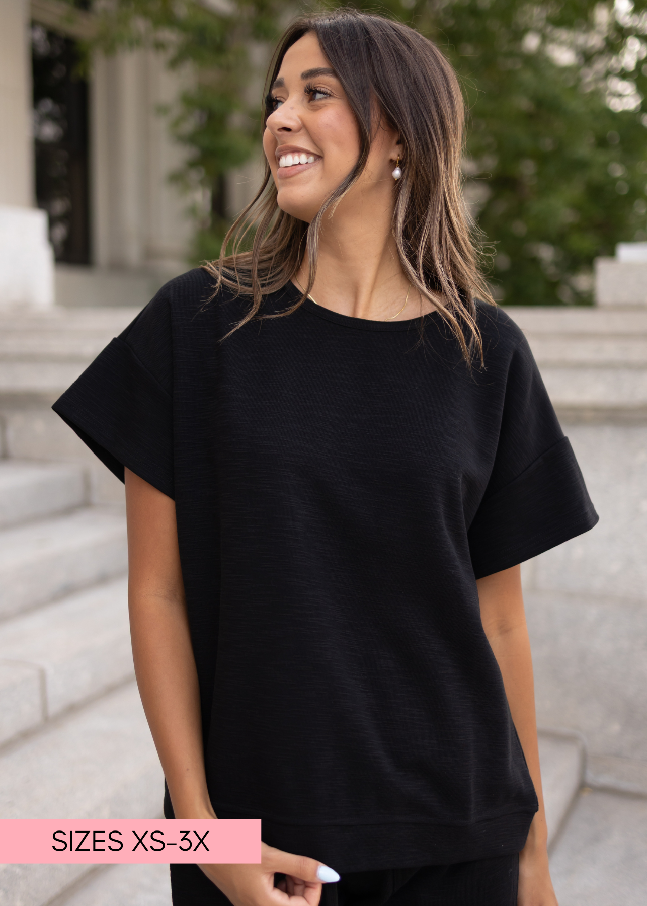 The Lillian Black Knit Top is your go-to for effortless layering and comfy-chic days. With its soft knit texture, flattering scoop neckline, and relaxed fit, it¡¯s easy to throw on and feel instantly put together. The deep black color keeps it classic, and it pairs perfectly with the matching Lillian Knit Bottoms for a cozy, coordinated look.