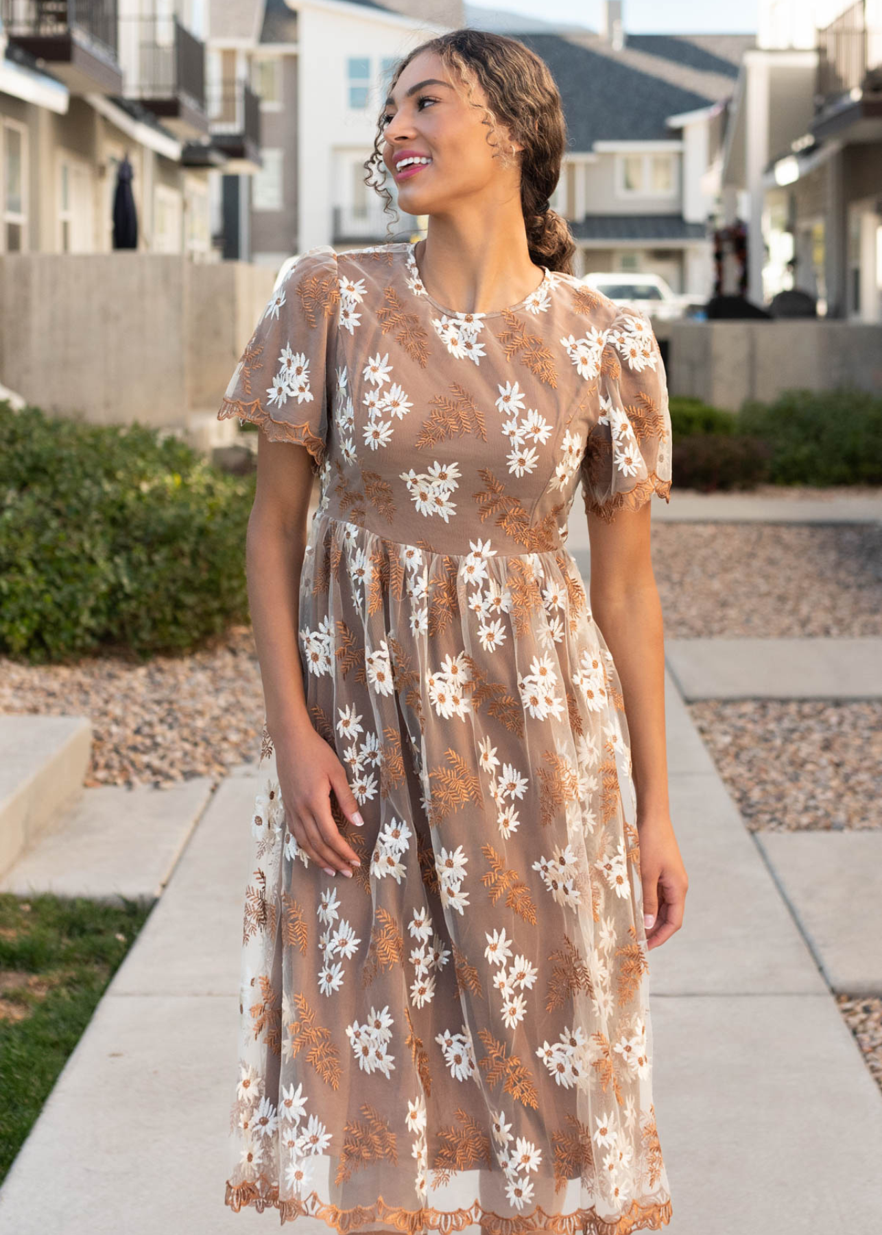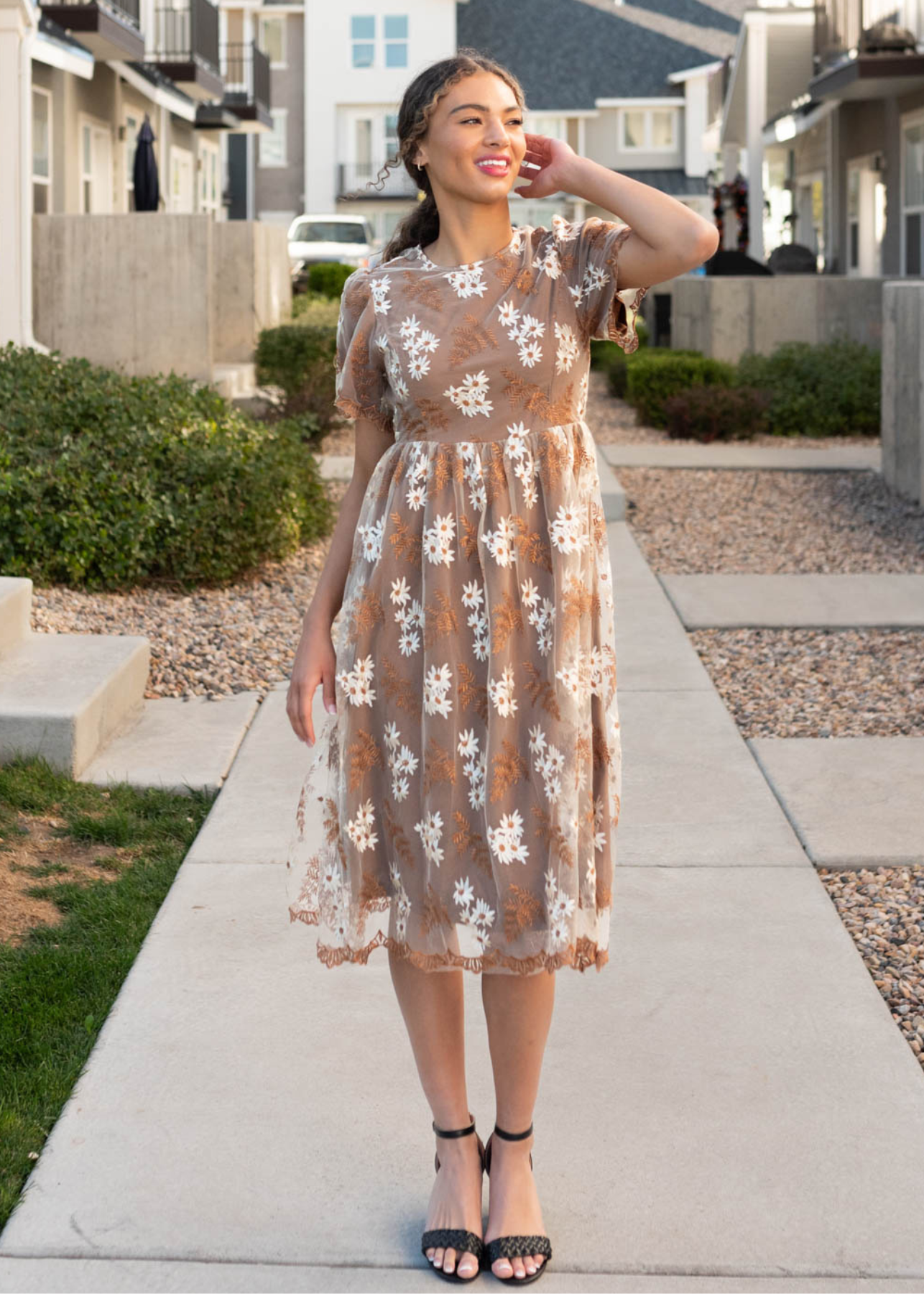 Lola Brown Embroidered Dress