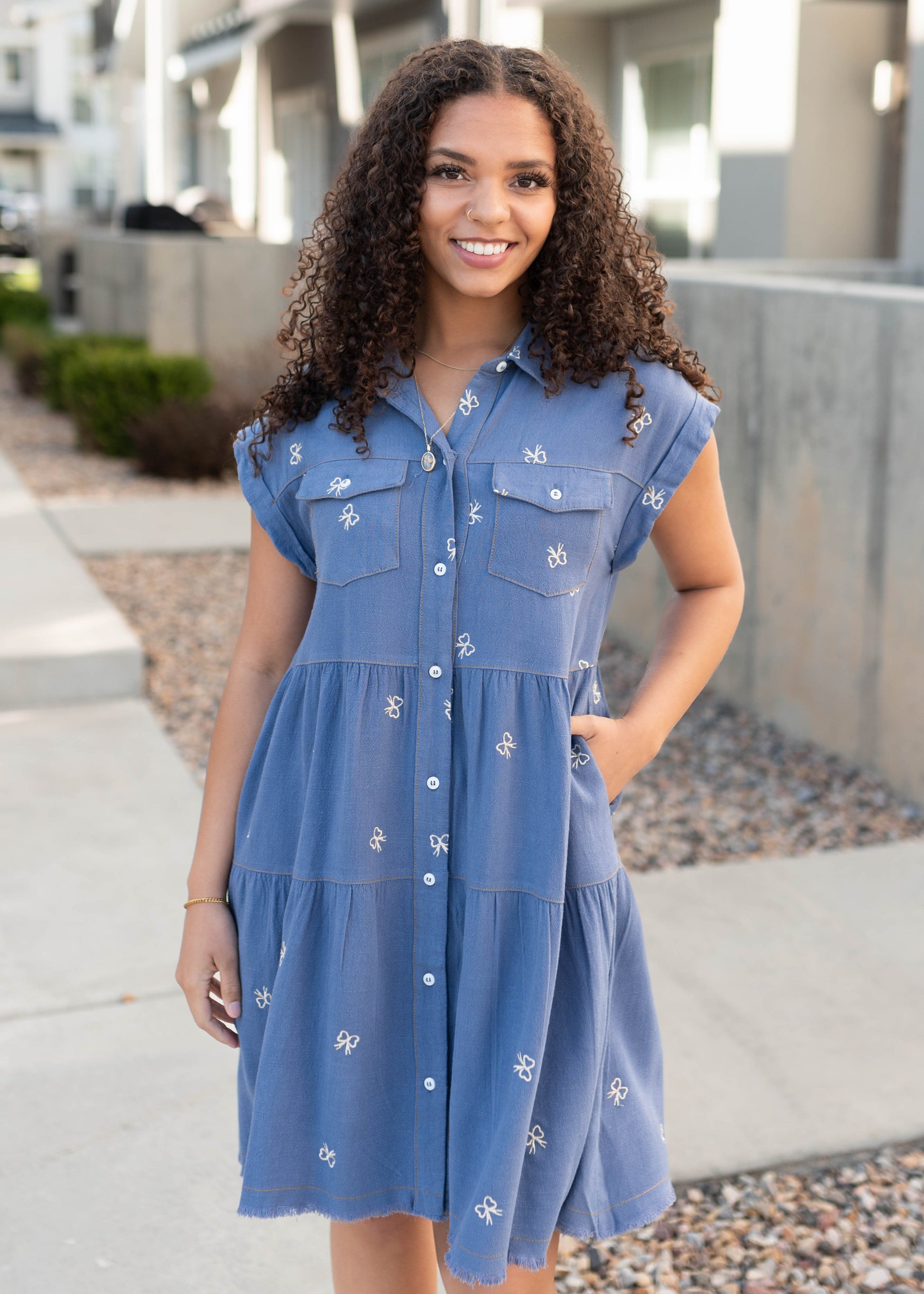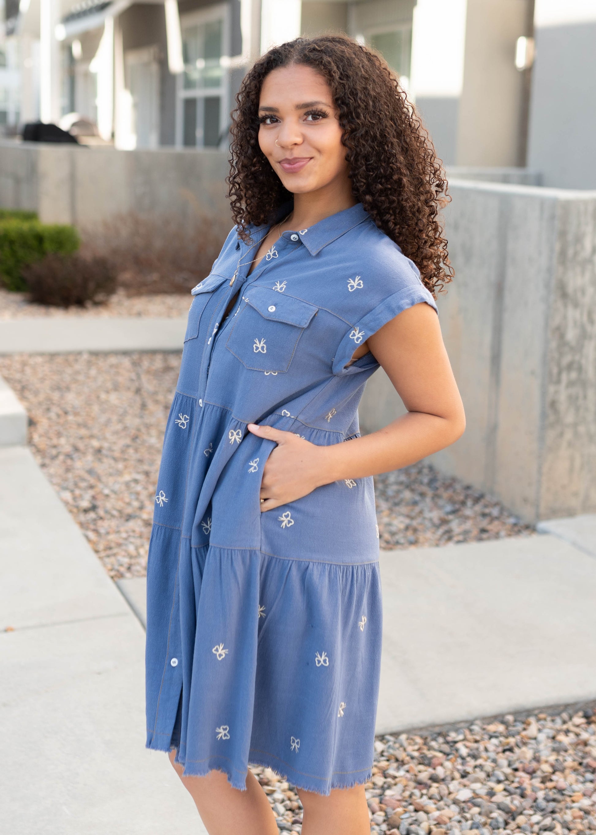 Lynn Denim Bow Embroidered Dress